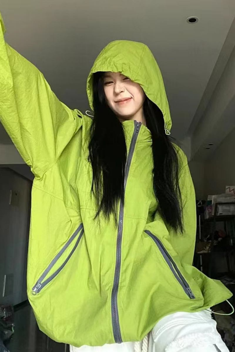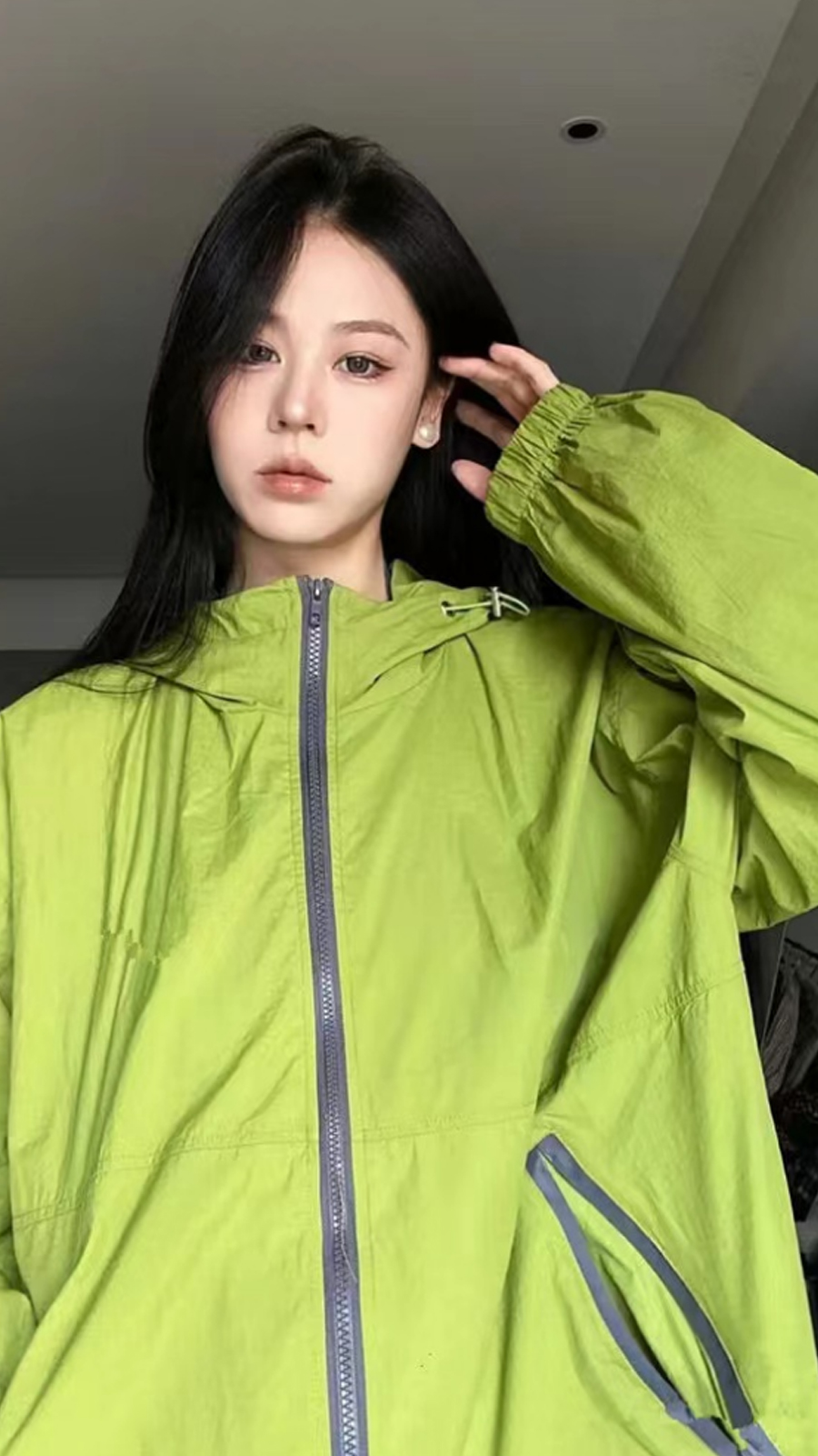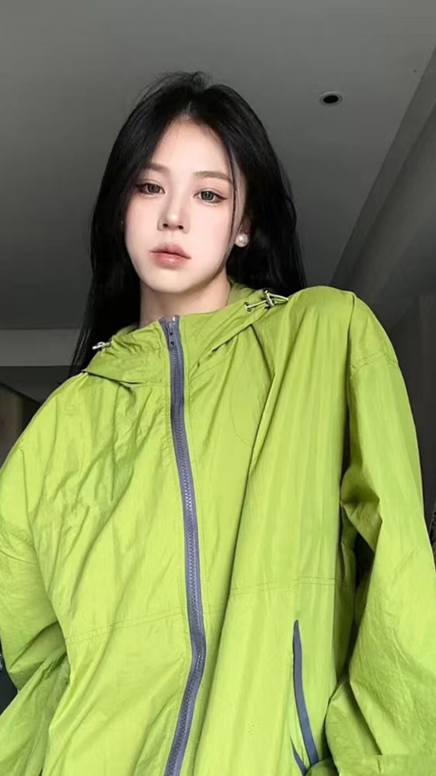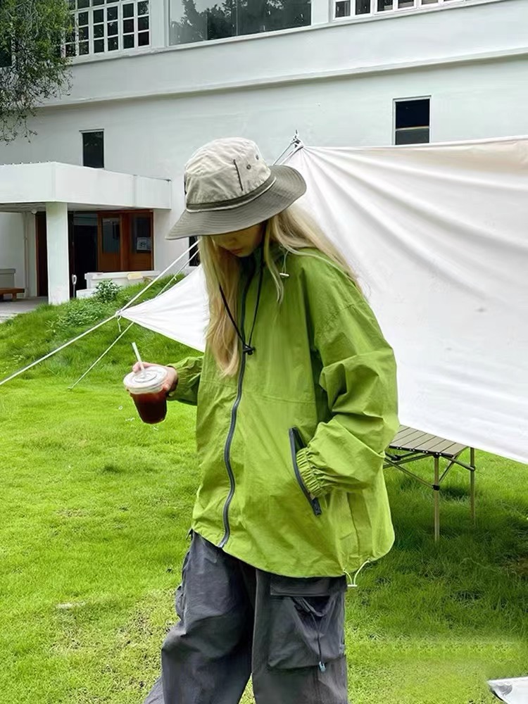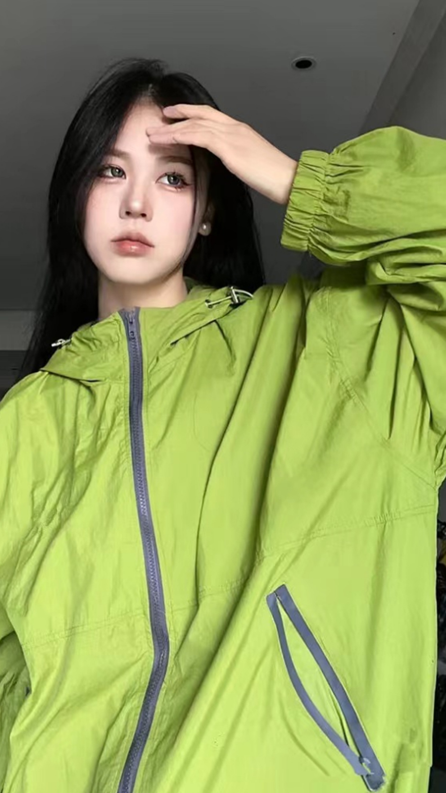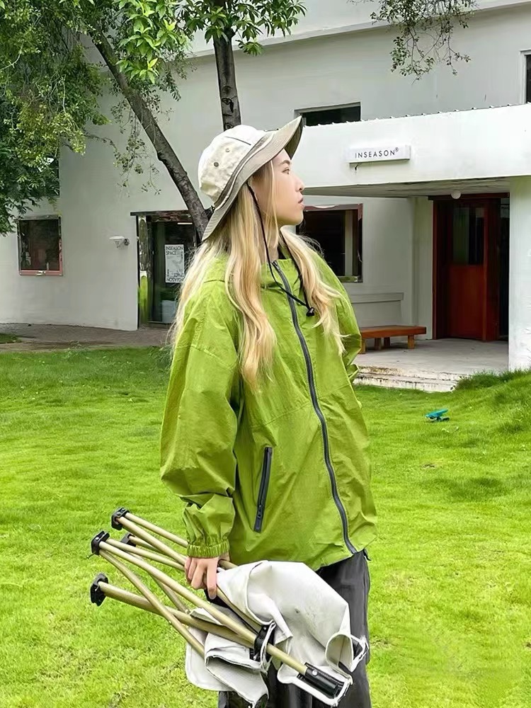 顏色分類 綠色【山系戶外衝鋒衣男女春夏新款美式復古夾克情侶寬鬆機能風防曬外套】,藍色【山系綠色高級感外套女美式戶外衝鋒衣夏薄款工裝防曬衣登山速乾風衣】