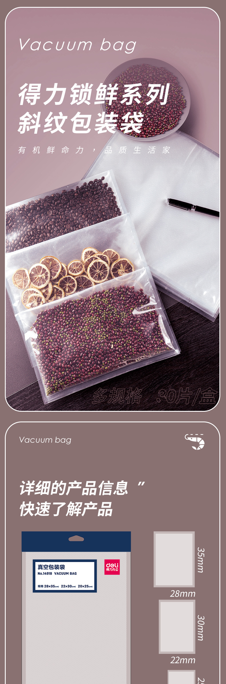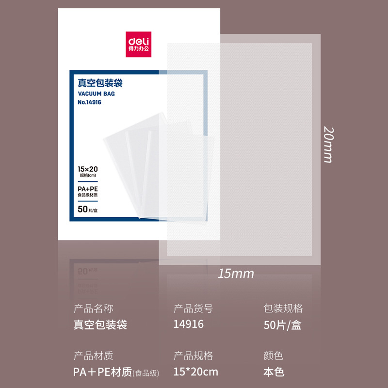 得力纹路真空袋加厚压缩密封单面纹路保鲜袋封口家用塑封袋食品袋