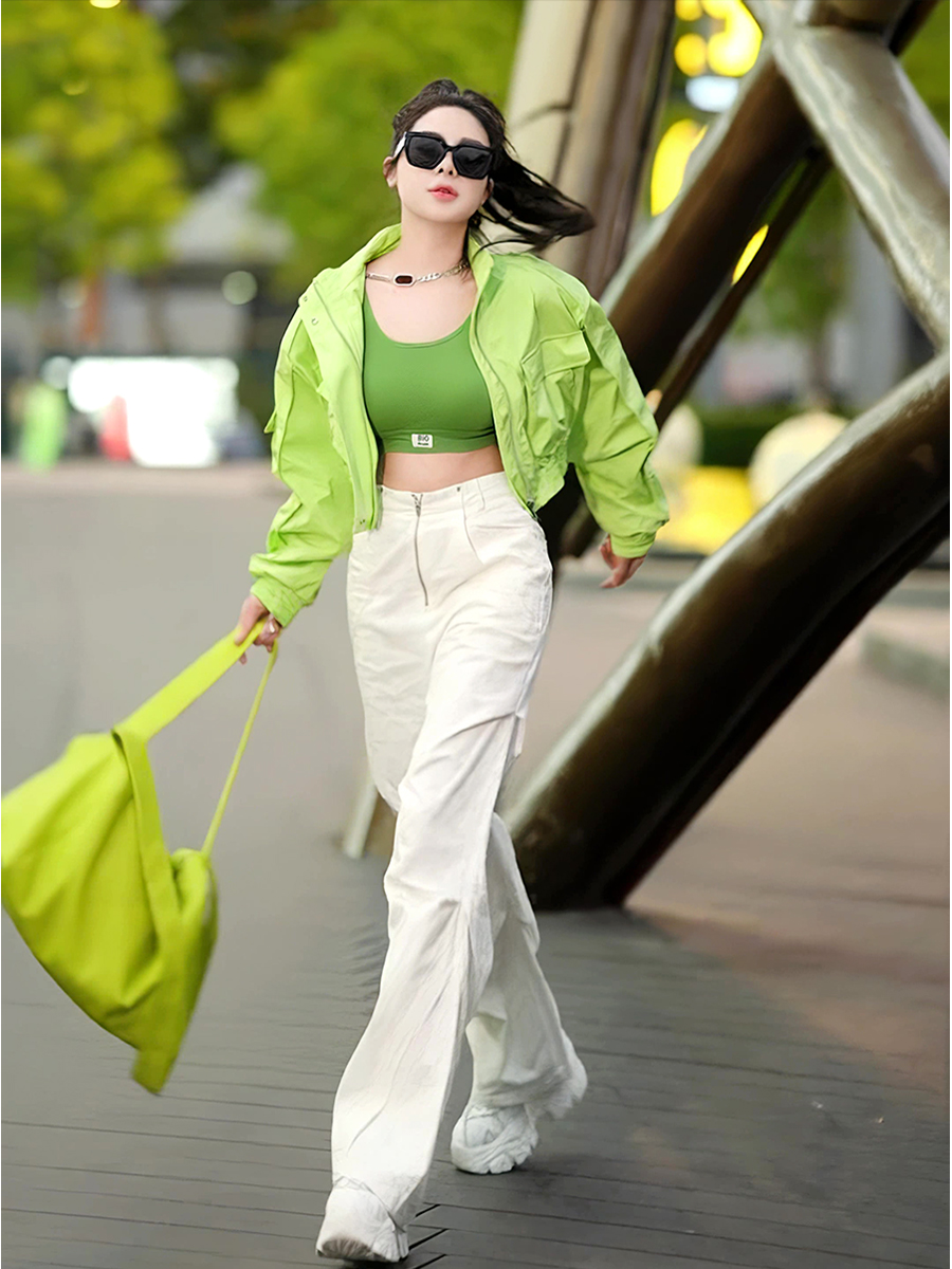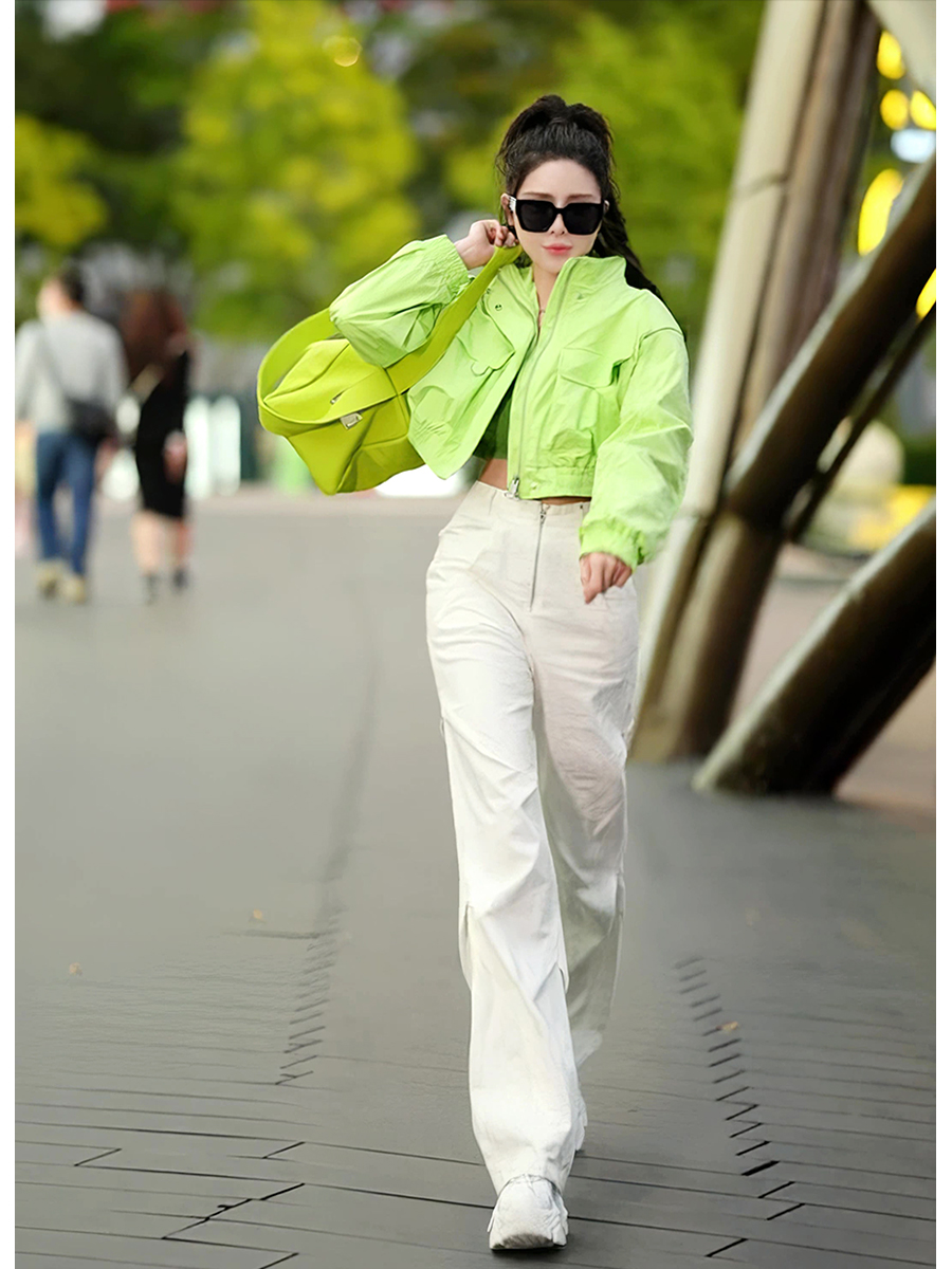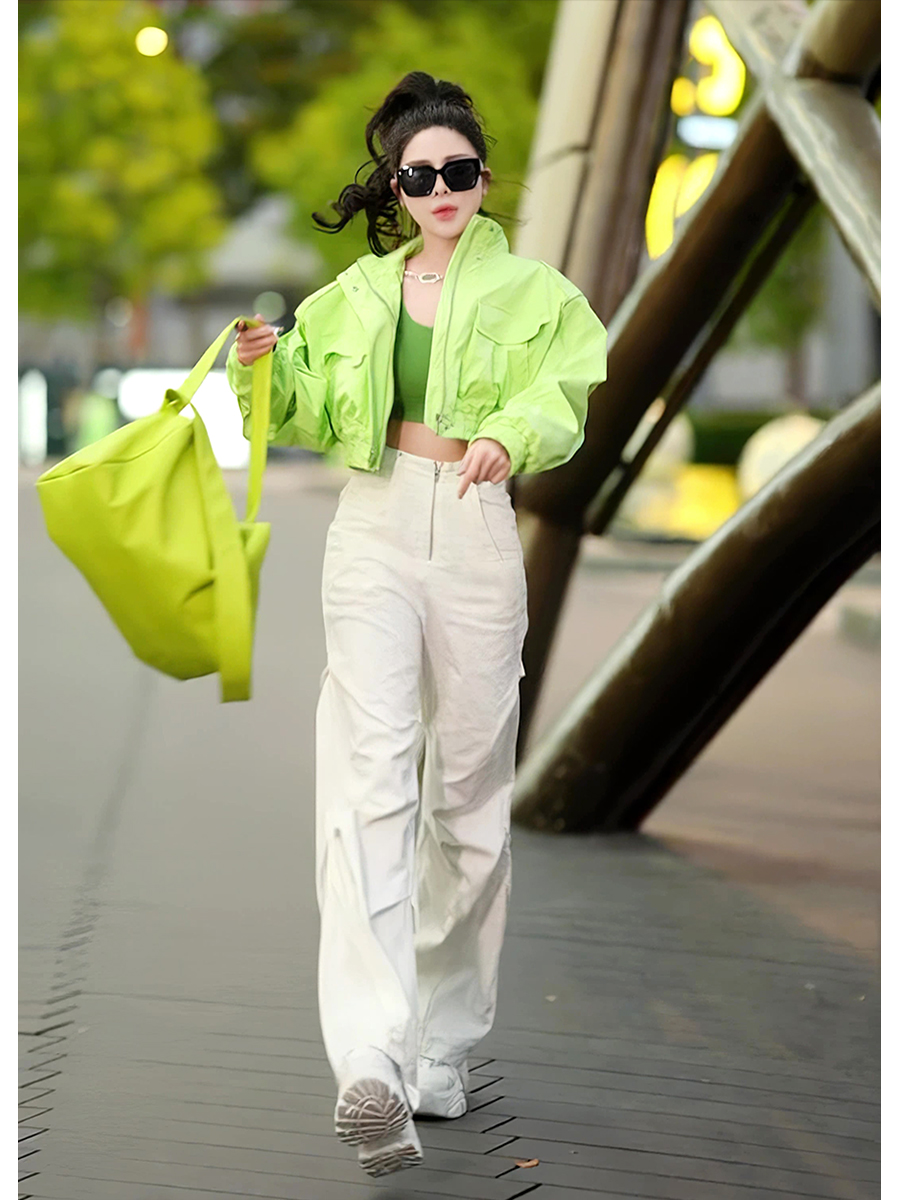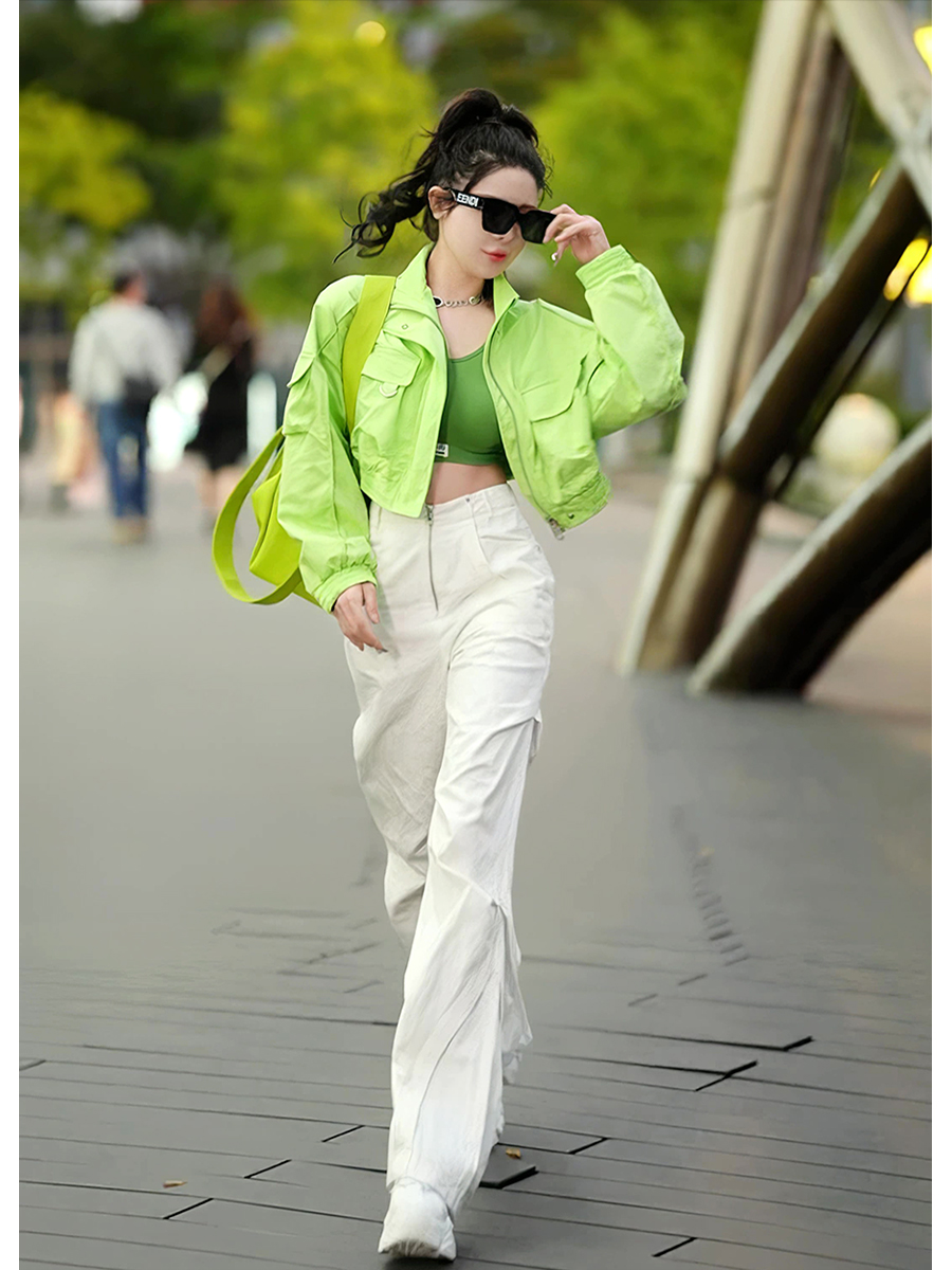 顏色分類 綠色外套,白色牛仔褲,收藏加購優先發出