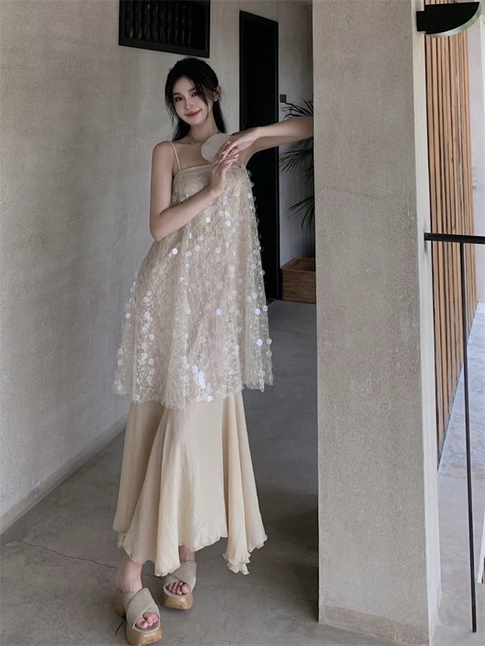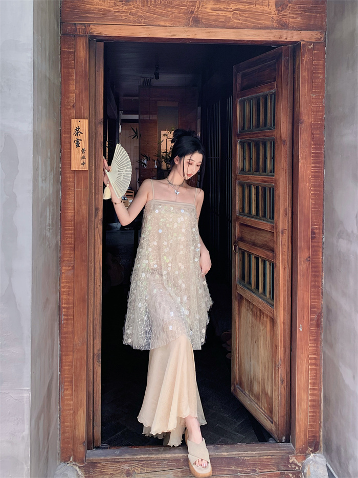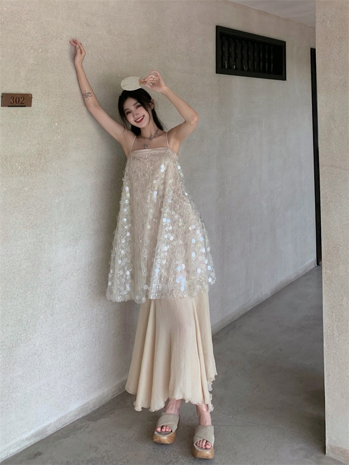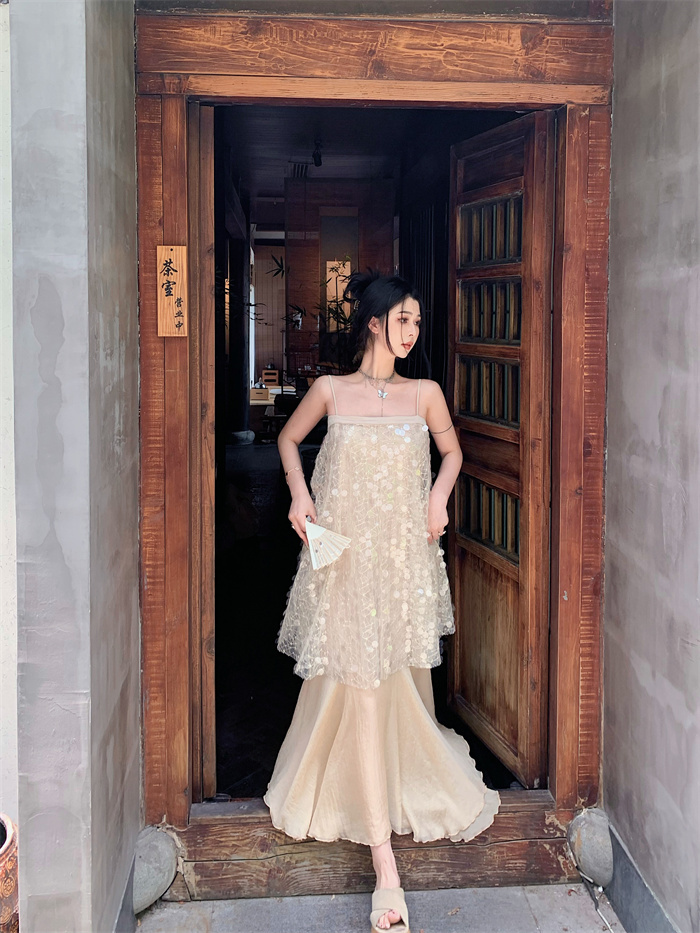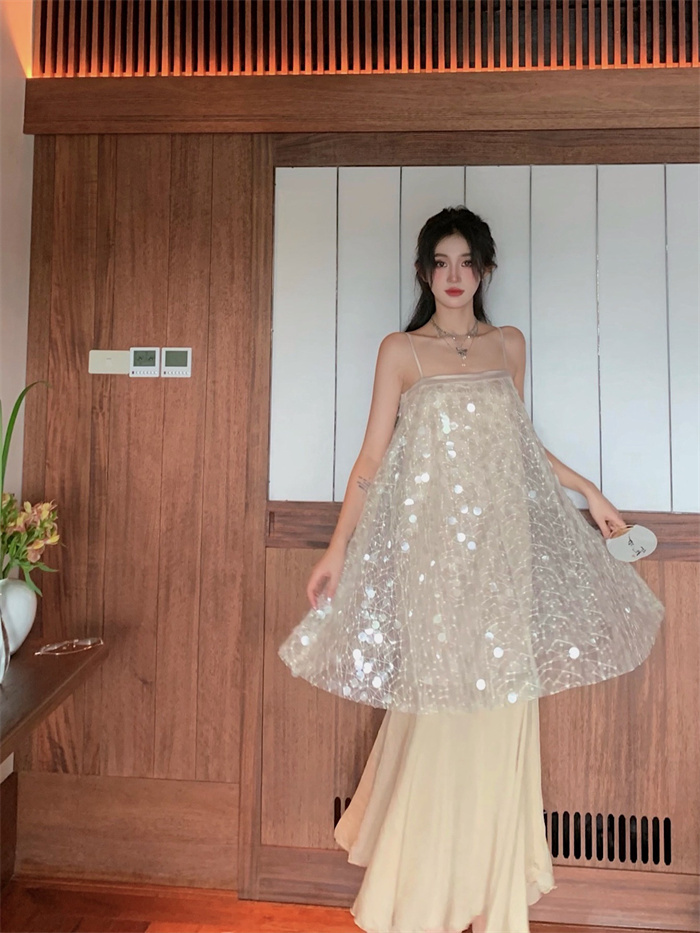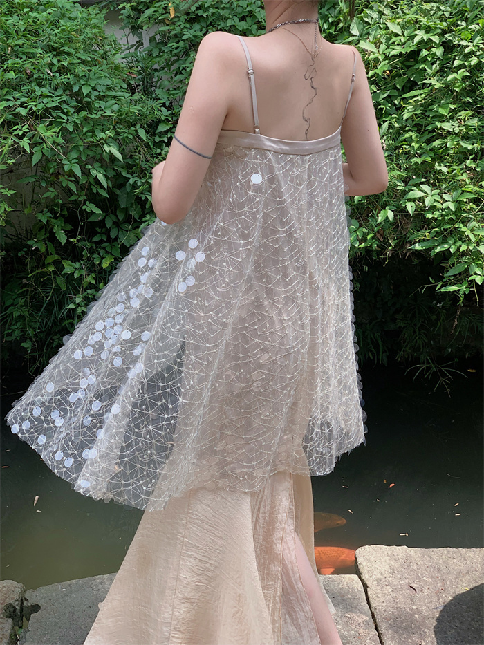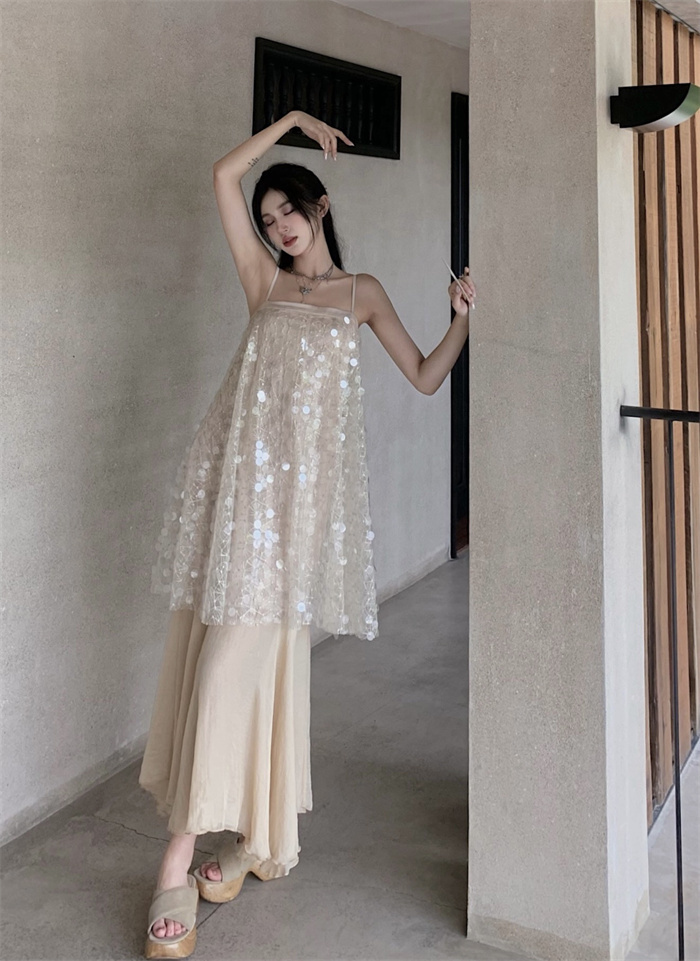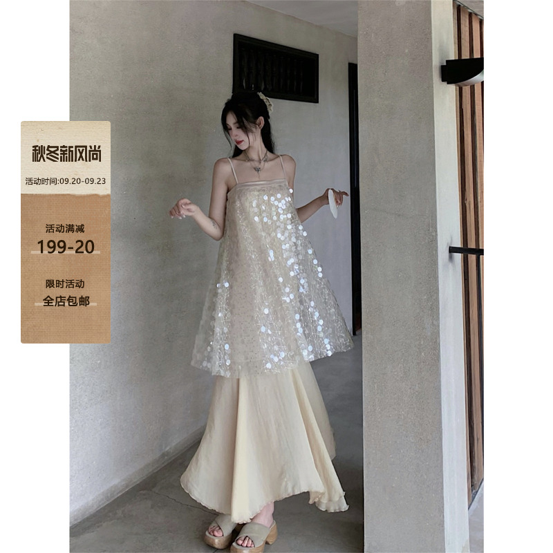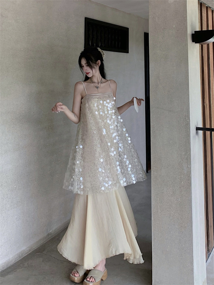 [WALKINDARK]波子汽水·精緻重工少女亮片雙層蛋糕吊帶洋裝夏女