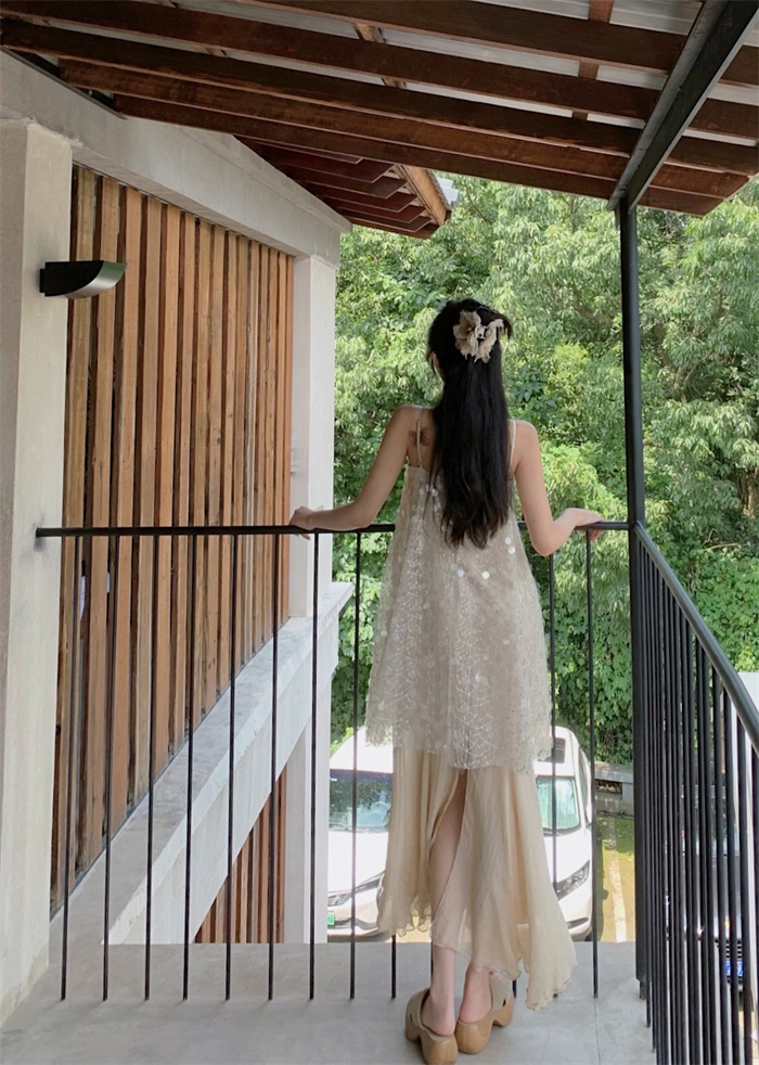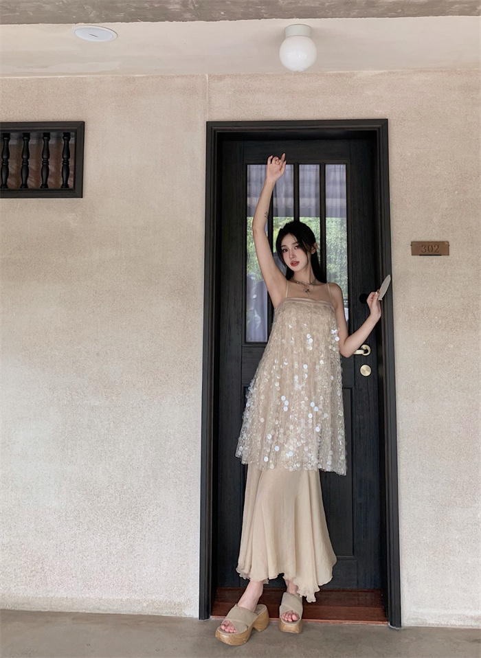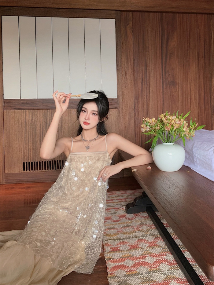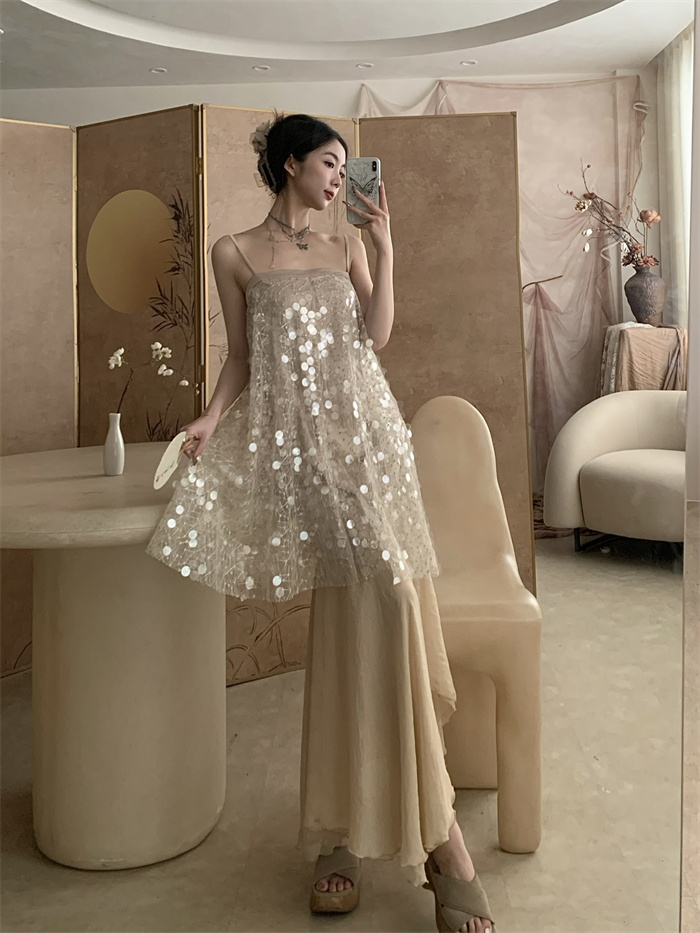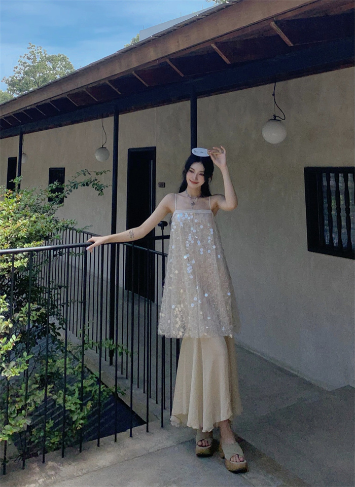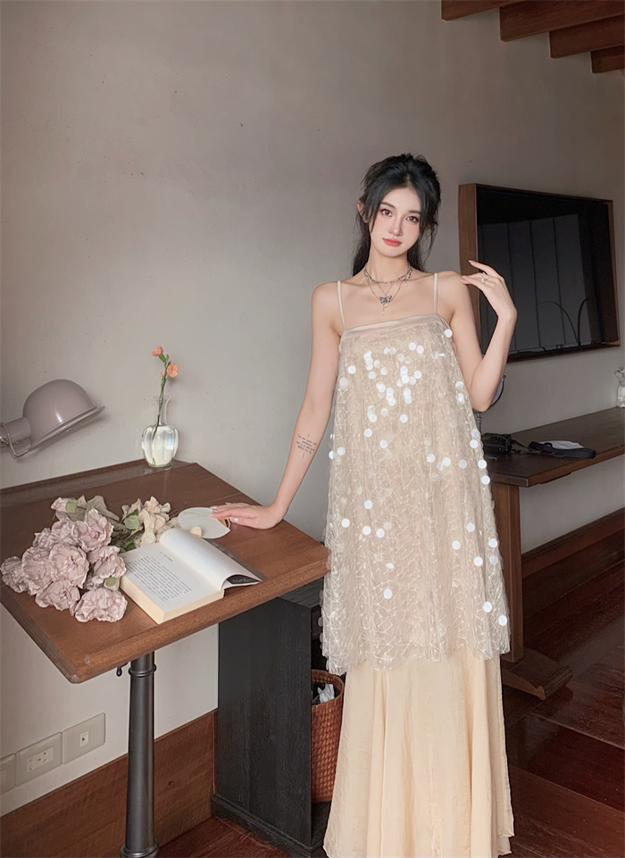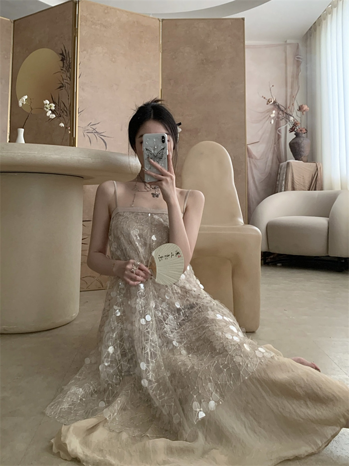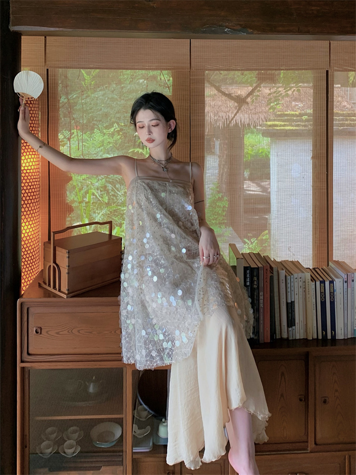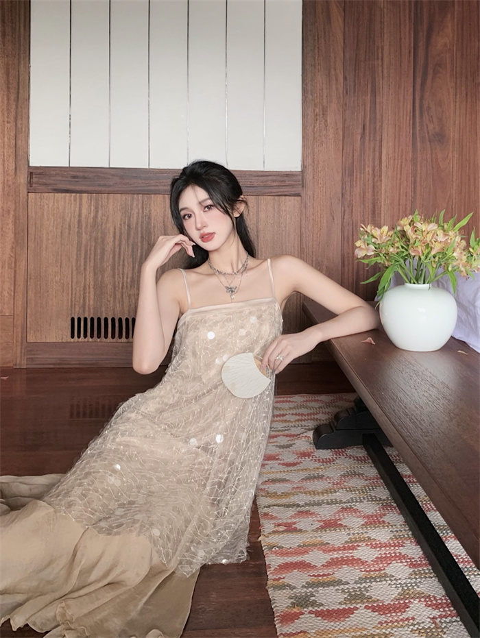 [WALKINDARK]波子汽水·精緻重工少女亮片雙層蛋糕吊帶洋裝夏女