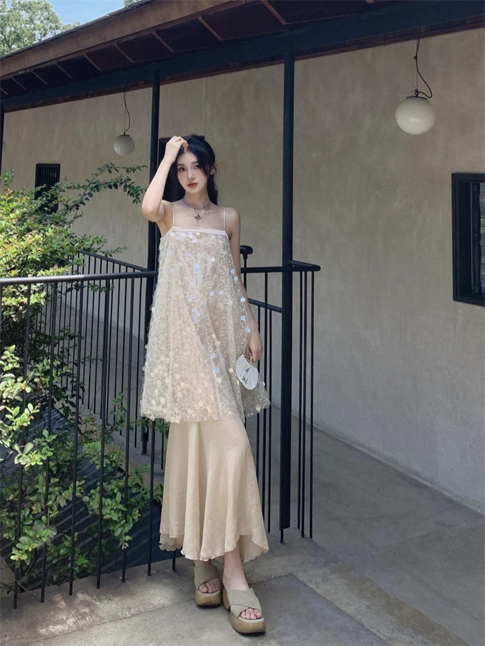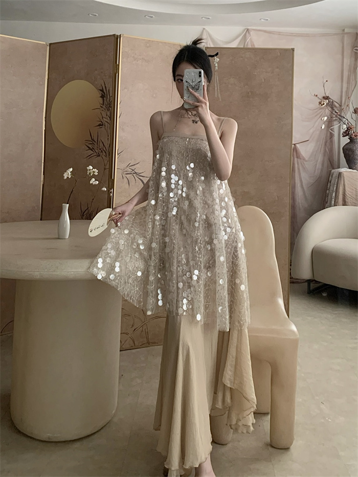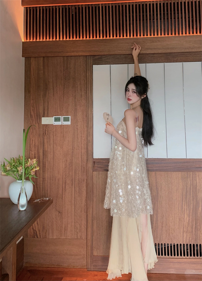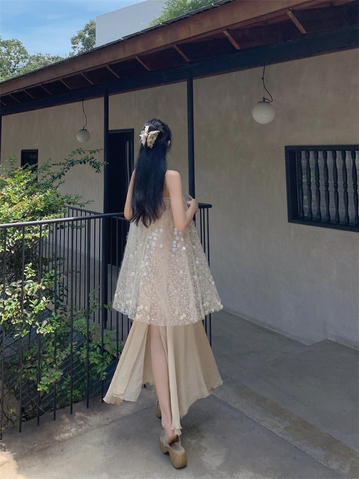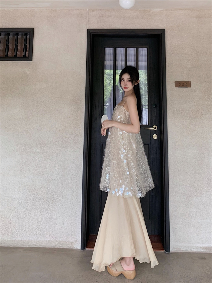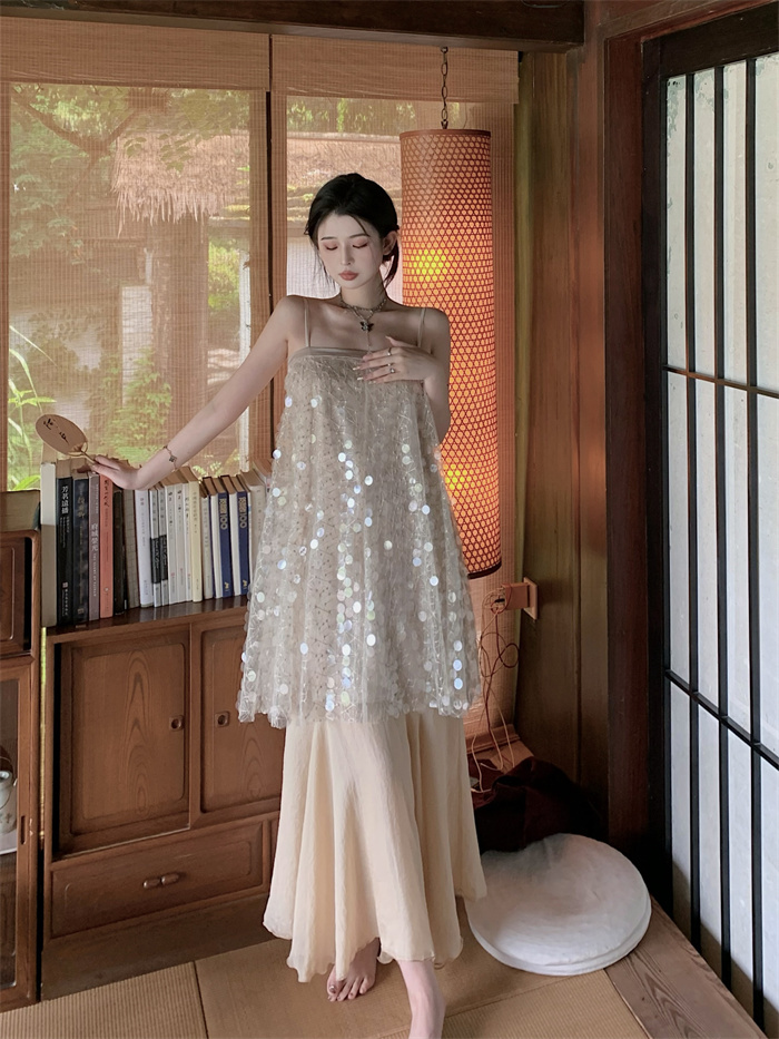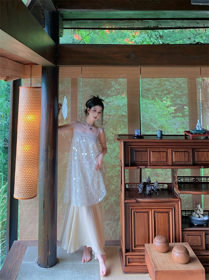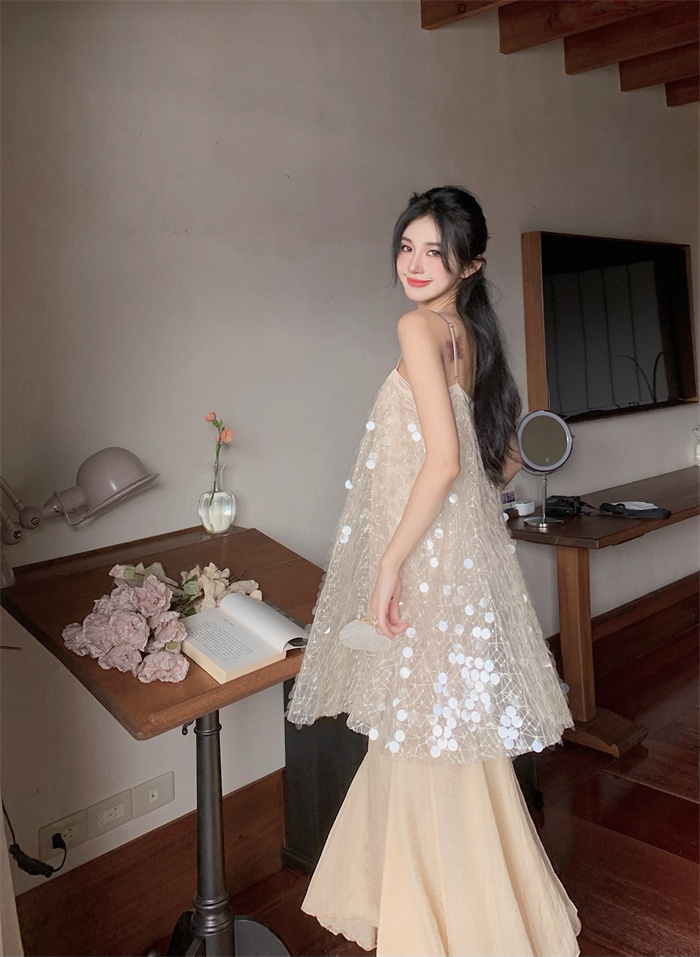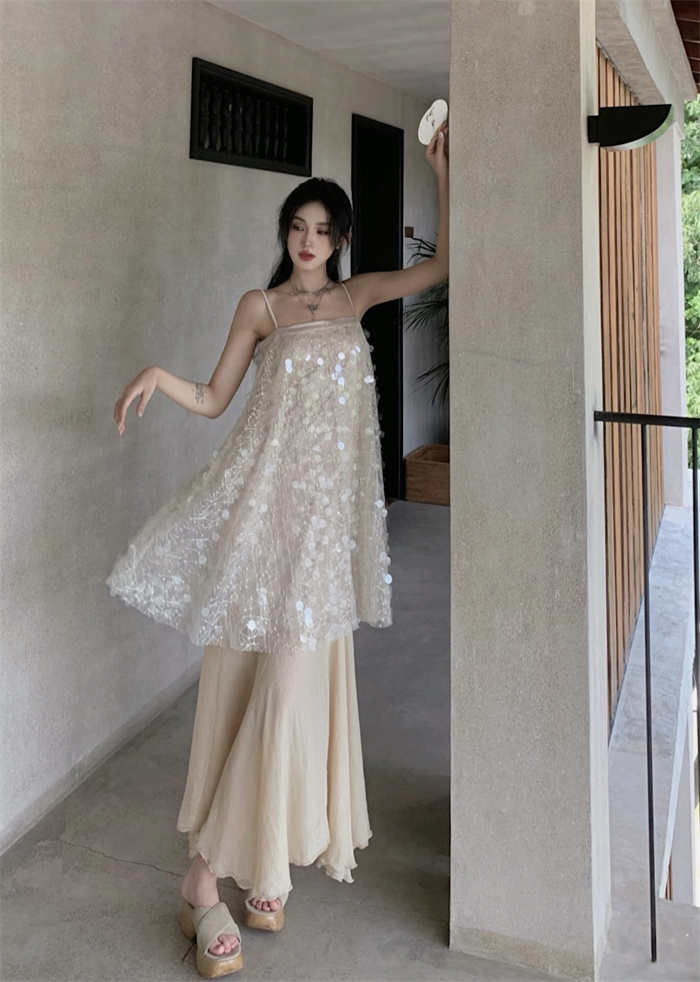 [WALKINDARK]波子汽水·精緻重工少女亮片雙層蛋糕吊帶洋裝夏女