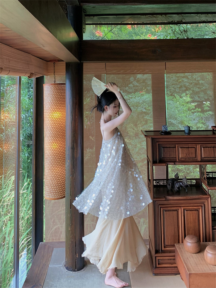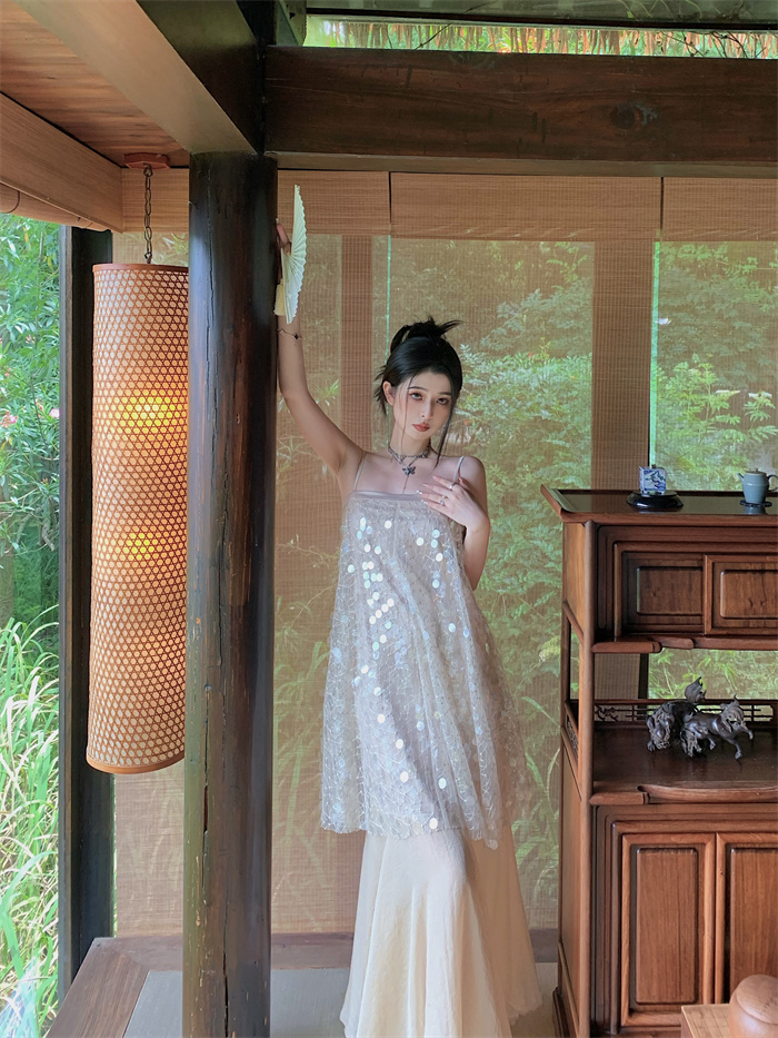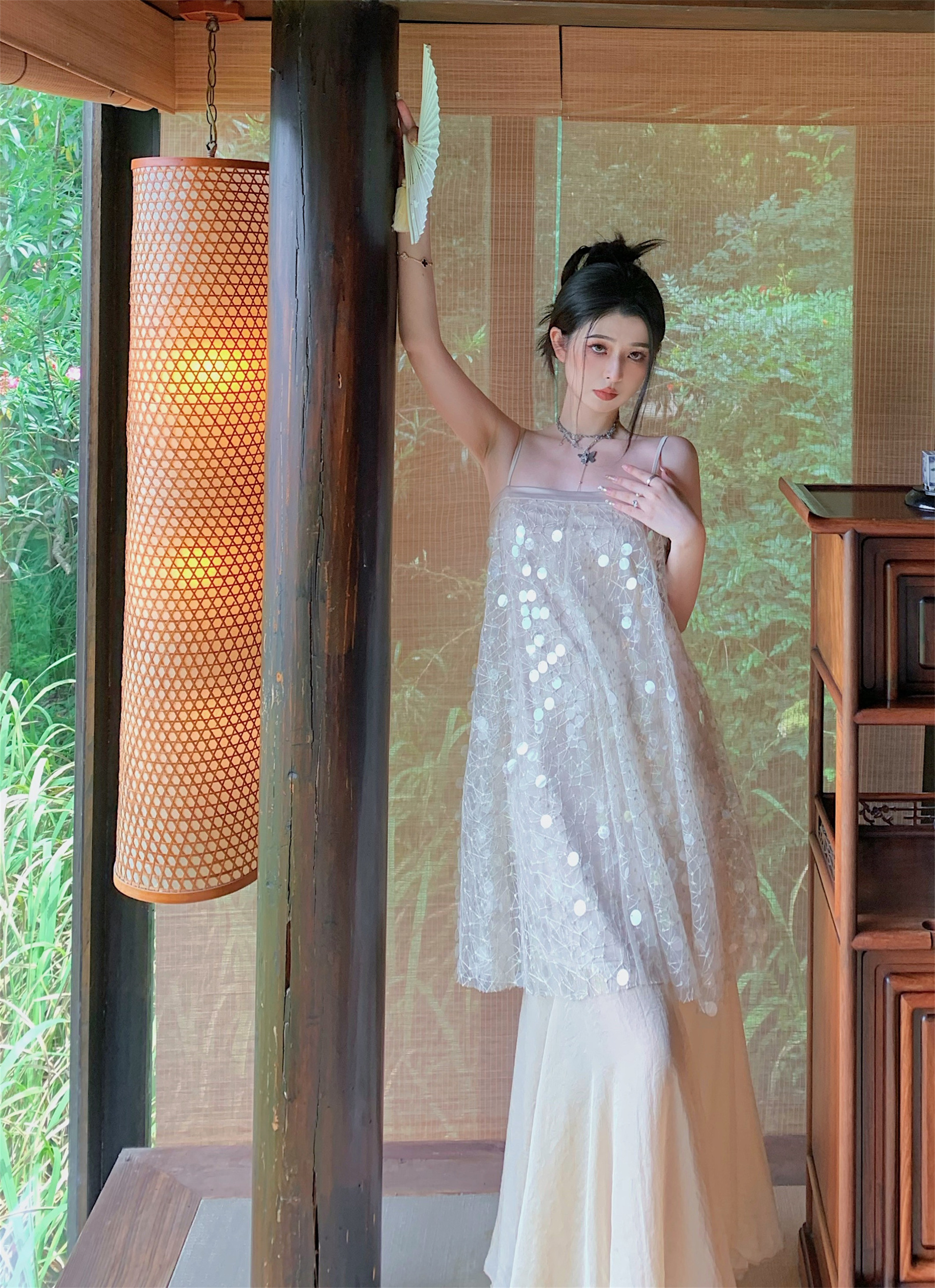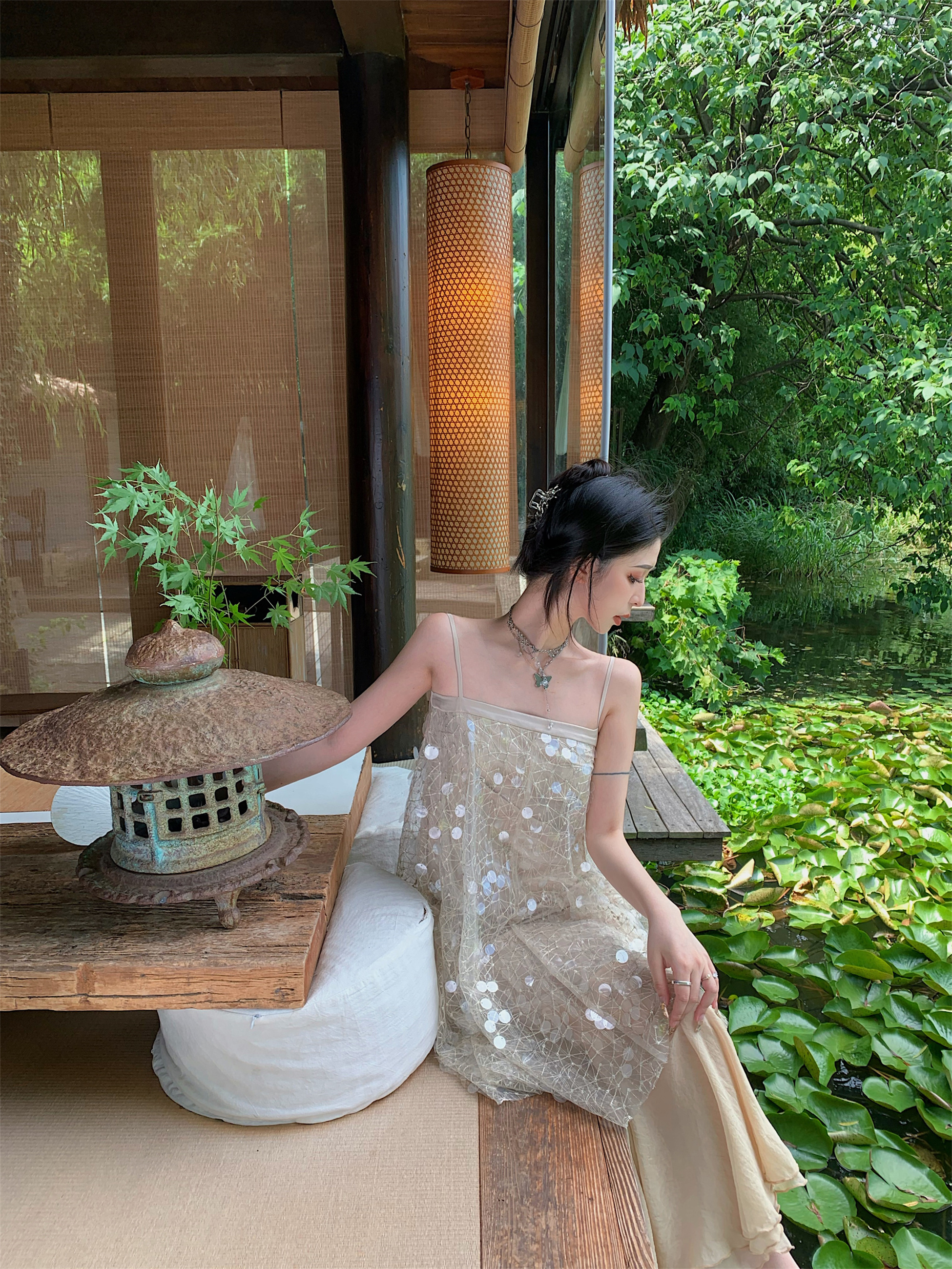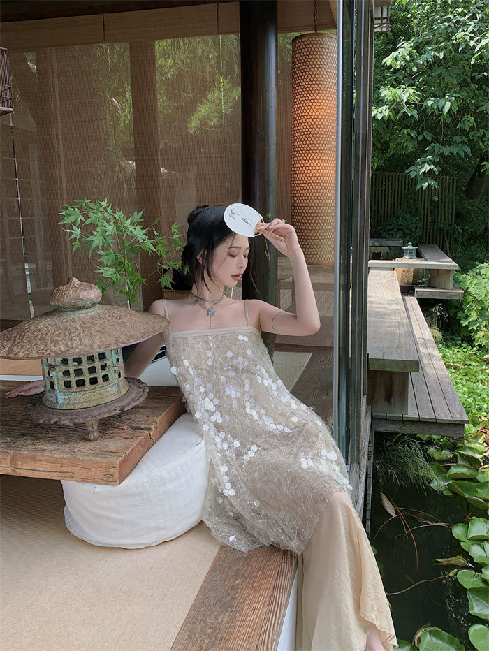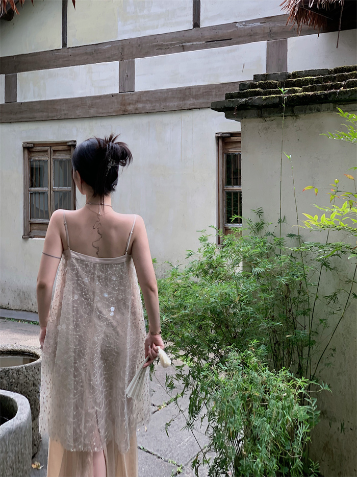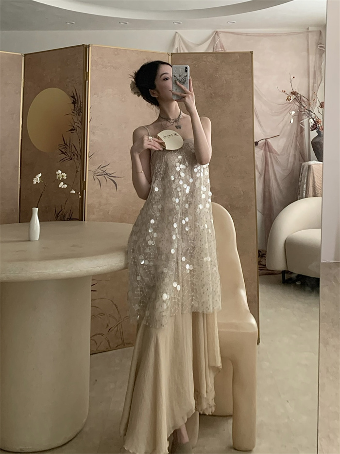 [WALKINDARK]波子汽水·精緻重工少女亮片雙層蛋糕吊帶洋裝夏女