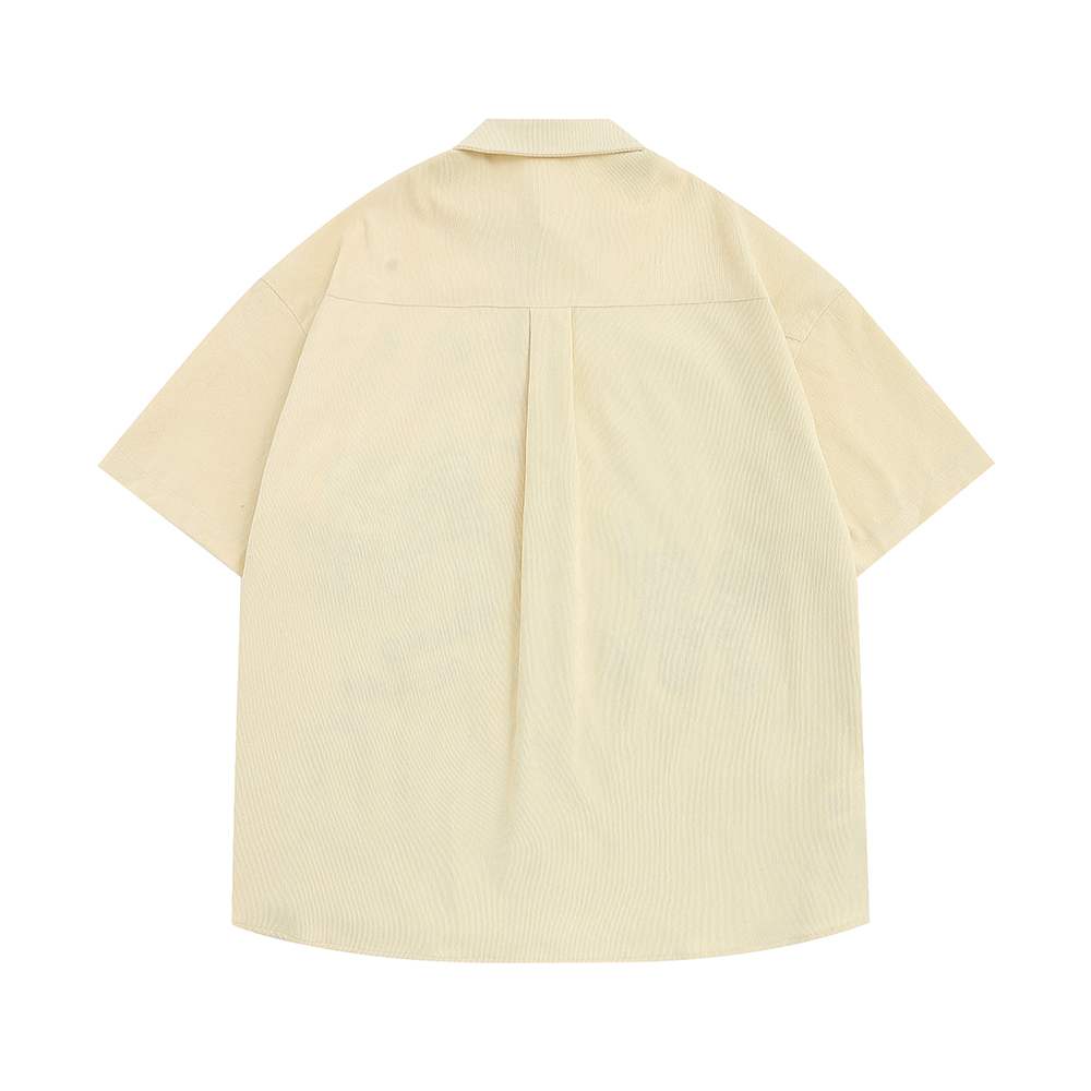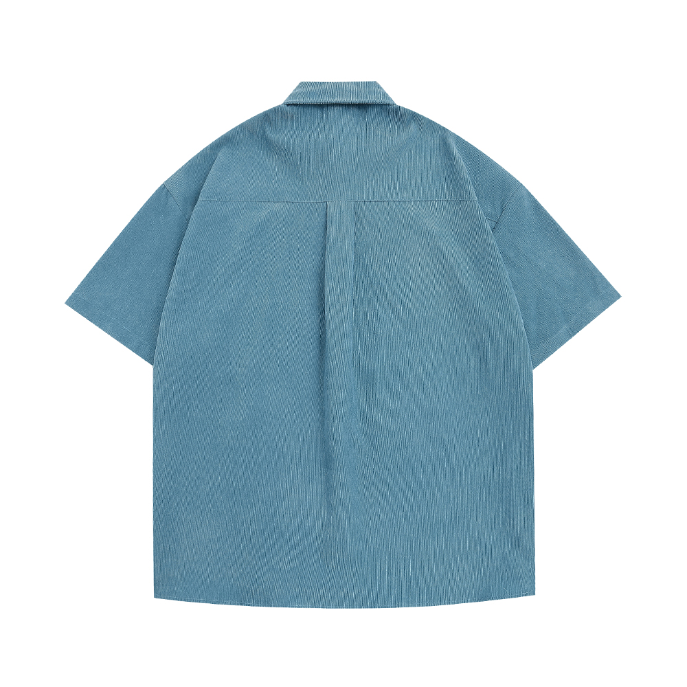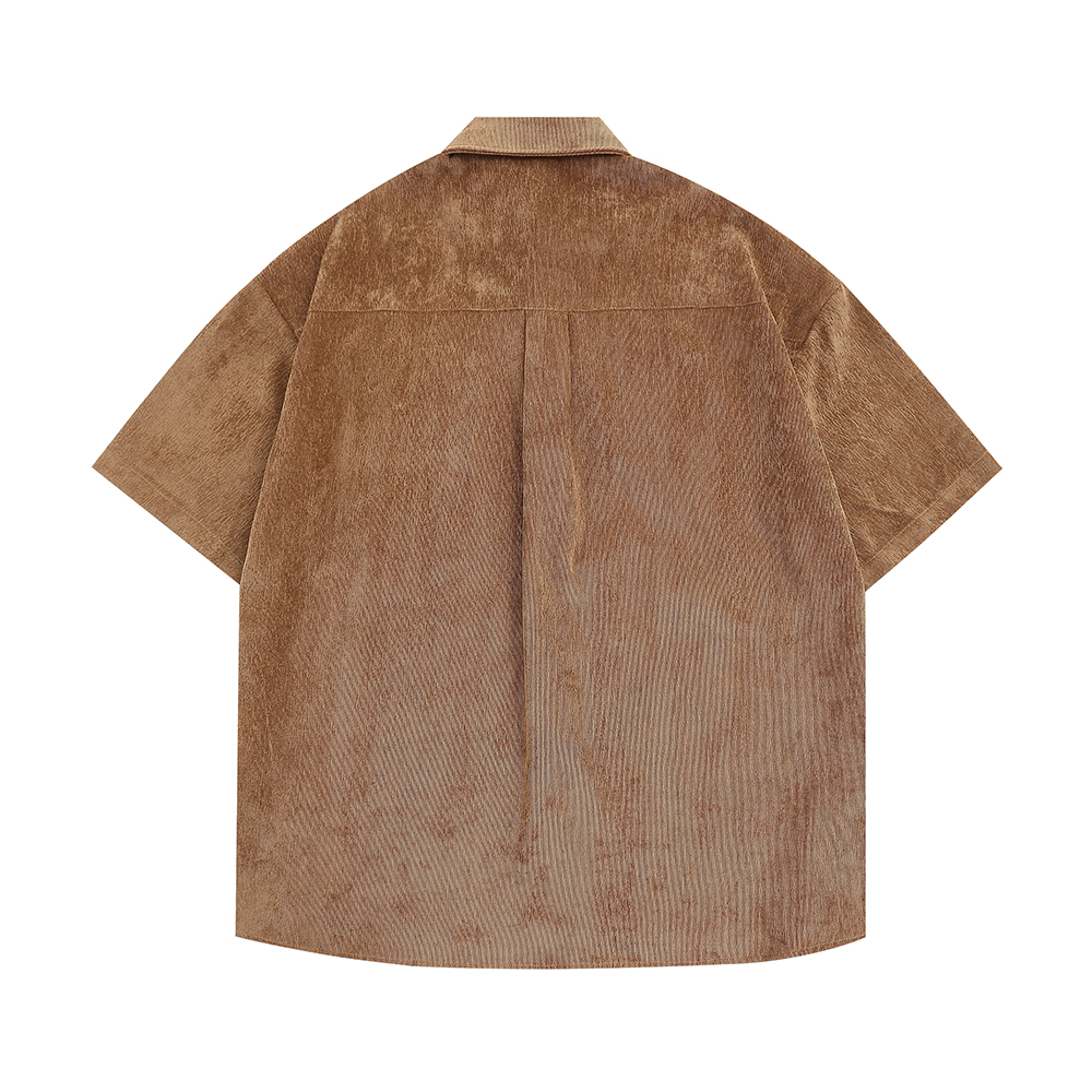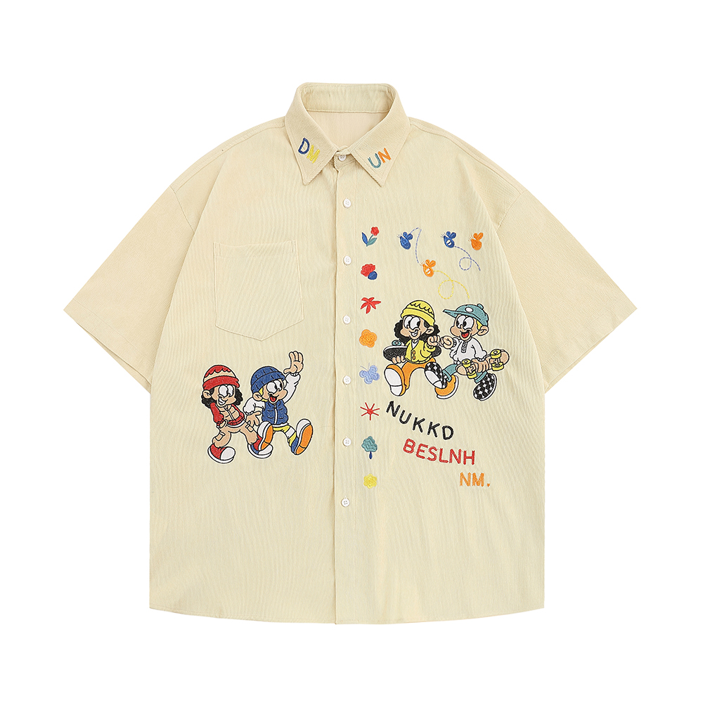 WESVGM夏季美式復古趣味卡通刺繡燈芯絨短袖襯衫男女寬鬆潮牌上衣