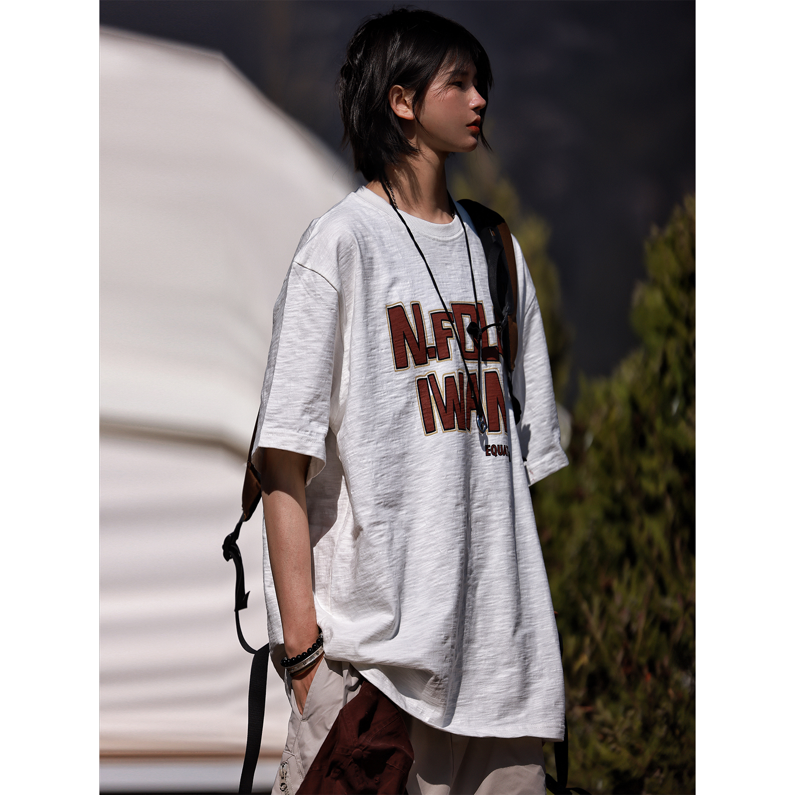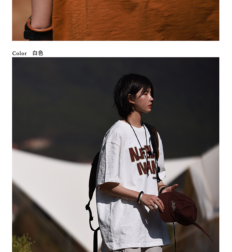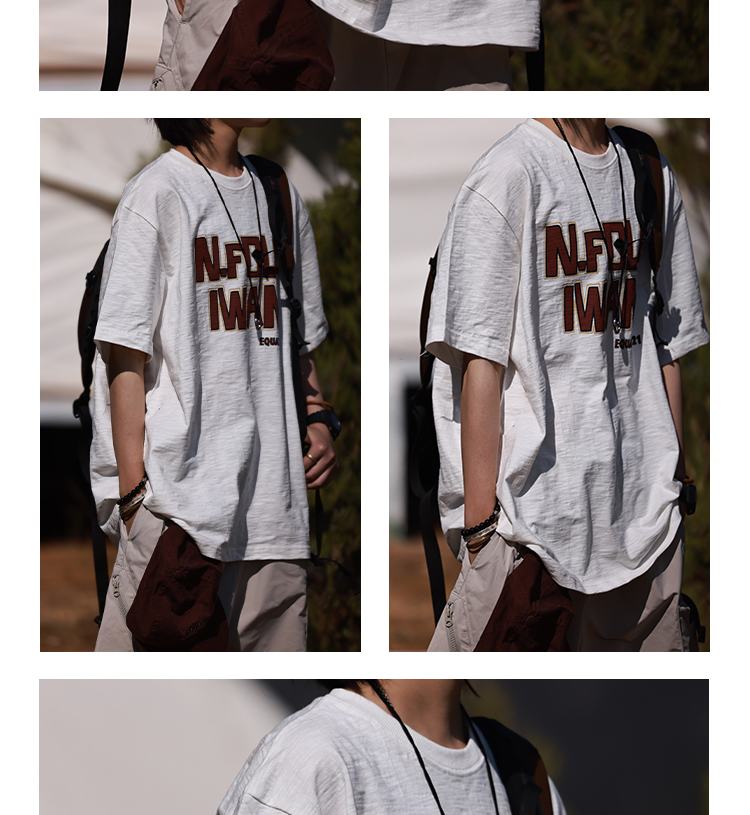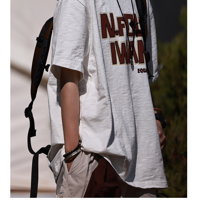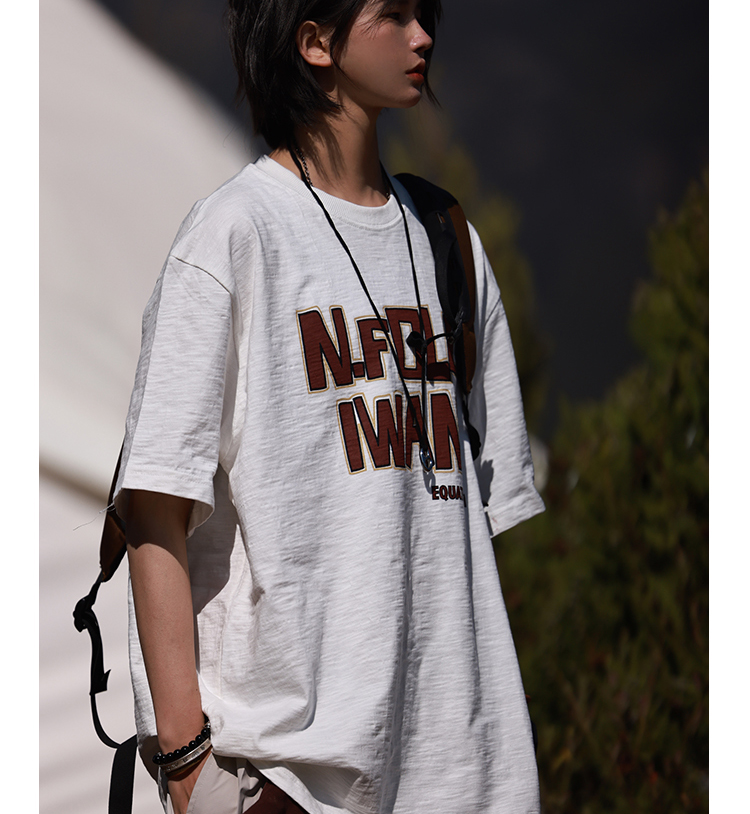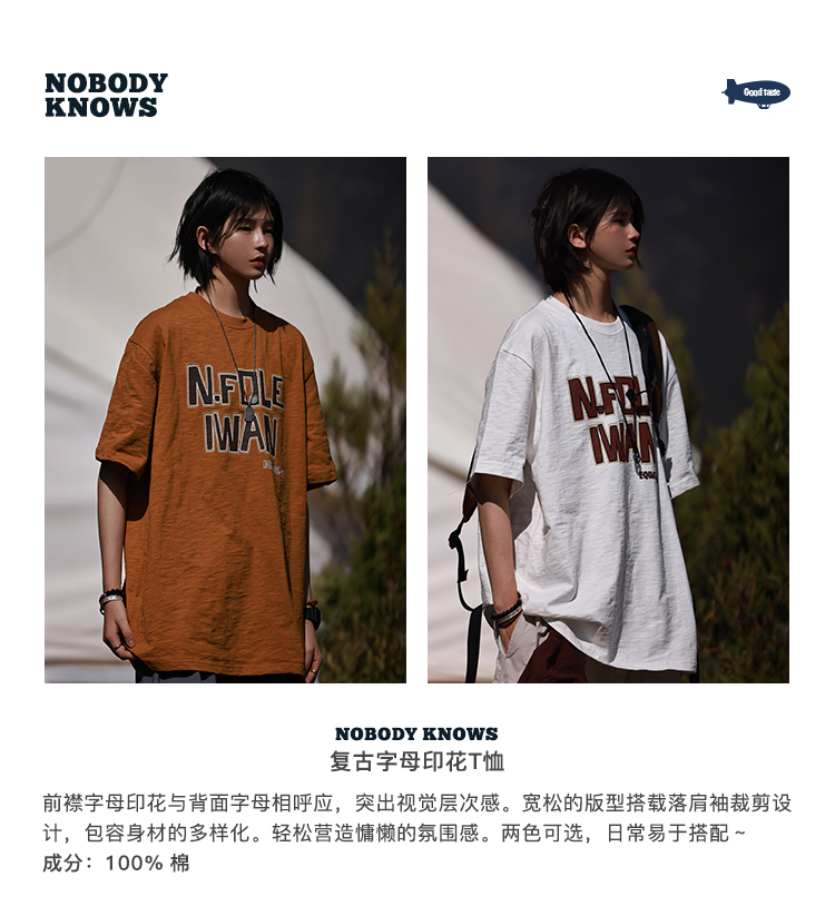 Nobodyknows夏季趣味字母竹節棉舒適透氣復古寬鬆短袖男女休閒tee