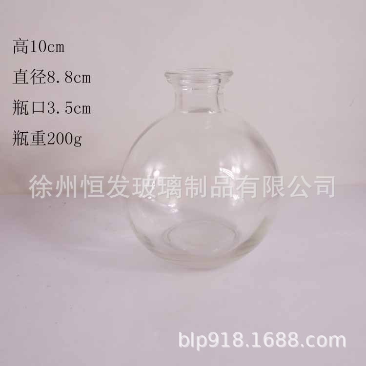 厂家供应8.8*10球形香薰瓶 无火精油藤条熏香花瓶玻璃瓶现货批发