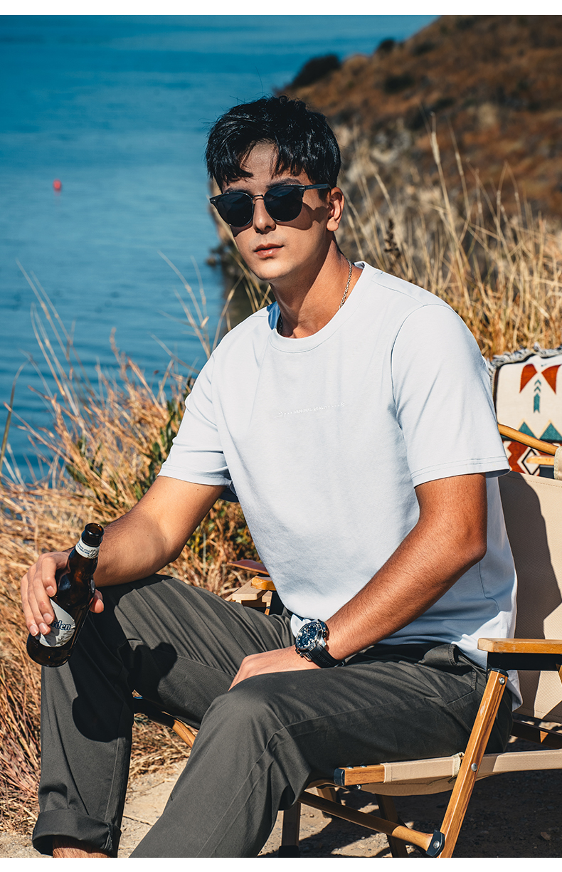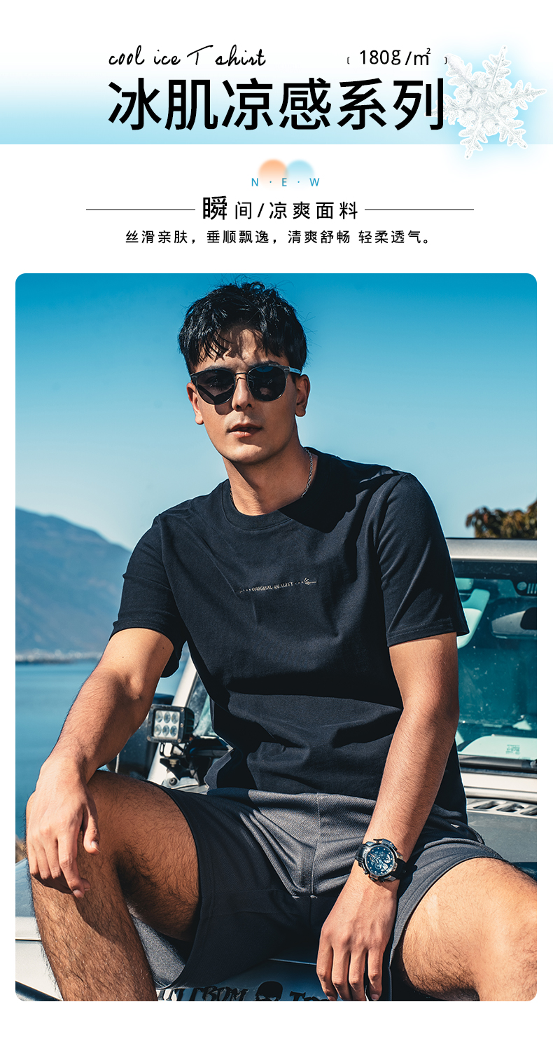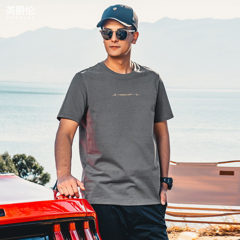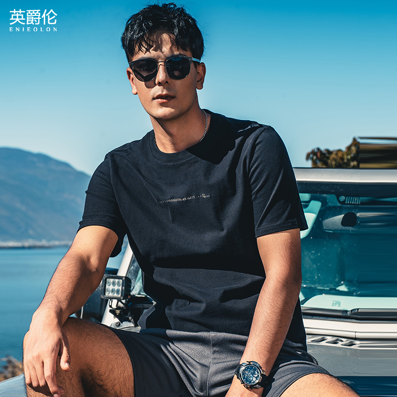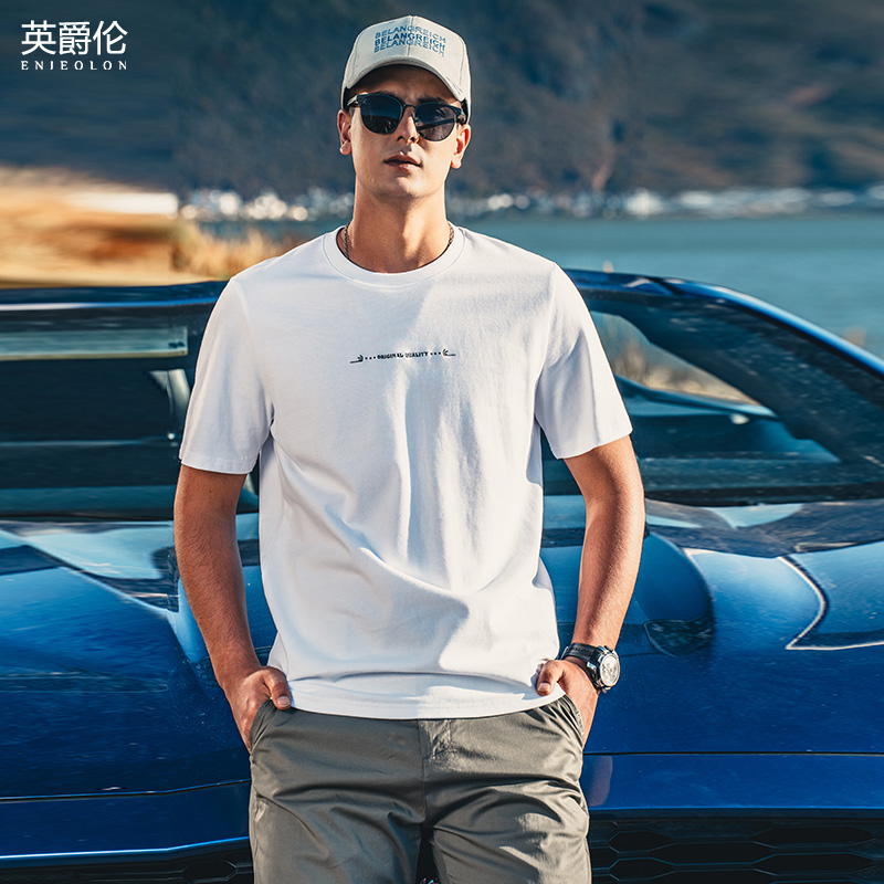 [冰氧吧] 英爵倫涼感冰絲棉男士短袖T恤歐美簡約刺繡半袖夏季T恤