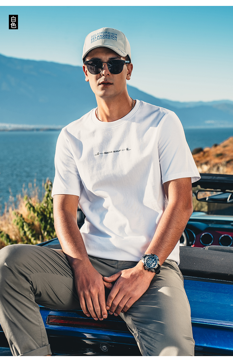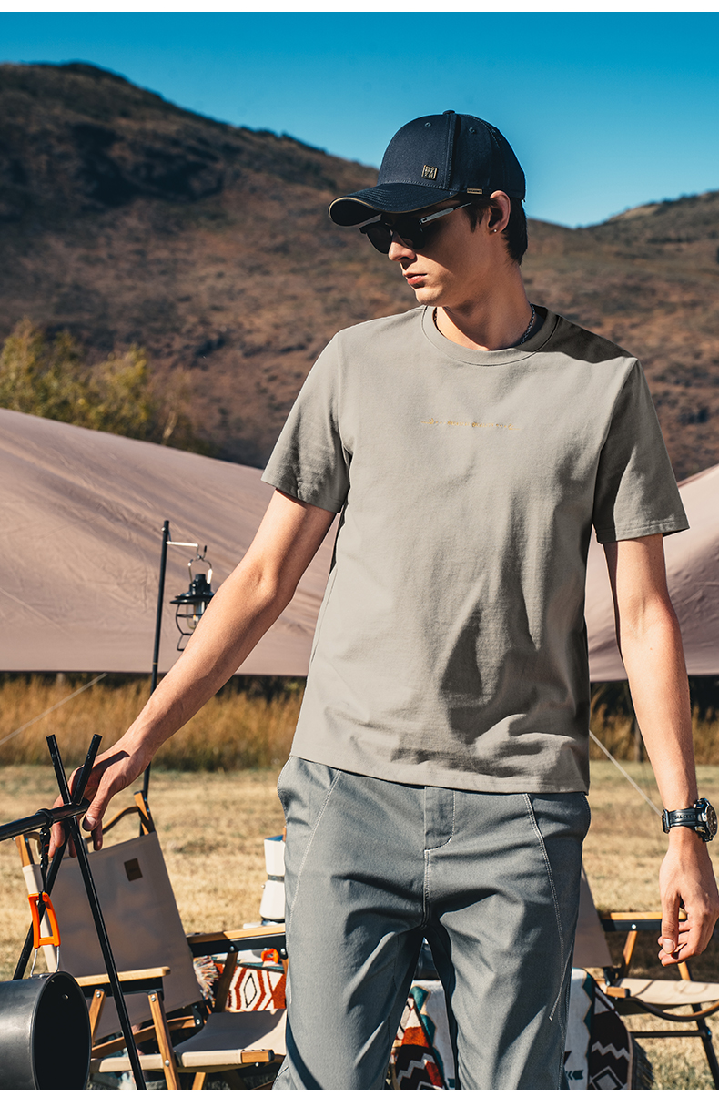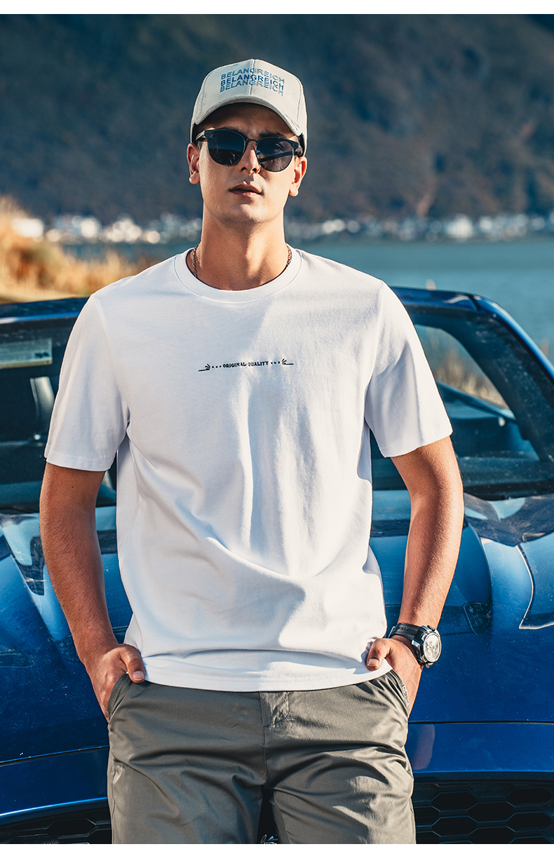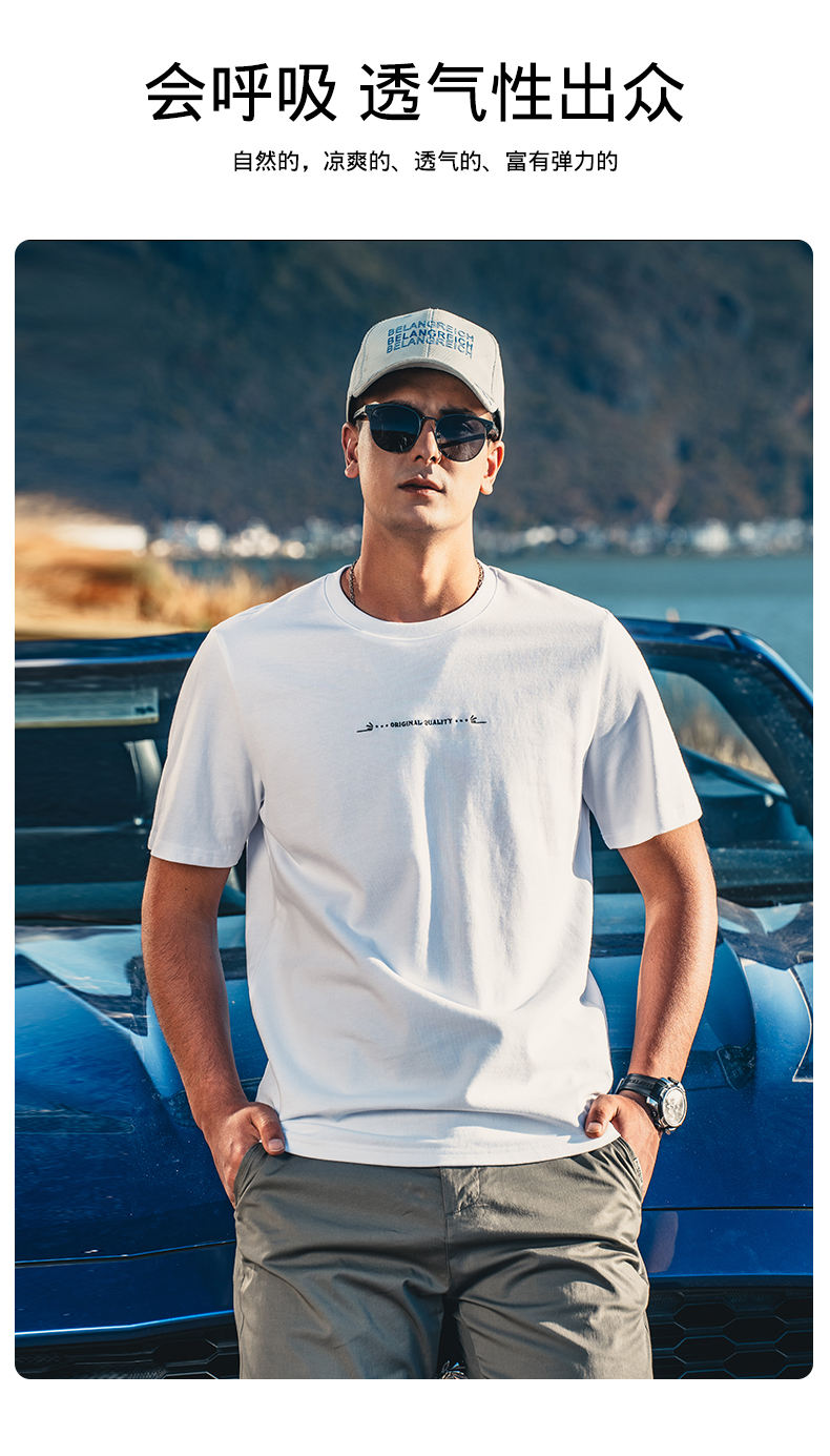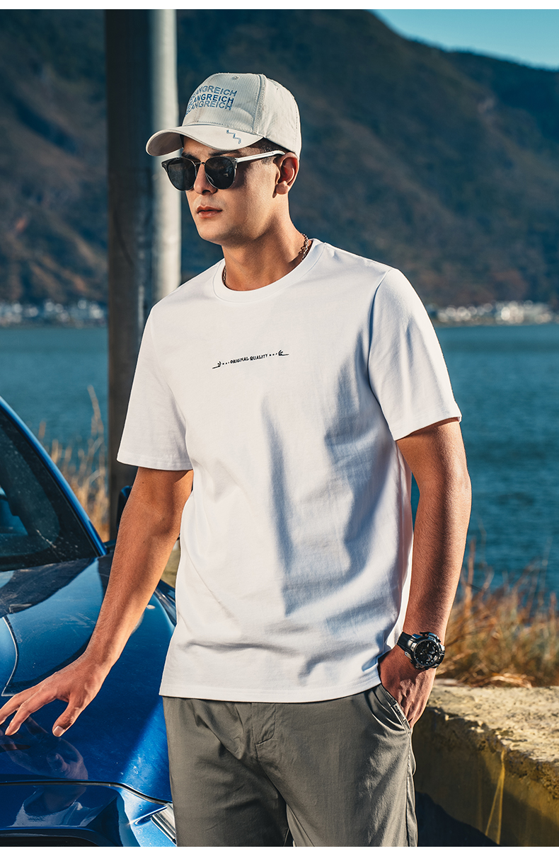[冰氧吧] 英爵倫涼感冰絲棉男士短袖T恤歐美簡約刺繡半袖夏季T恤