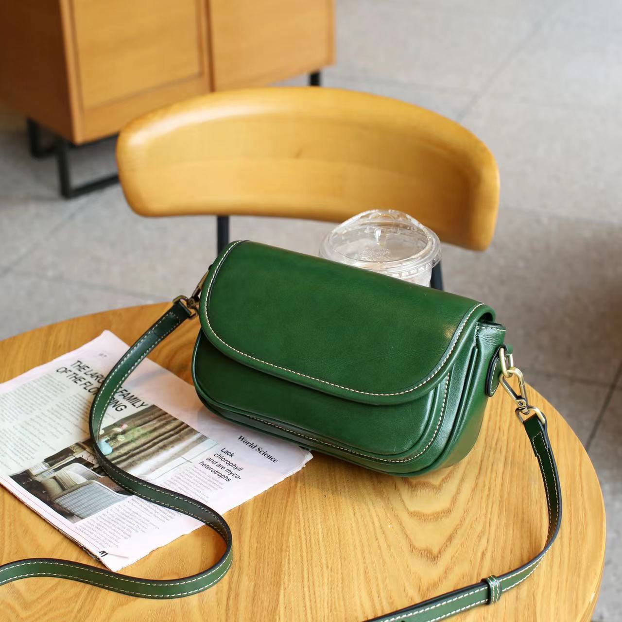 小众包包2023四季款潮百搭头层牛皮邮差包复古植鞣牛皮单肩斜挎包