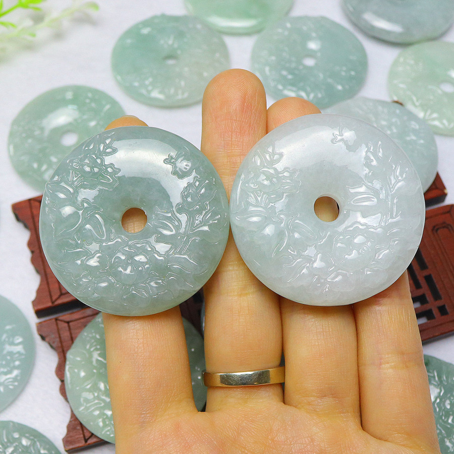 翡翠吊坠A货正品天然花开富贵平安扣吊坠挂件DIY挂饰男女款配饰