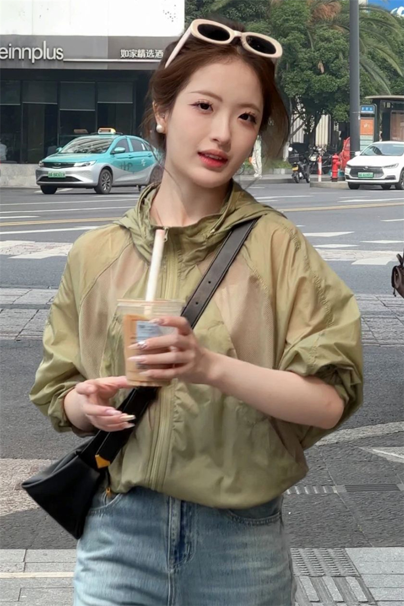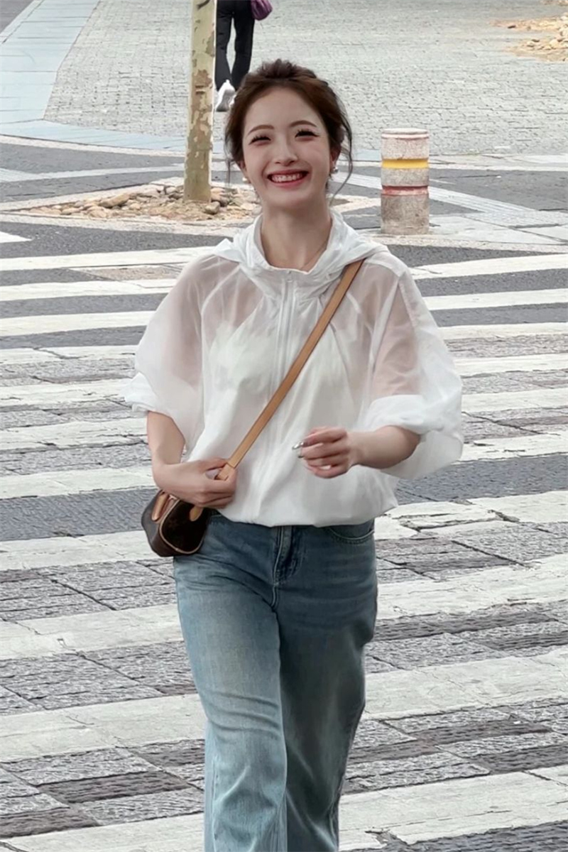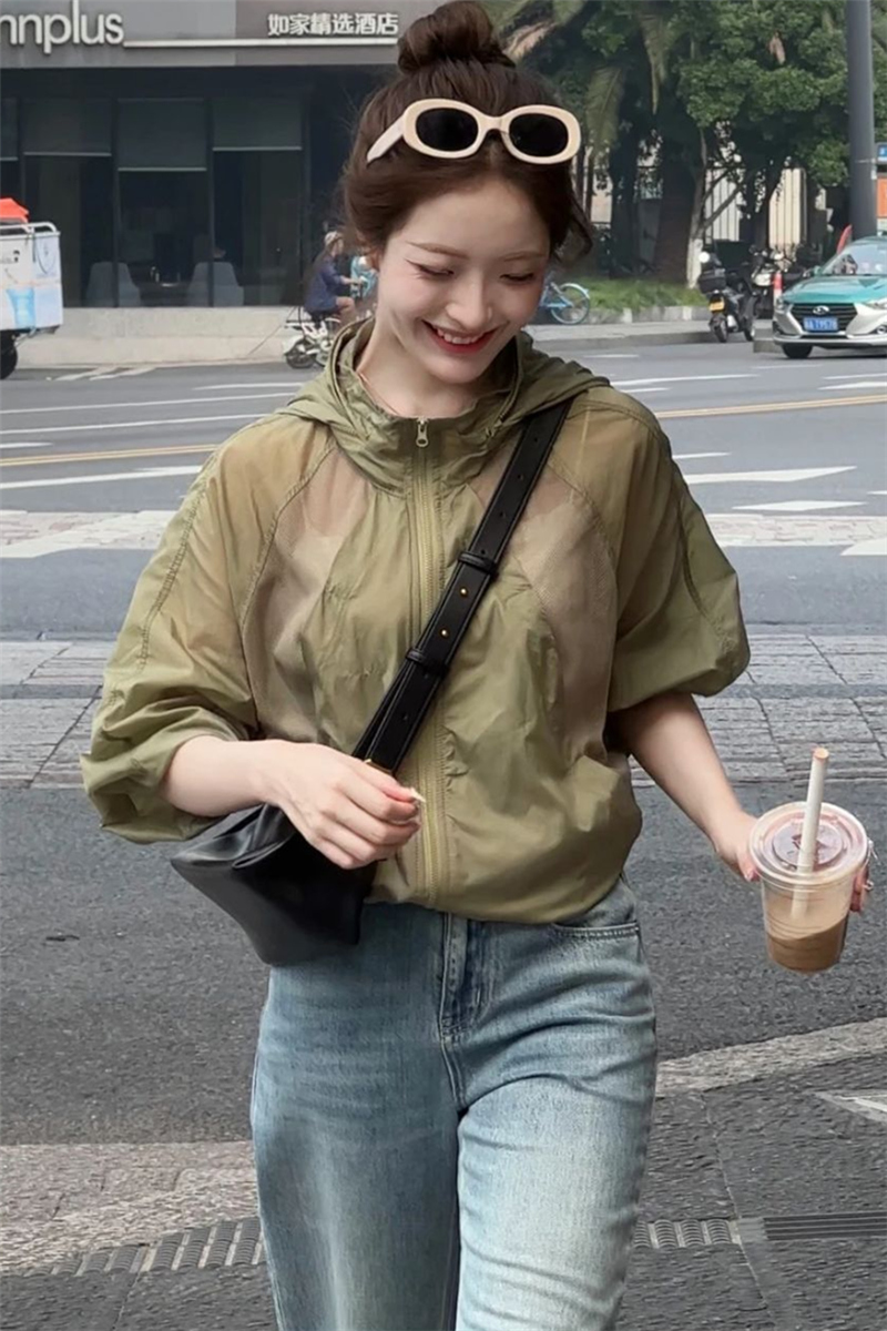 防曬衣女薄款外套2023新寬鬆休閒小個子短款輕薄透氣連帽上衣開衫