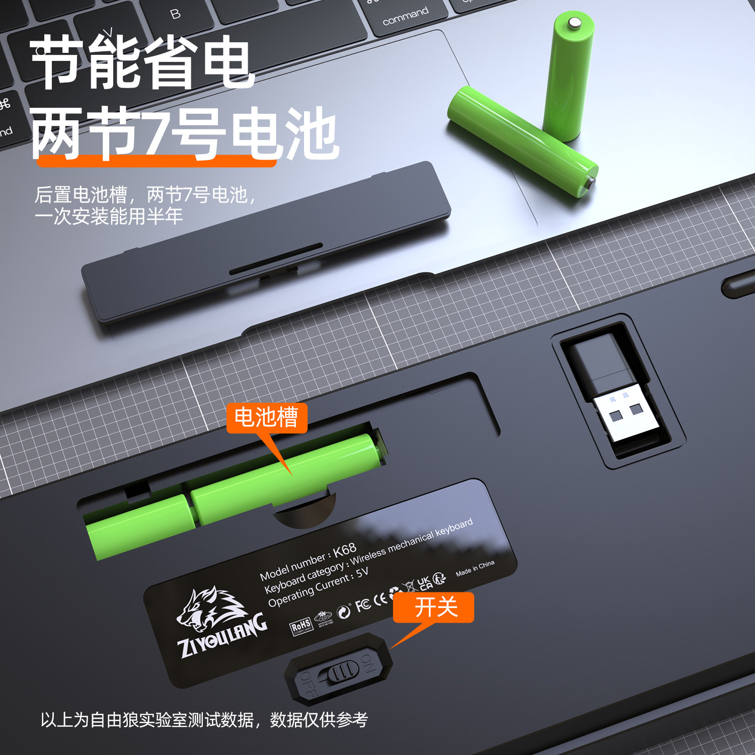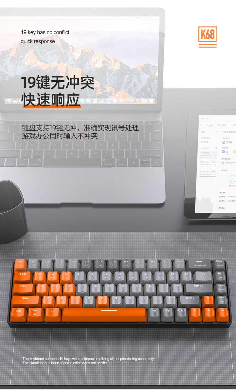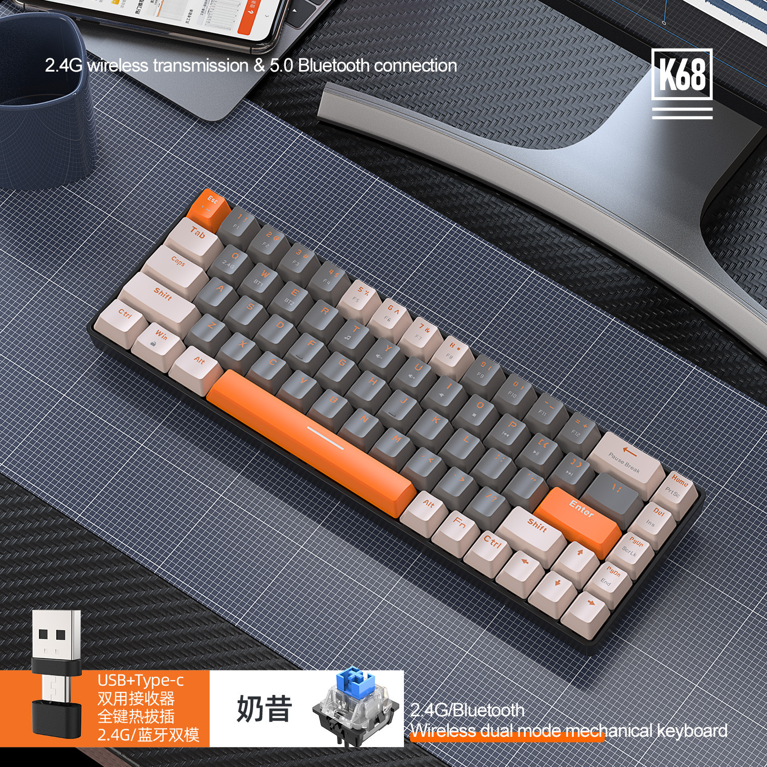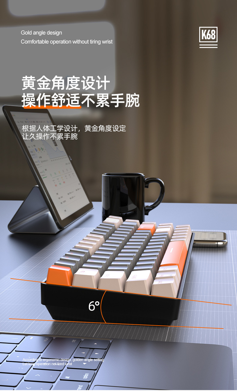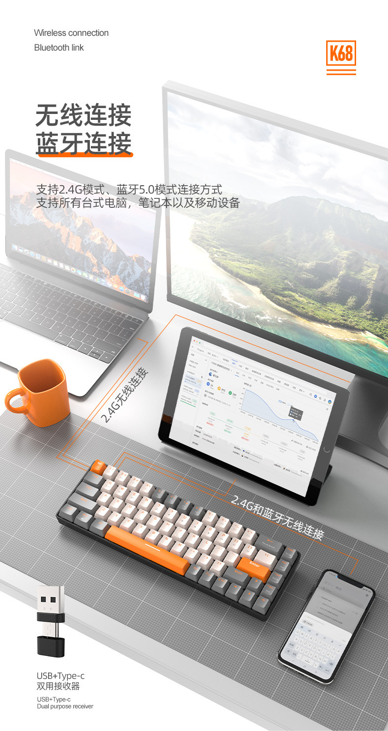 自由狼K68蓝牙无线双模机械键盘拼色游戏网咖电竞热插拔机械键盘
