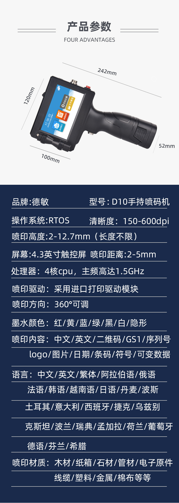 D10小型手持喷码机生产日期打标机二维码标签喷印包装袋打码机