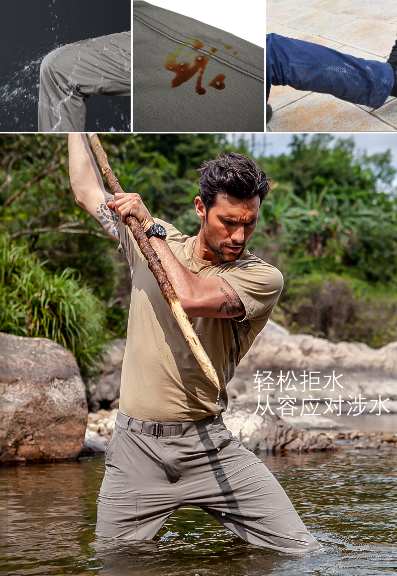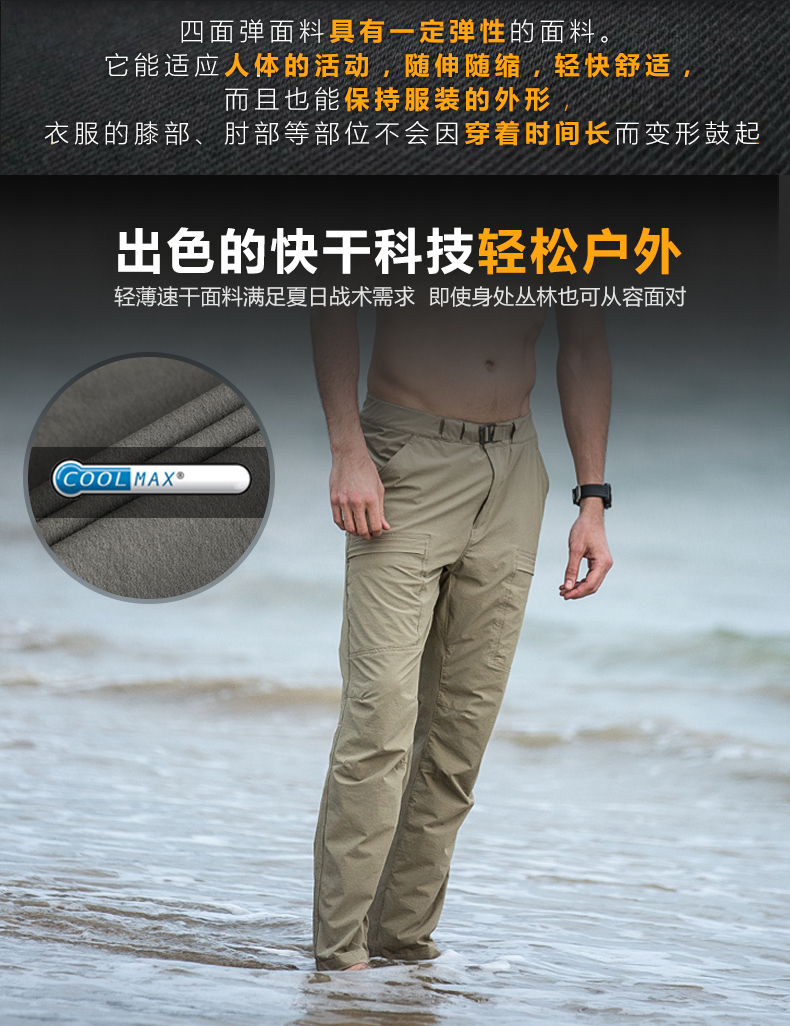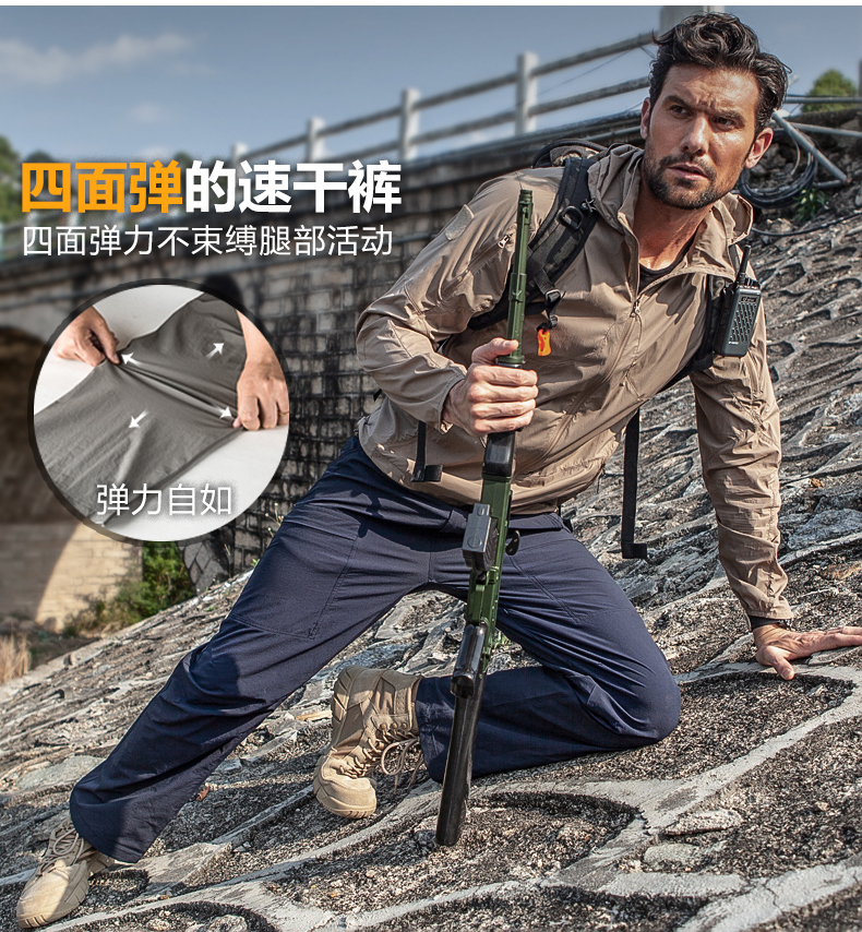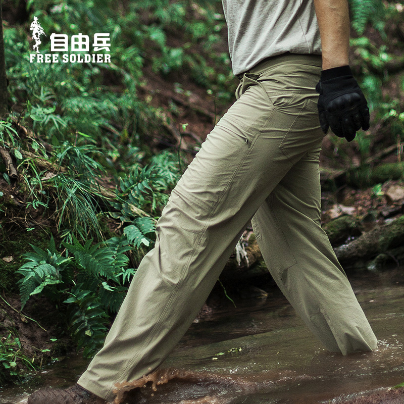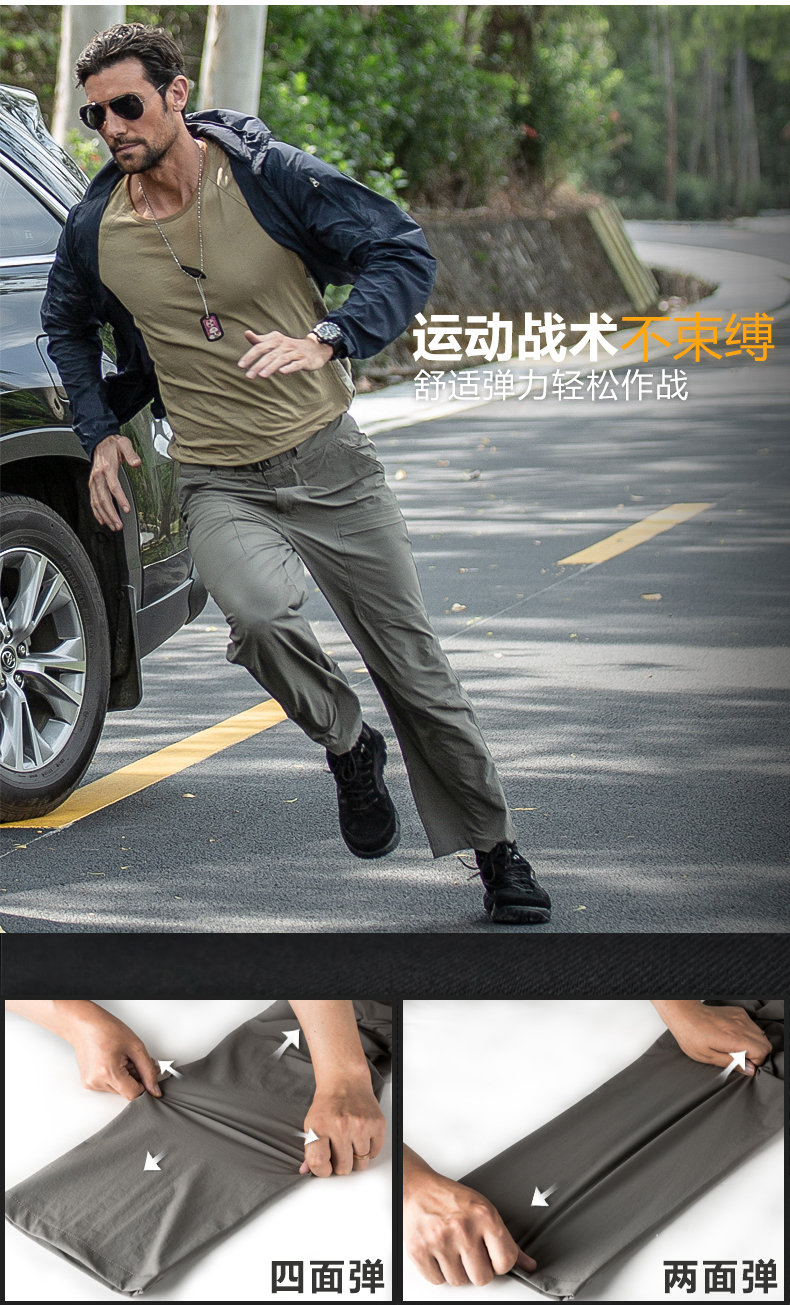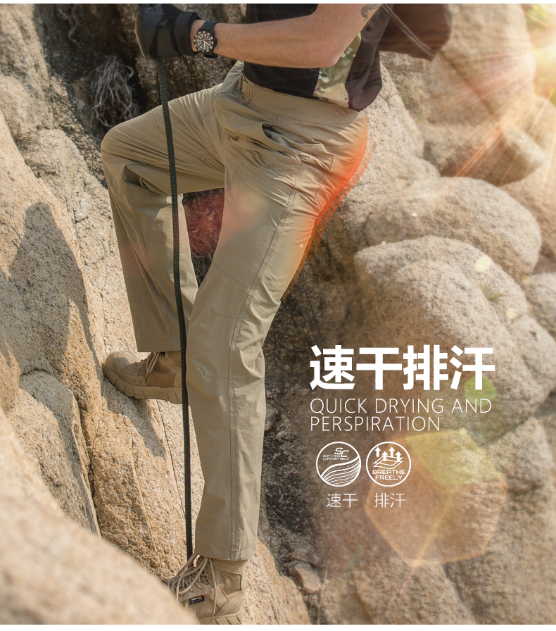 自由兵戶外薄款防水速乾褲男女夏季寬鬆運動彈力輕薄透氣登山褲