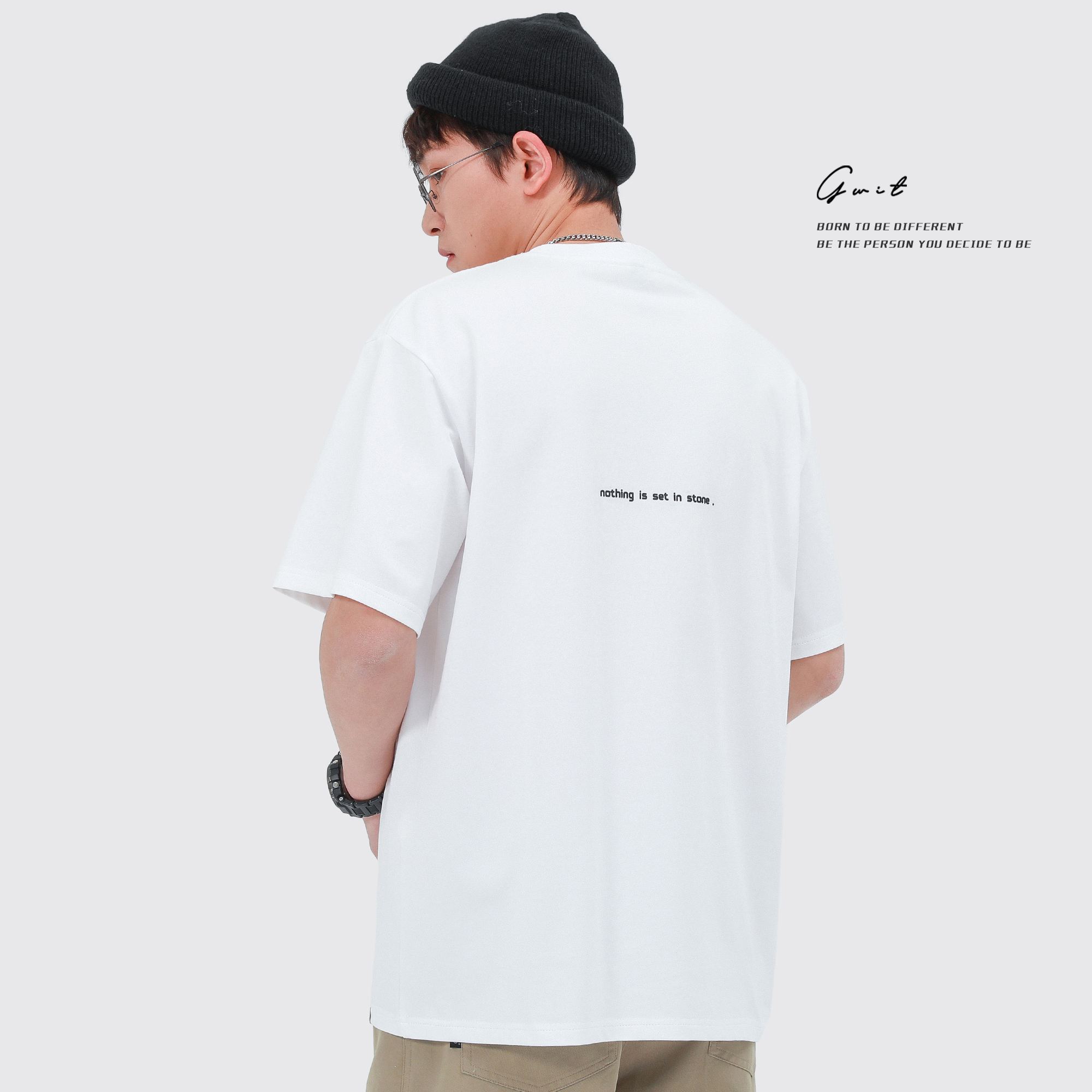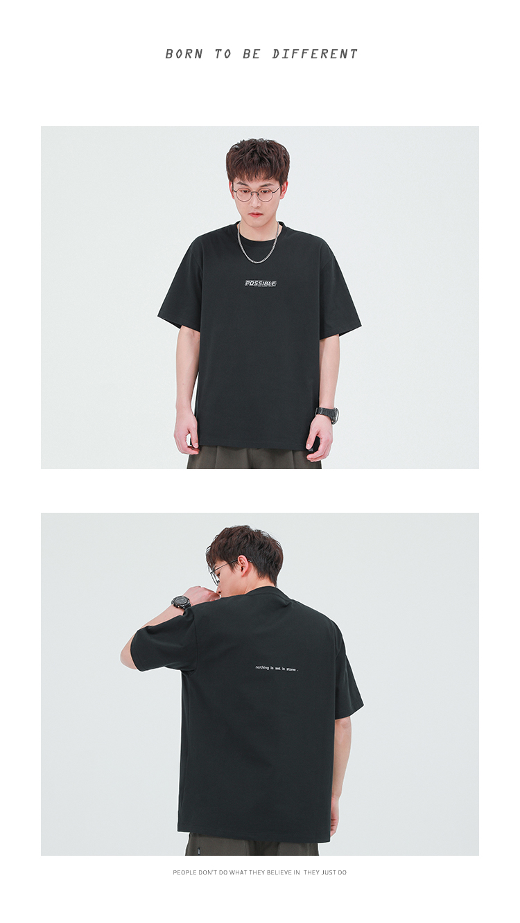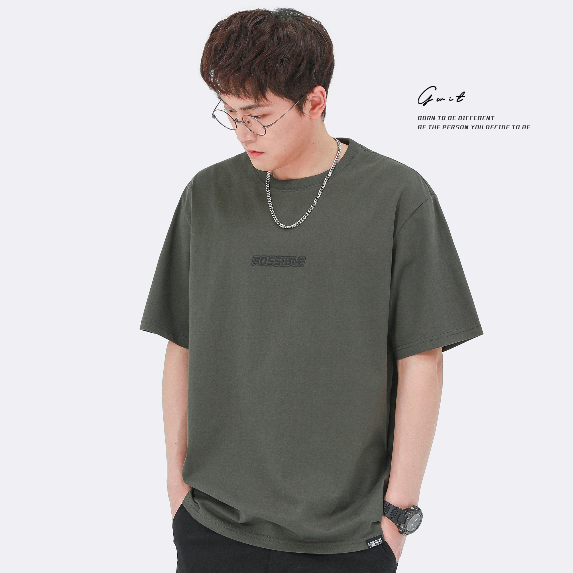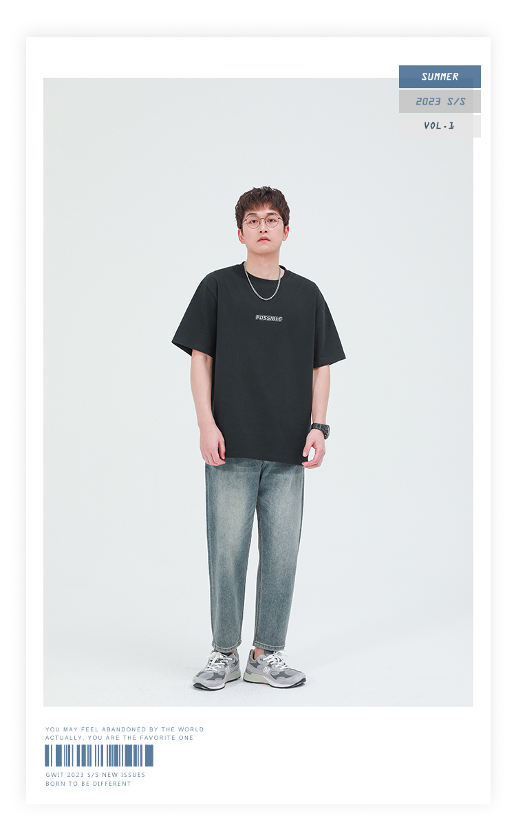 GWIT 夏季新款寬鬆潮流體恤基礎款打底衫半袖潮牌純棉短袖T恤男