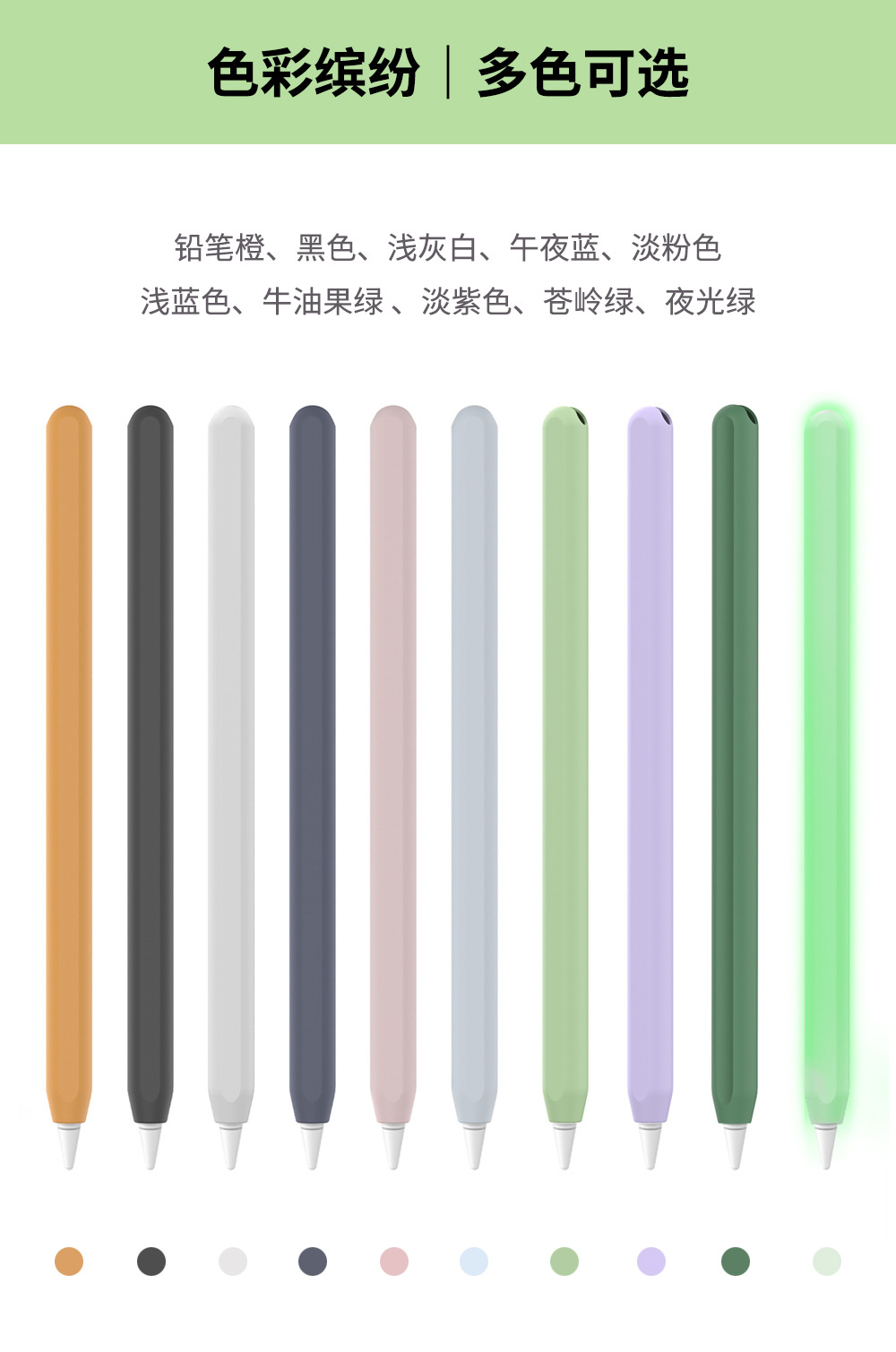 颜色 笔套(单个装)-黑色,笔套(单个装)-橙色,笔套(单个装)-午夜蓝,笔套(单个装)-浅蓝色,笔套(单个装)-淡粉色,笔套(单个装)-白色,笔套(单个装)-牛油果绿,笔套(单个装)-淡紫色