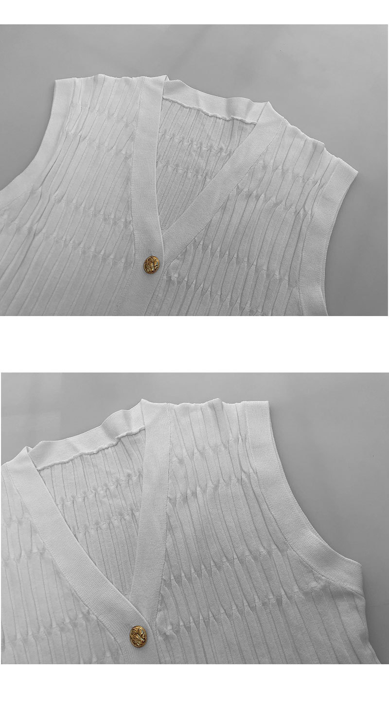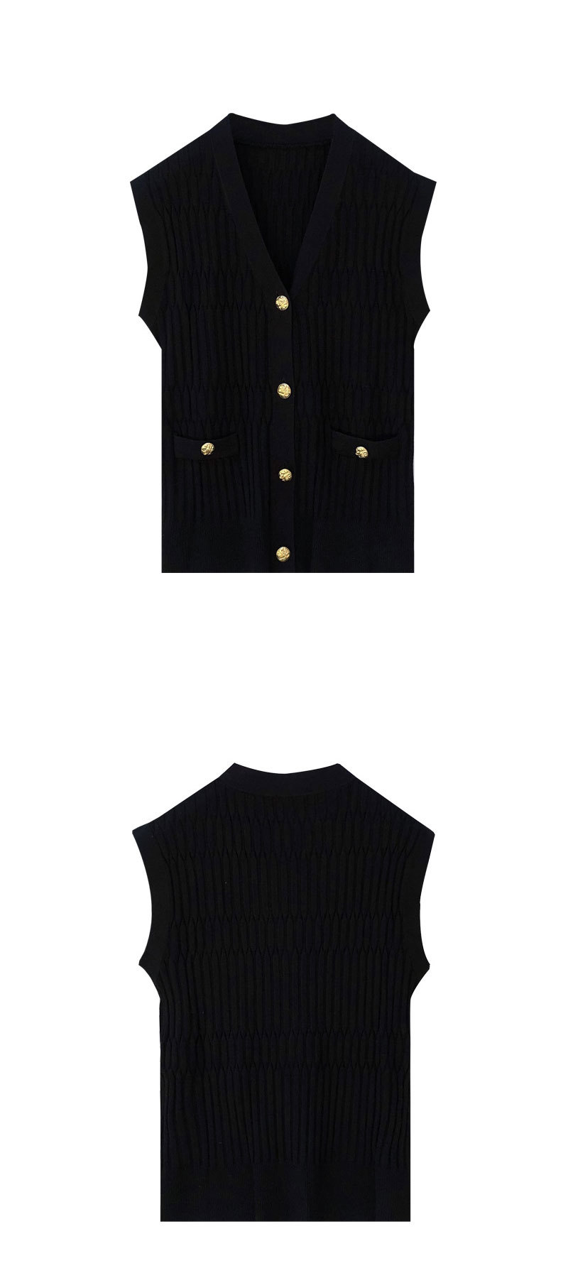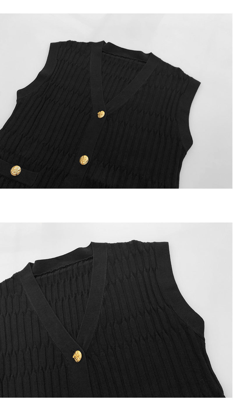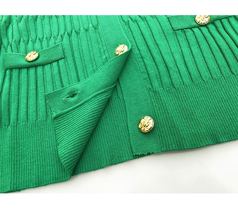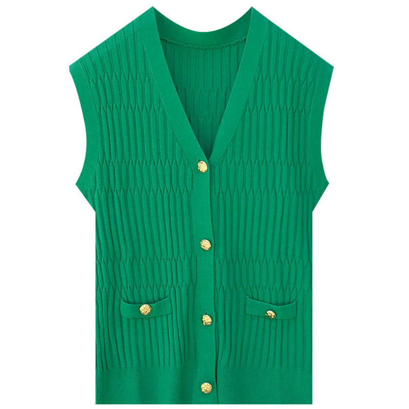 绿色 V领小香风修身无袖错落肌理金扣针织背心马甲女 MBB2SWT009