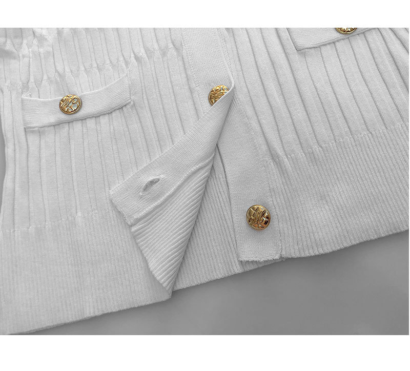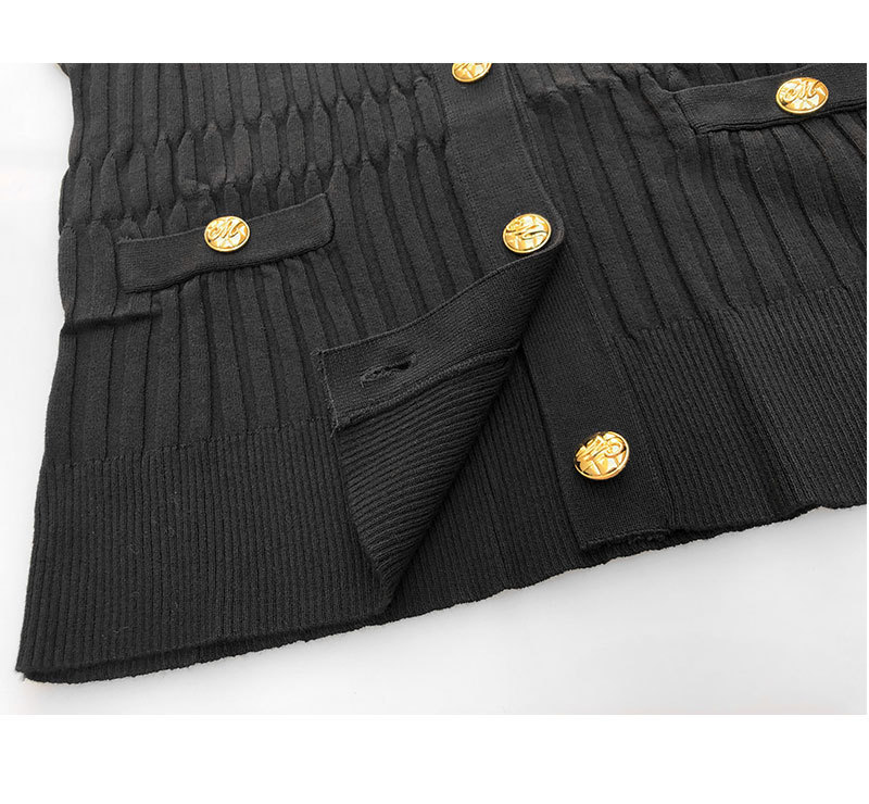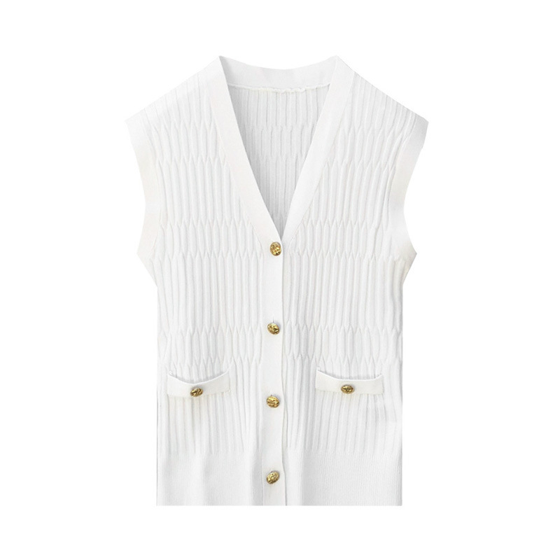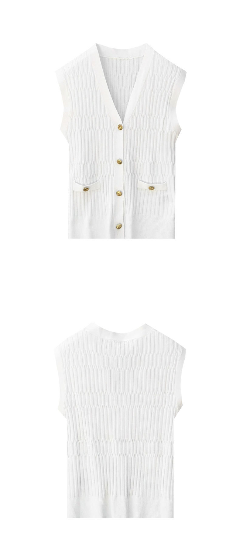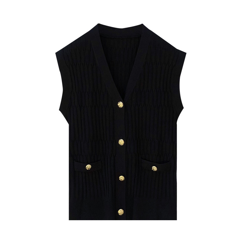 绿色 V领小香风修身无袖错落肌理金扣针织背心马甲女 MBB2SWT009