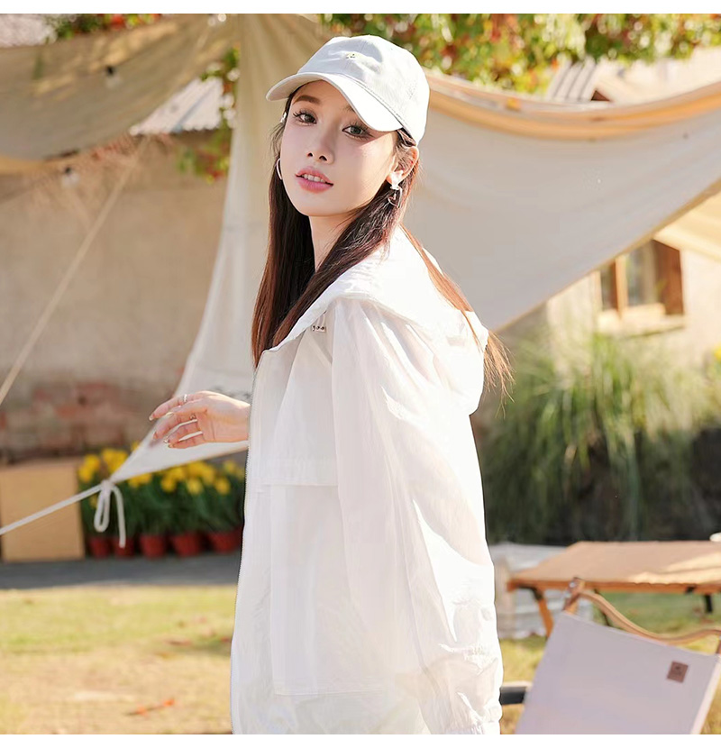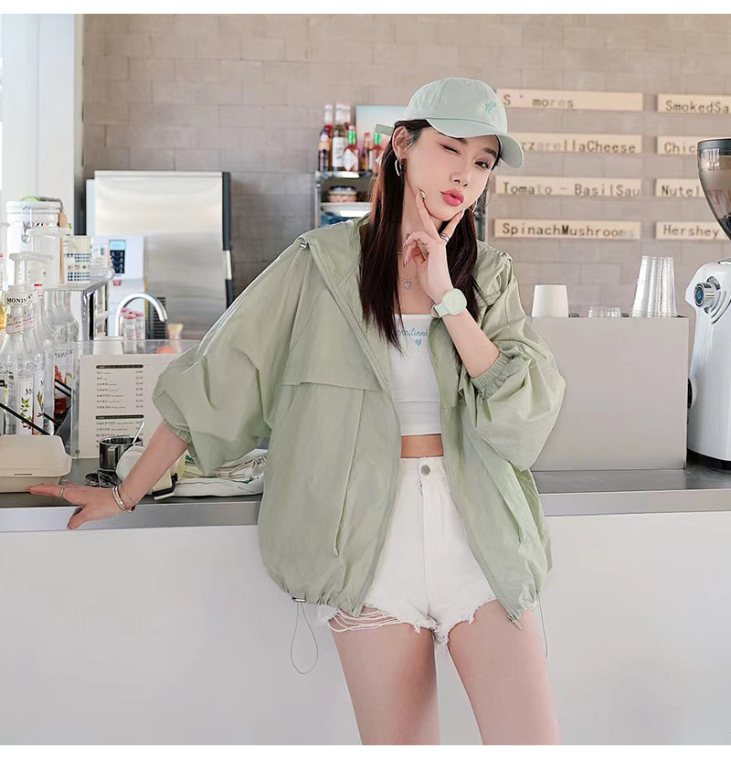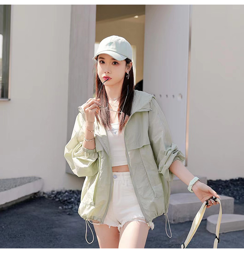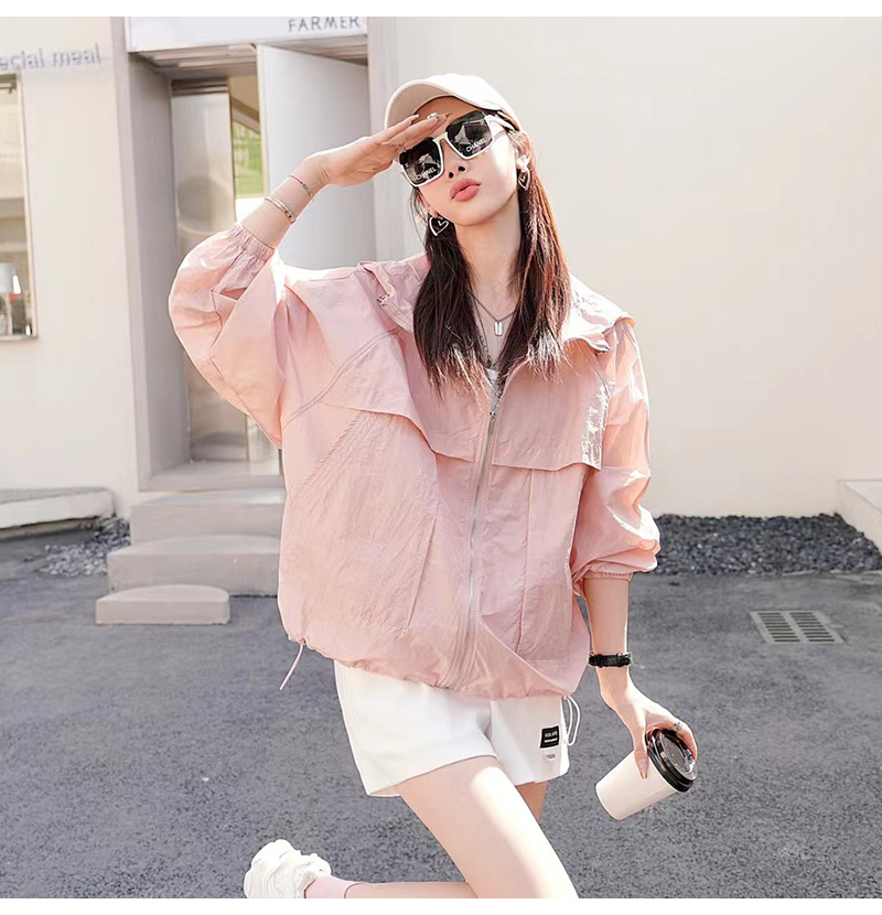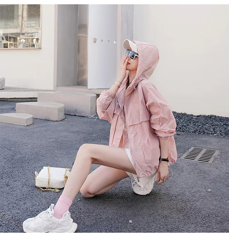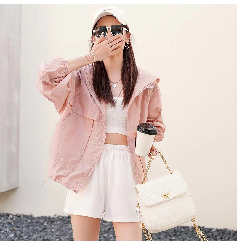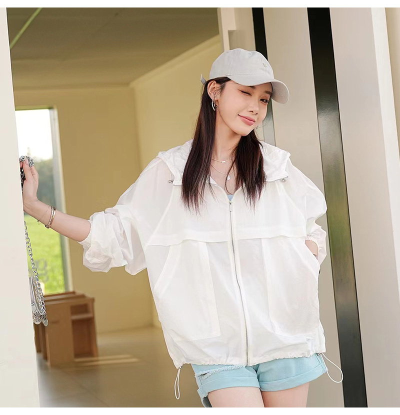 寬鬆舒適防曬衣女短款輕薄透氣夏天外套防曬衫寬鬆連帽遮陽防曬服