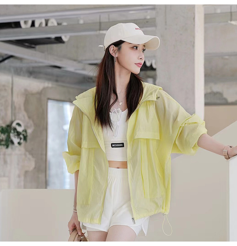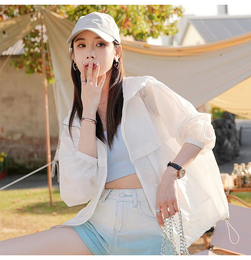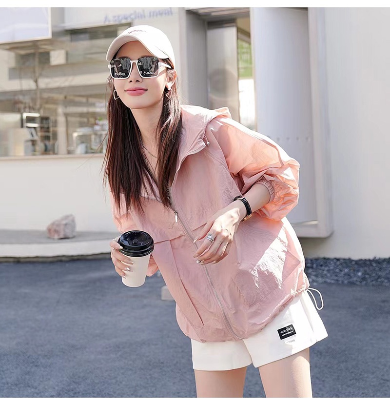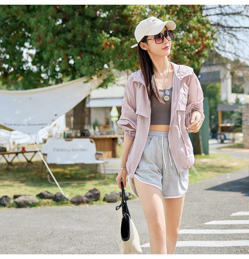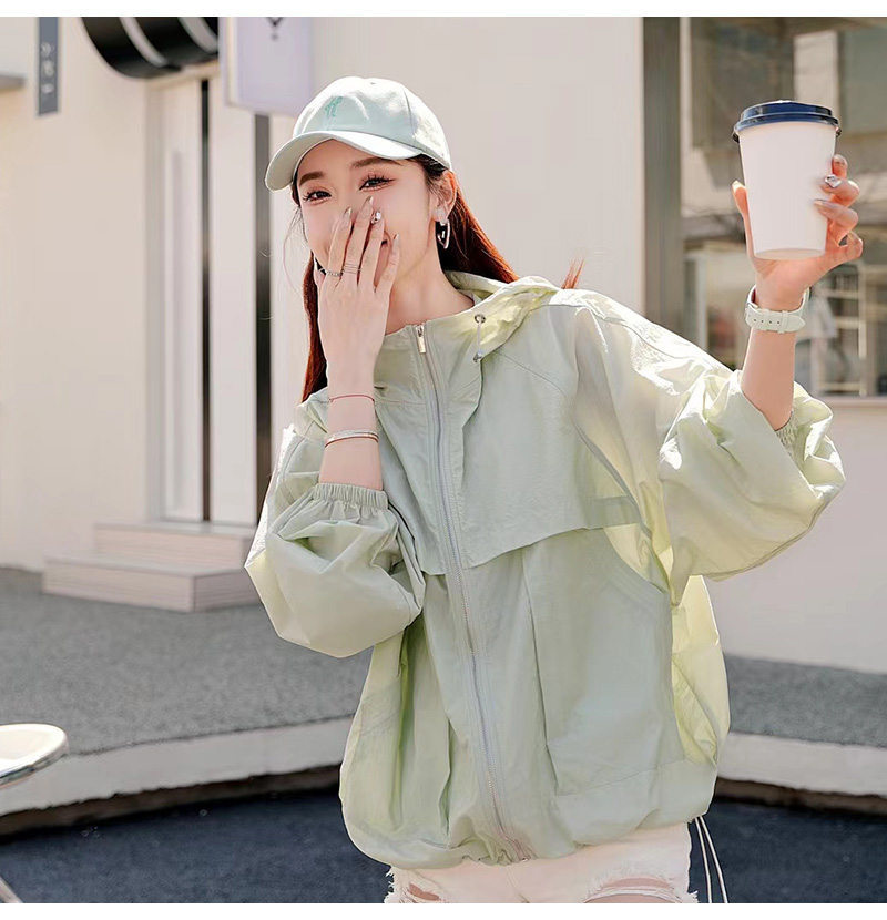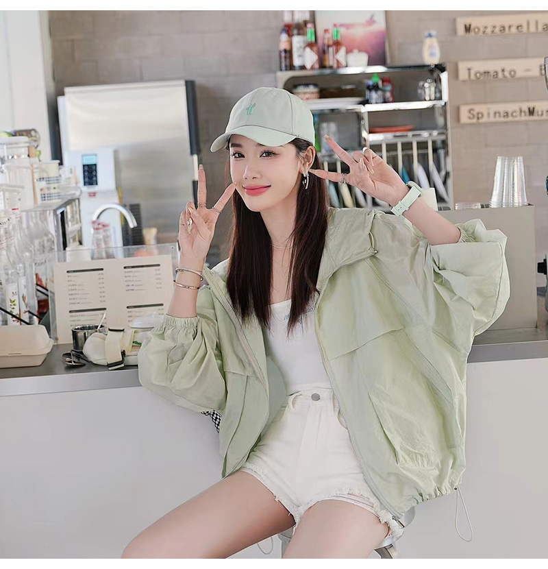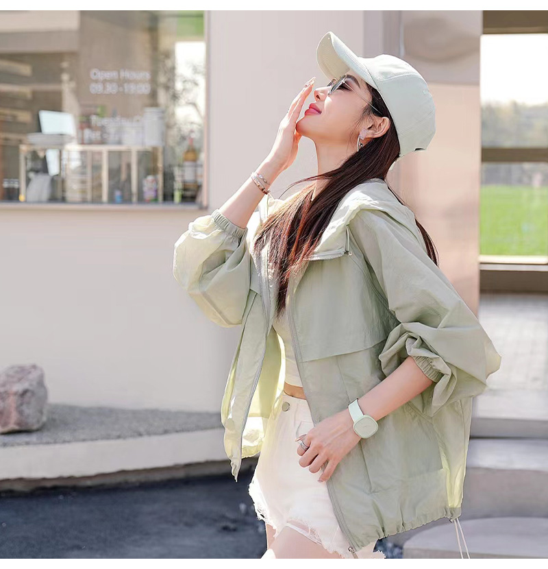 寬鬆舒適防曬衣女短款輕薄透氣夏天外套防曬衫寬鬆連帽遮陽防曬服