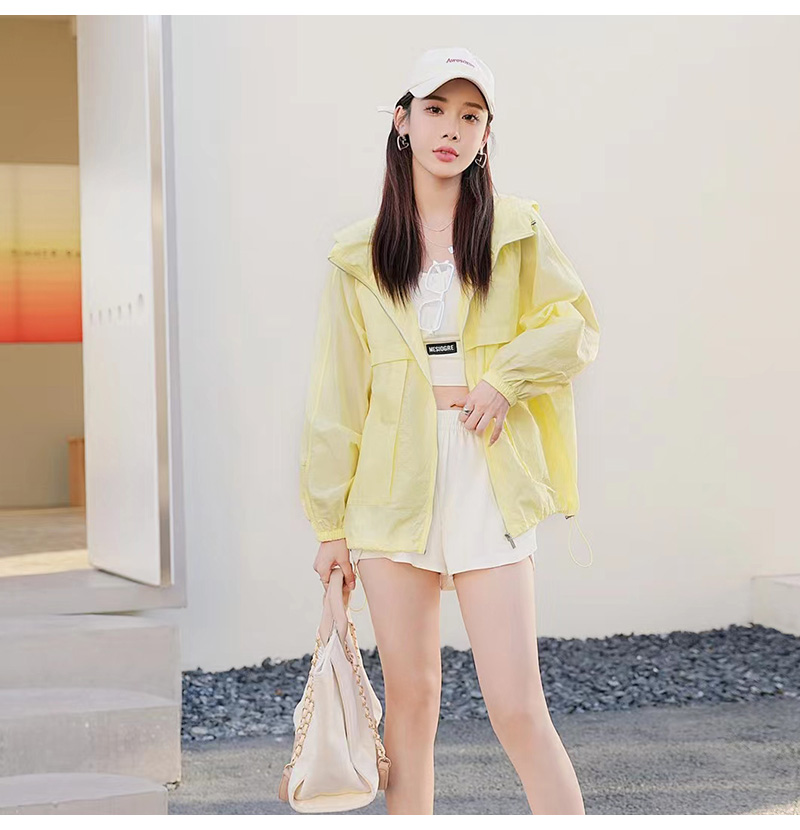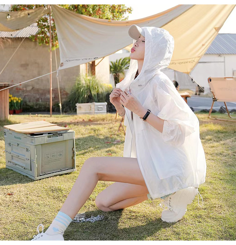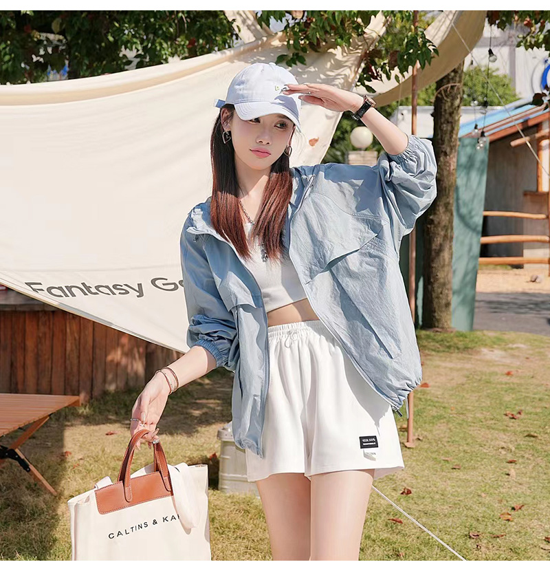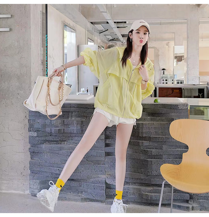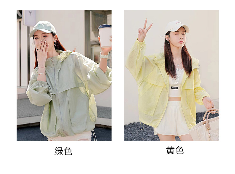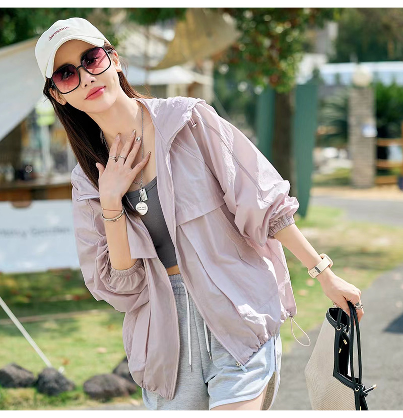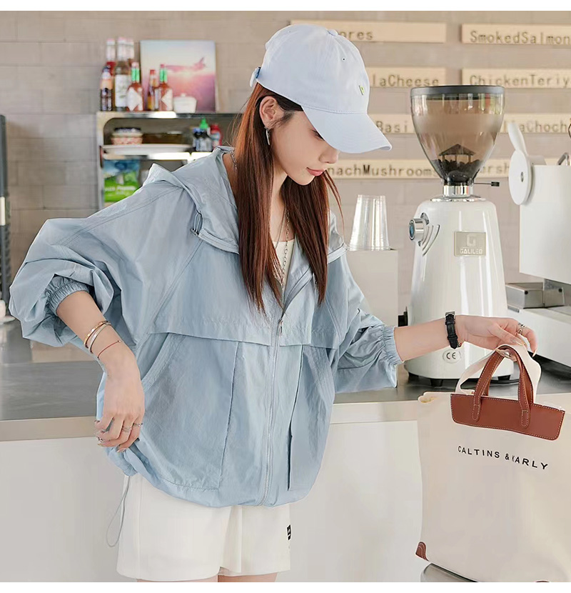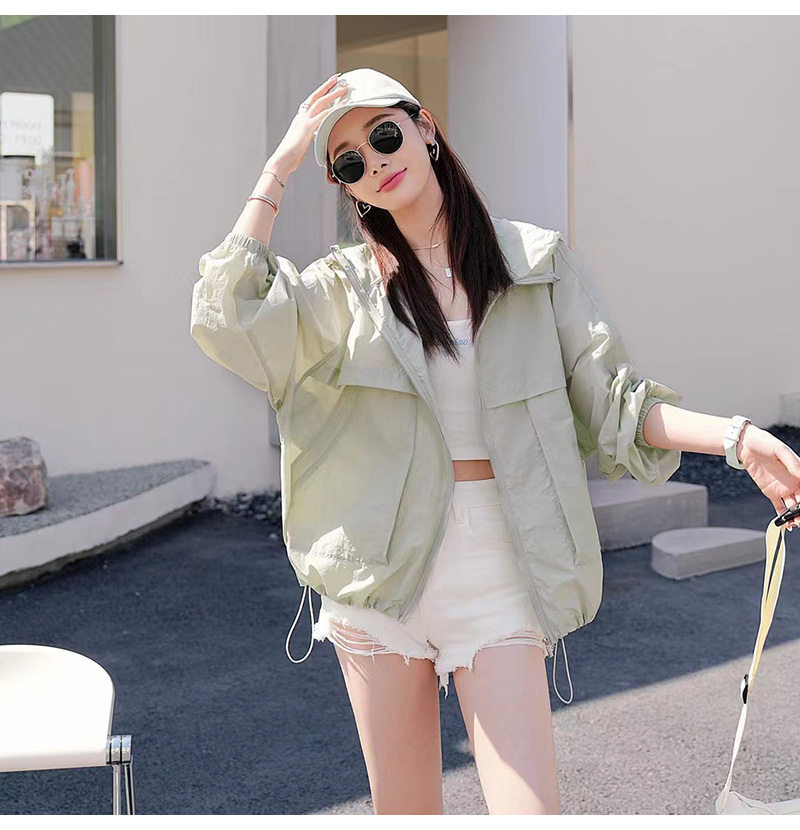 寬鬆舒適防曬衣女短款輕薄透氣夏天外套防曬衫寬鬆連帽遮陽防曬服