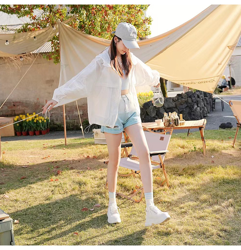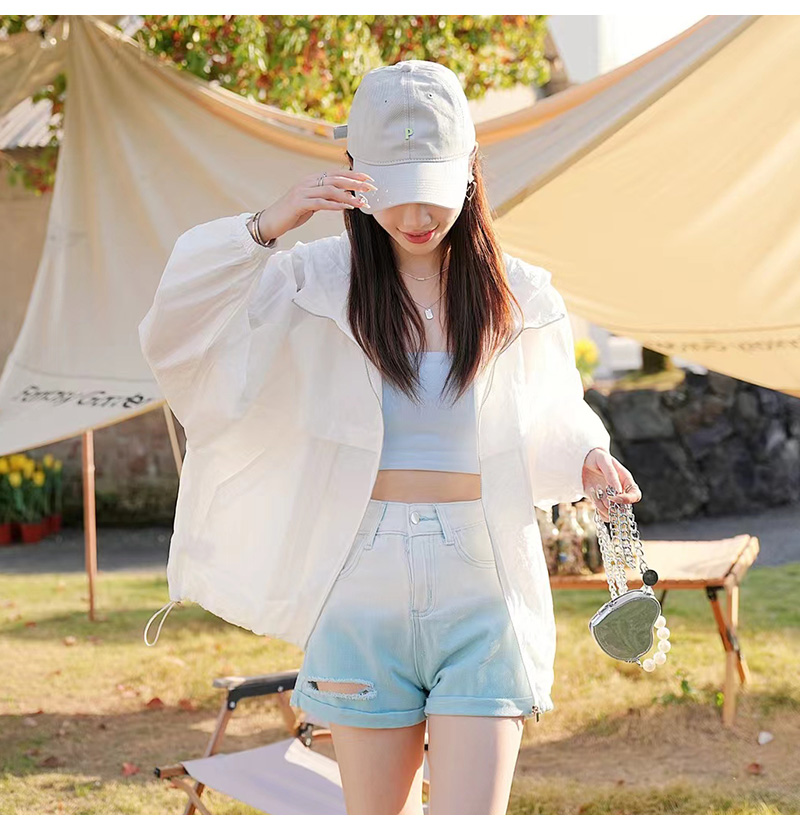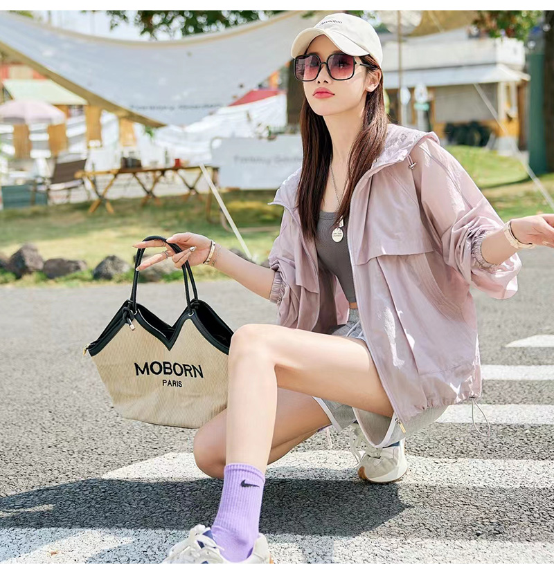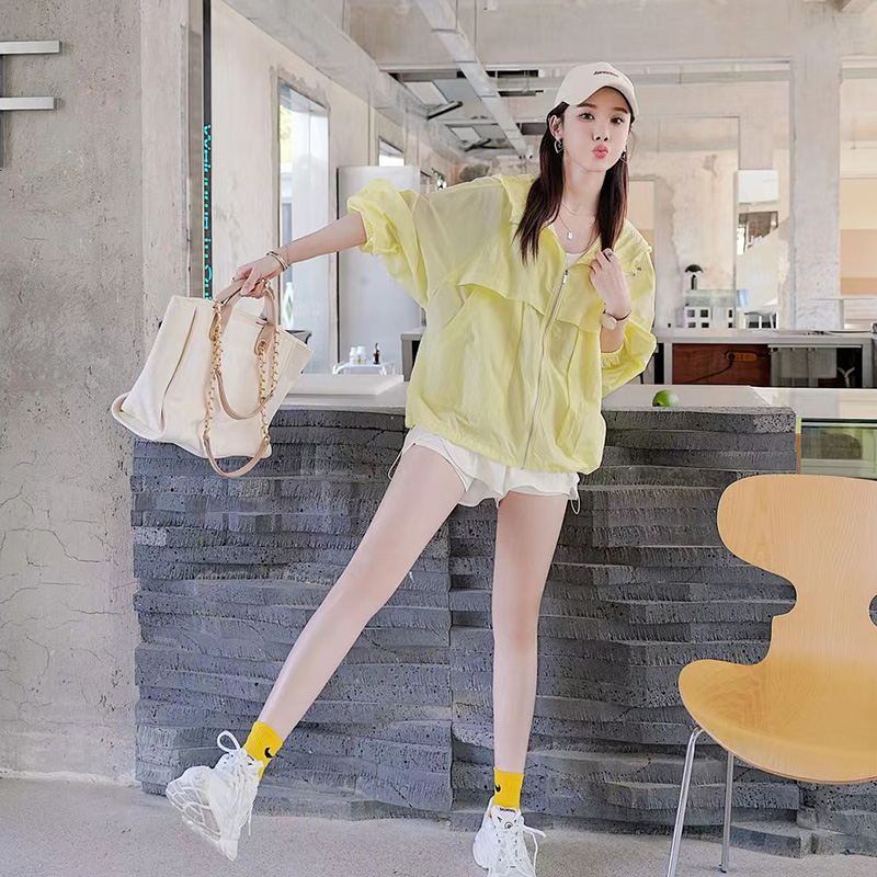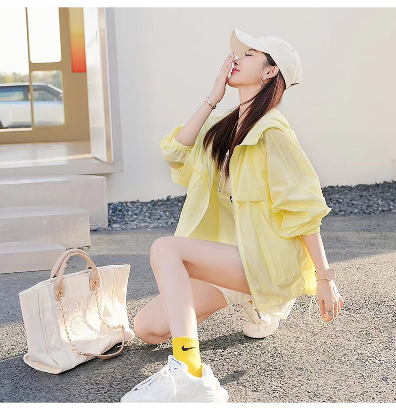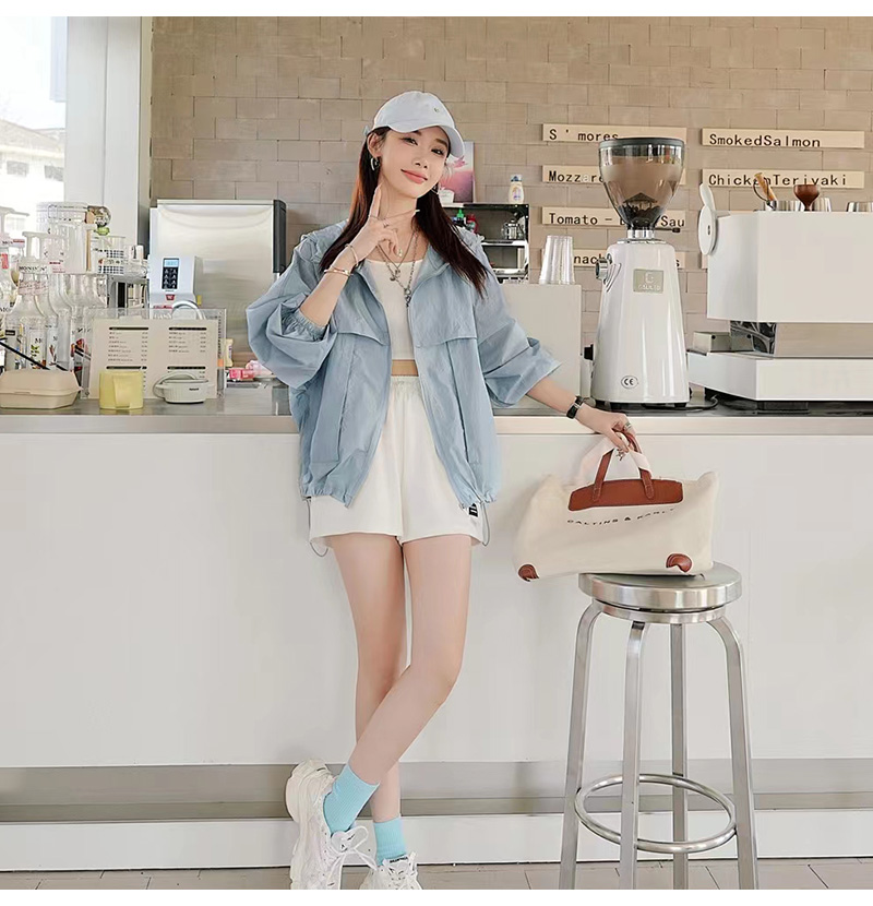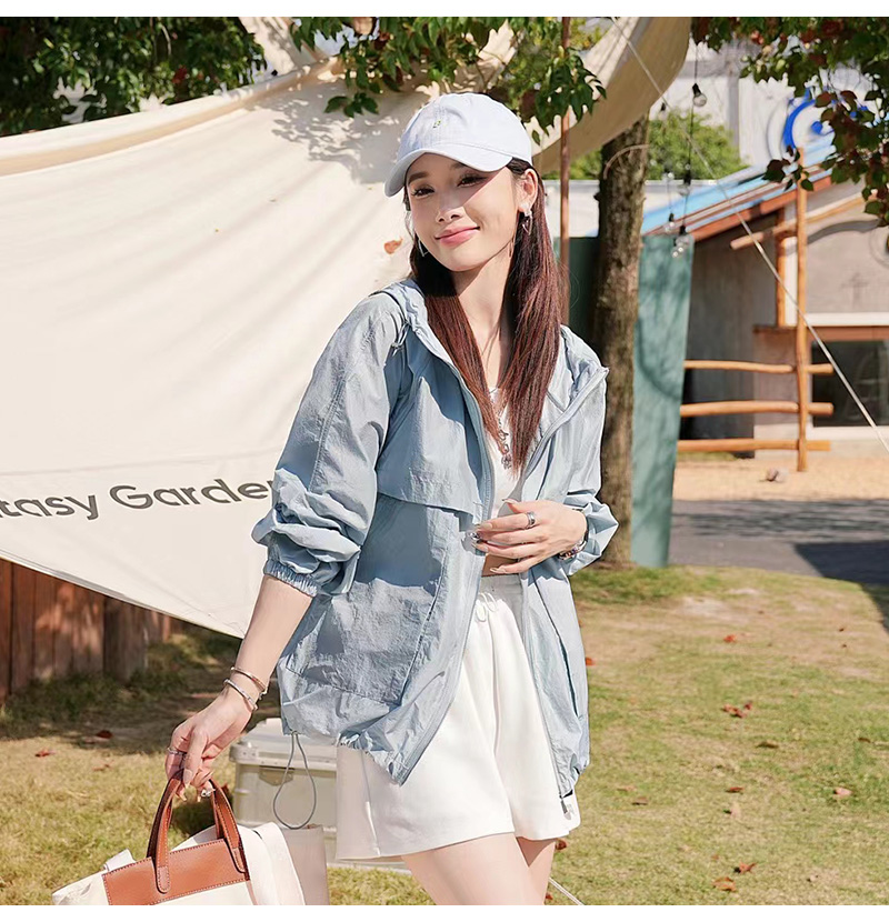 寬鬆舒適防曬衣女短款輕薄透氣夏天外套防曬衫寬鬆連帽遮陽防曬服