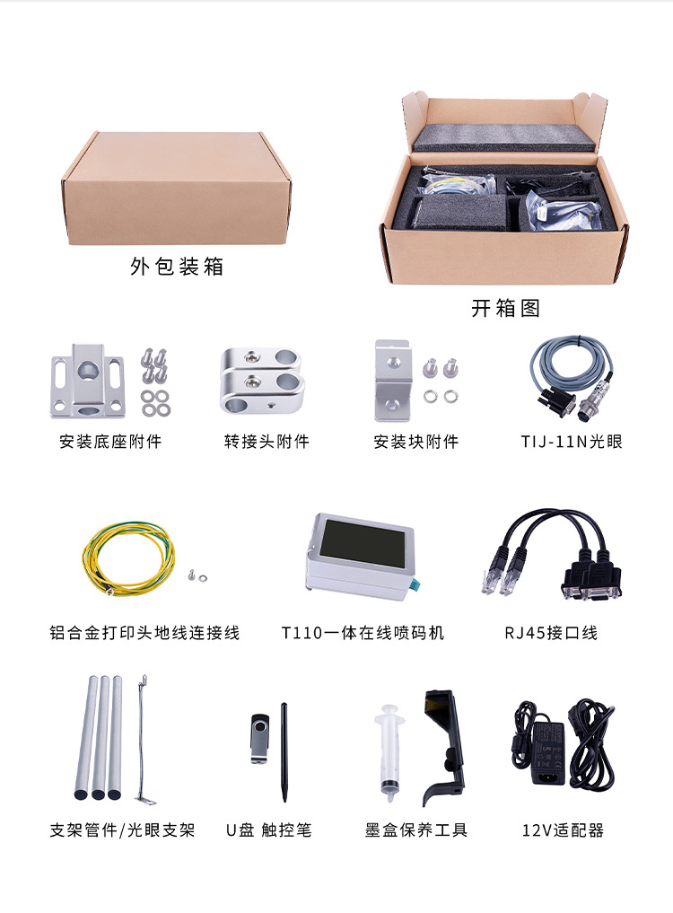 规格 KD110-M喷码机+进口黑色快干墨盒,台湾红色快干墨盒,台湾蓝色快干墨盒,台湾黄色快干墨盒,台湾绿色快干墨盒,光电传感器,支架,传送带(1500*190*750mm),传送带(700*360*220mm),KD110-M喷码机