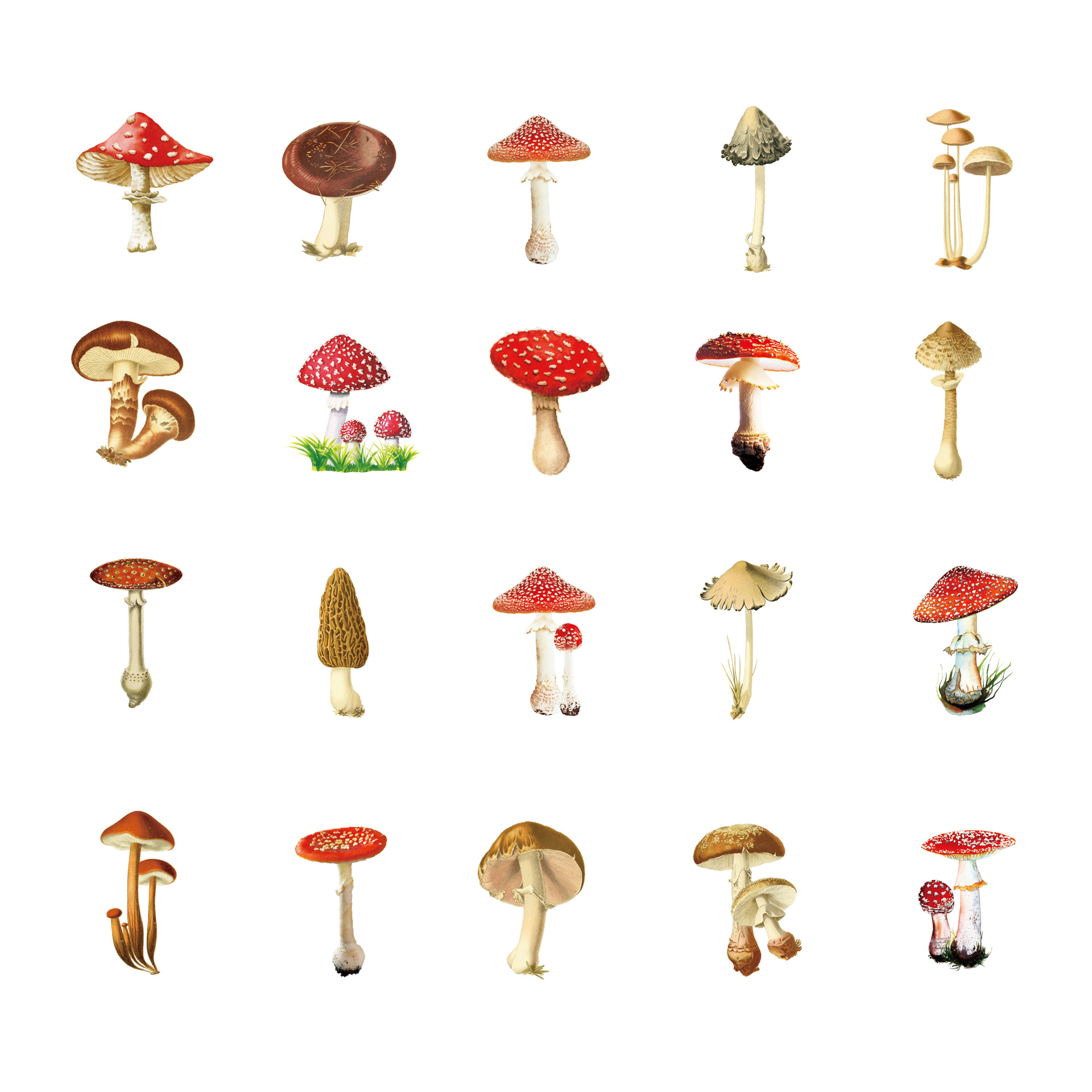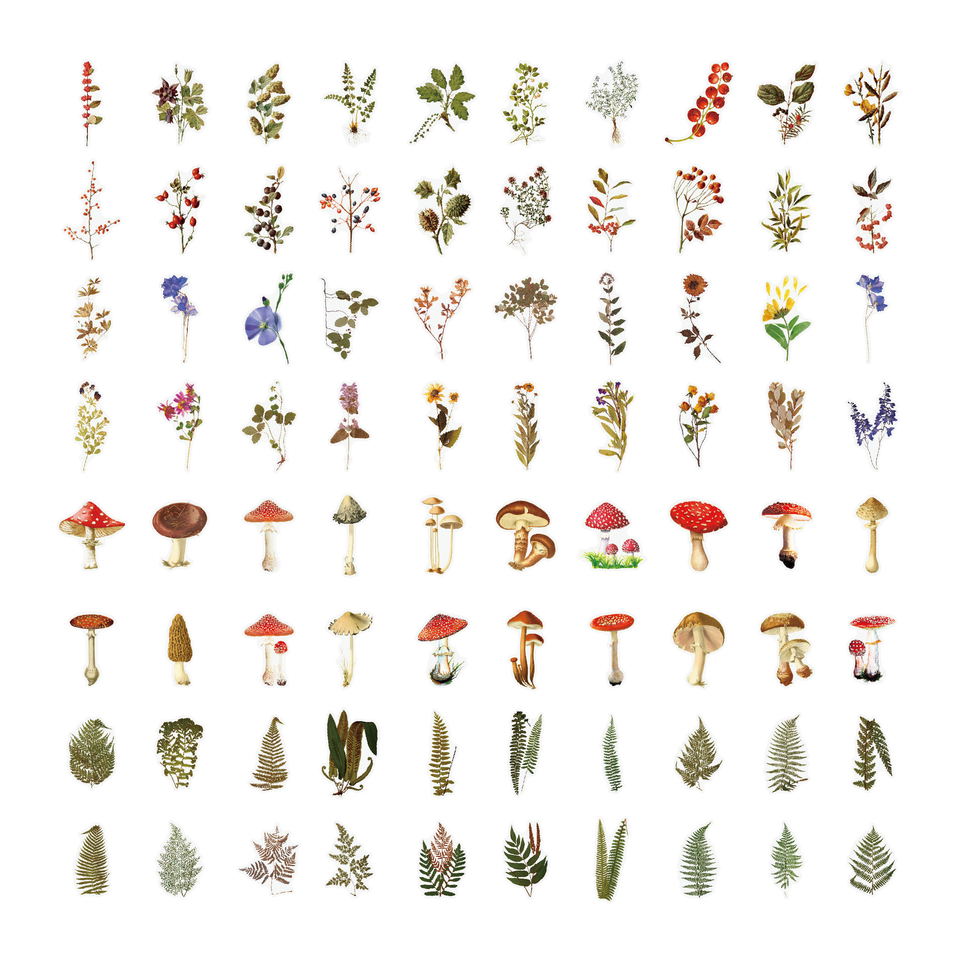 植物贴纸包 防水透明PET复古花卉自然丛书DIY手账素材蘑菇贴纸