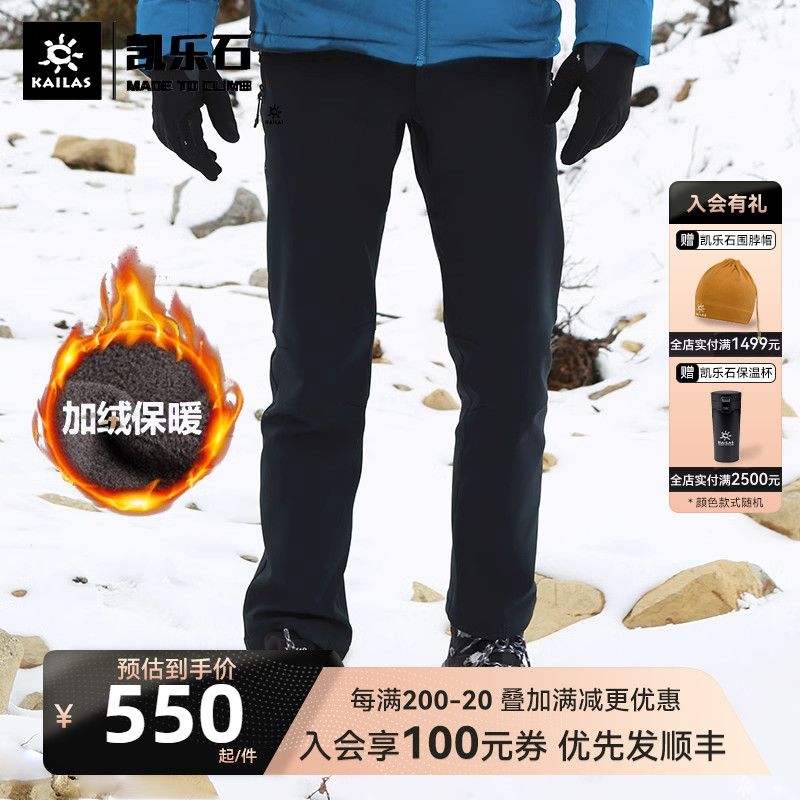 凱樂石戶外衝鋒褲男秋冬防水防風軟殼褲加絨加厚保暖登山長褲傳奇