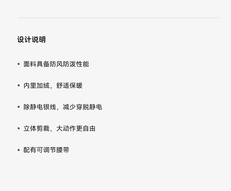 主要功能 防風 透氣 保暖