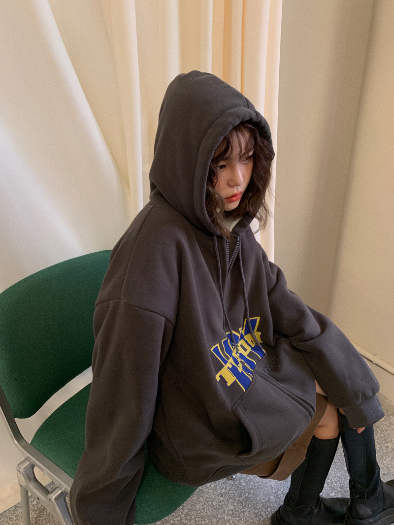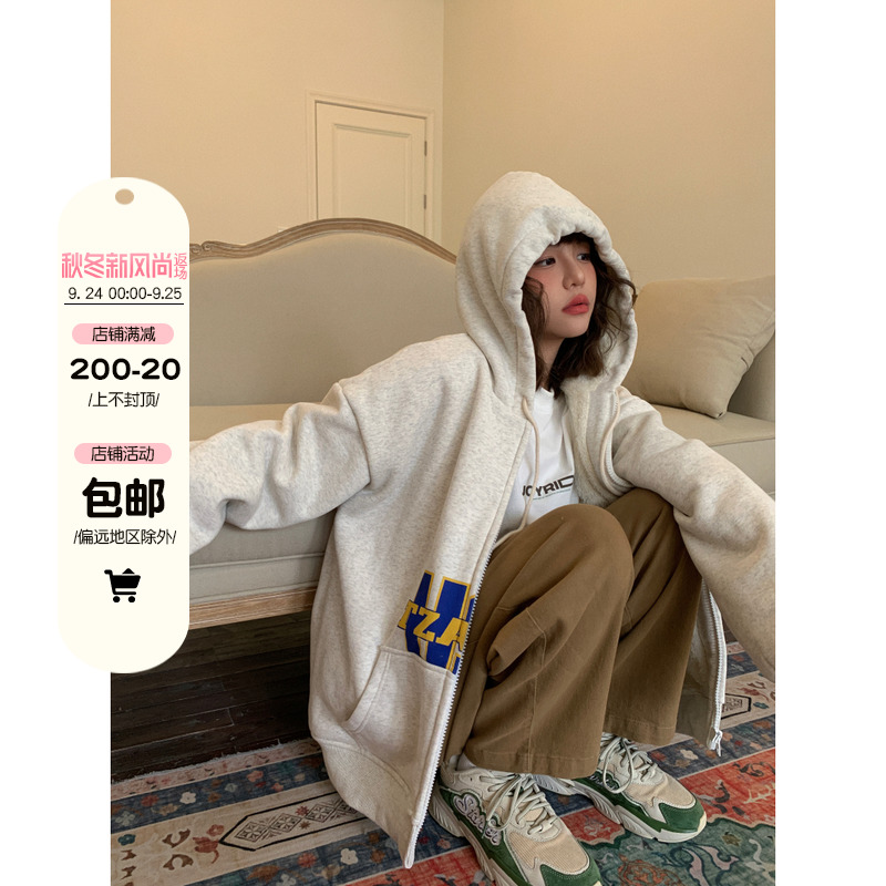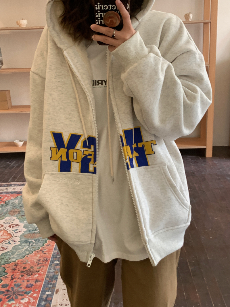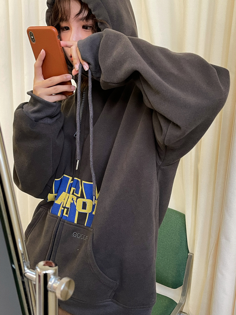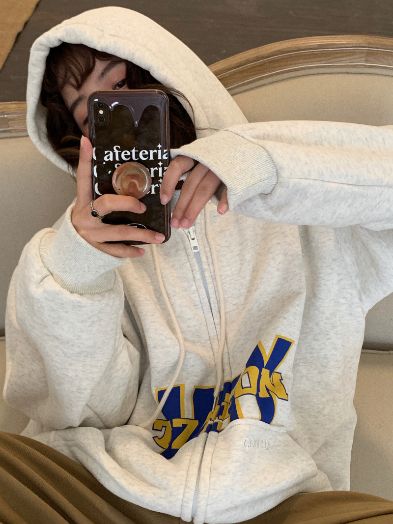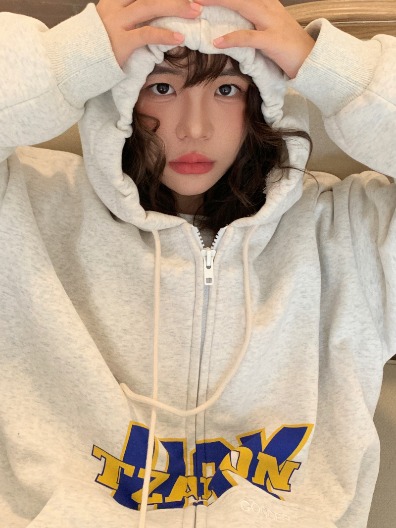 滷滷lulu 衛衣女加絨加厚2023年新款冬寬鬆韓版連帽開衫字母外套