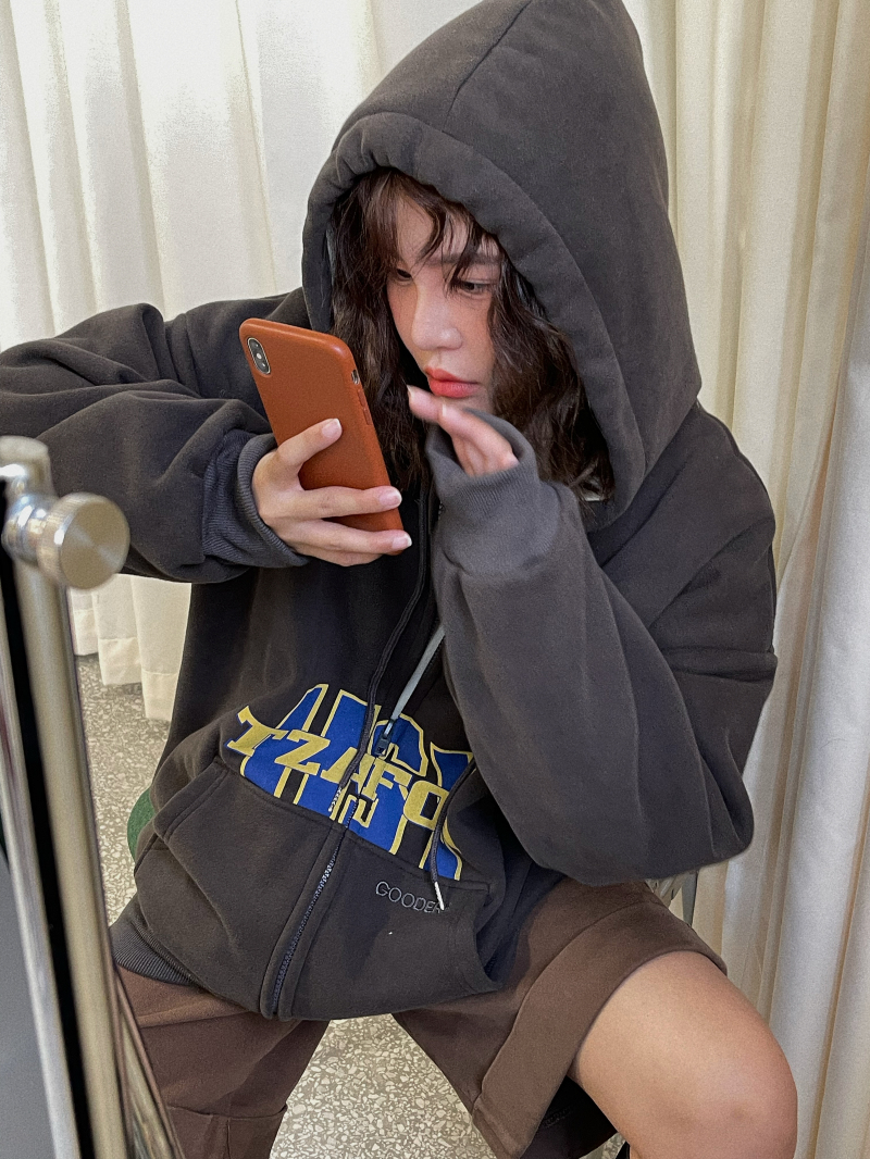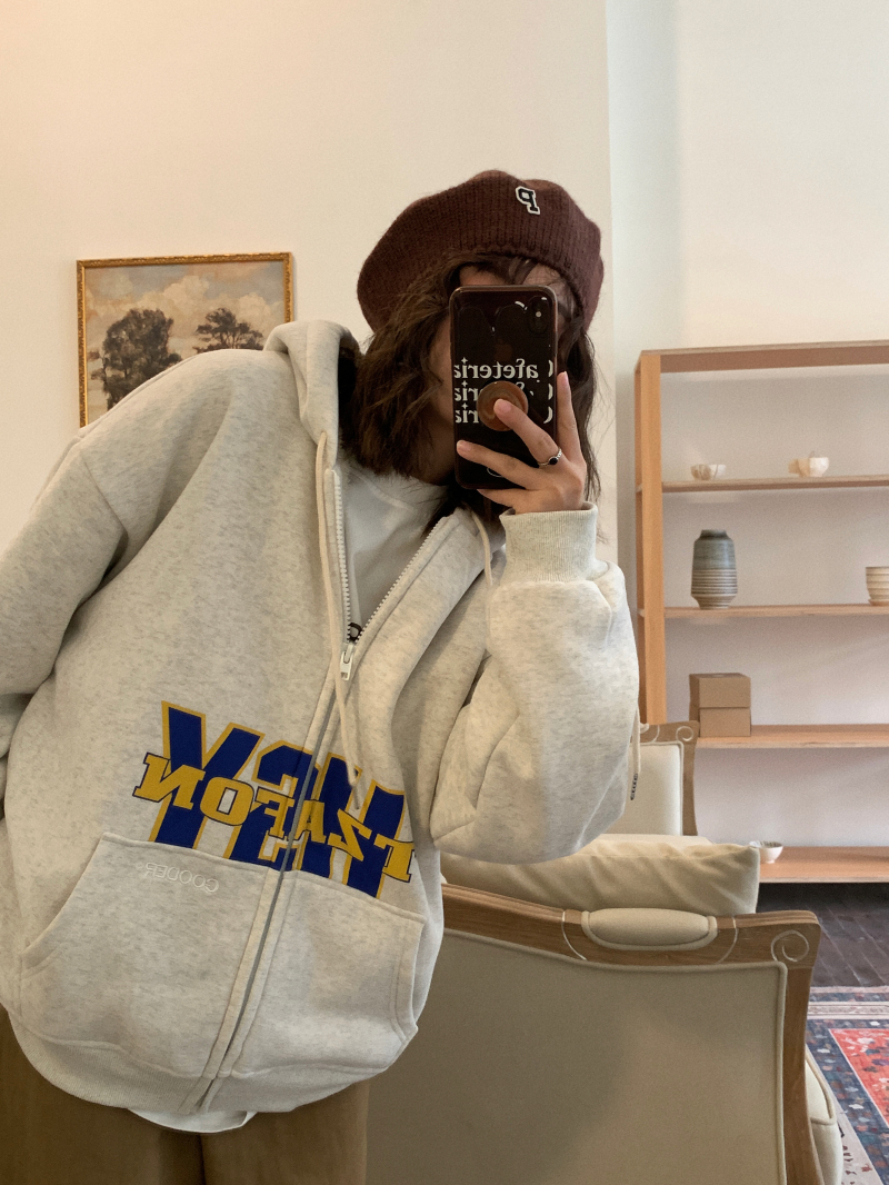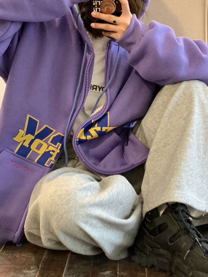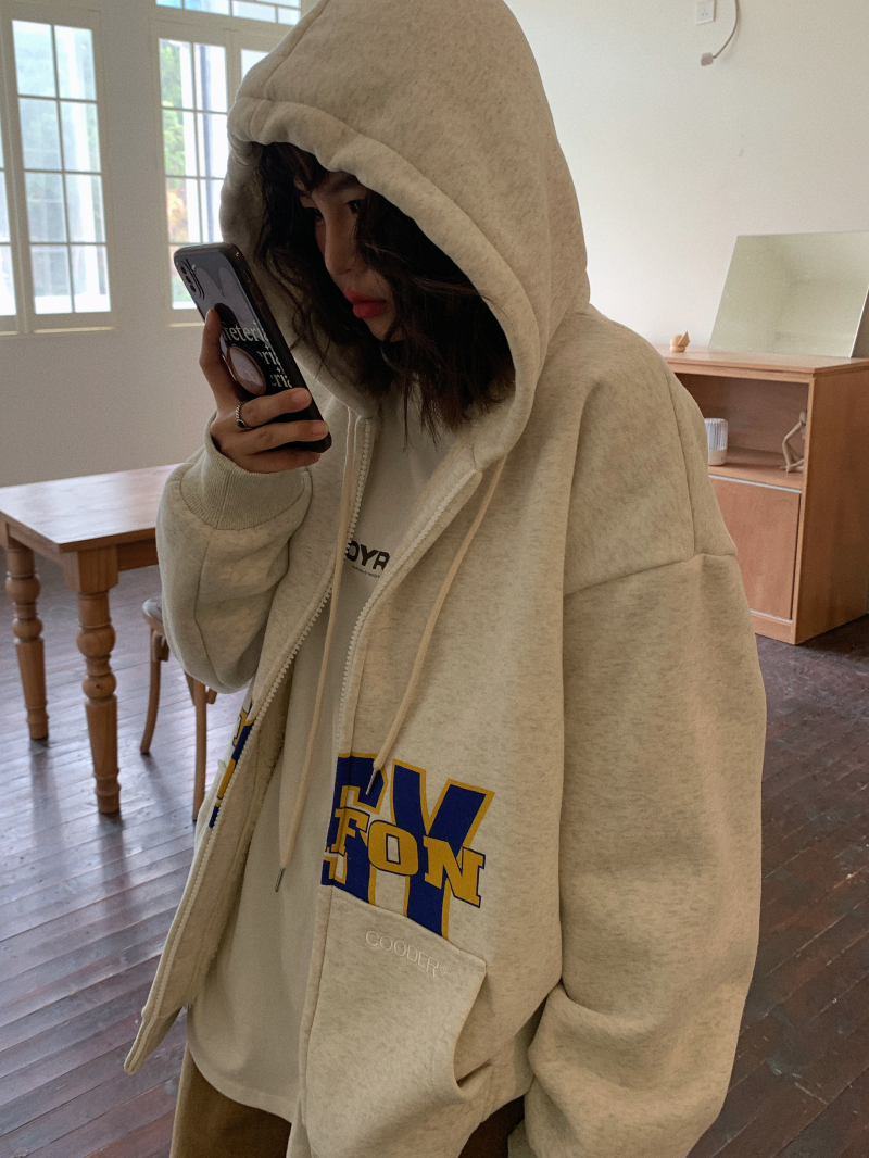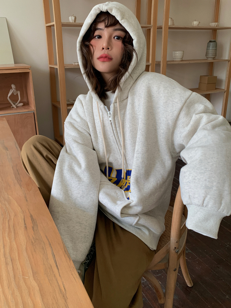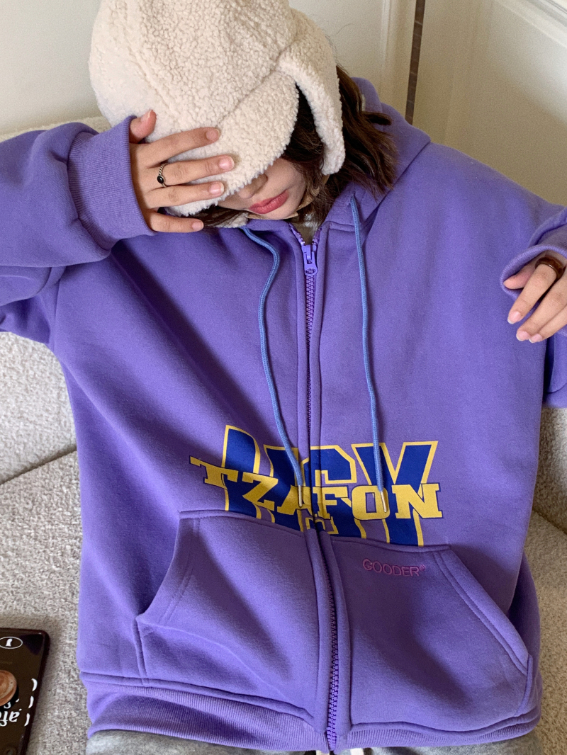 滷滷lulu 衛衣女加絨加厚2023年新款冬寬鬆韓版連帽開衫字母外套
