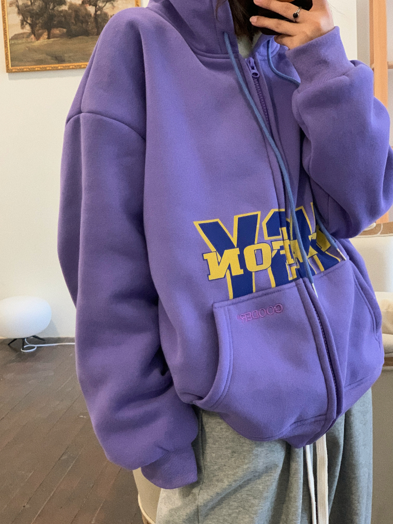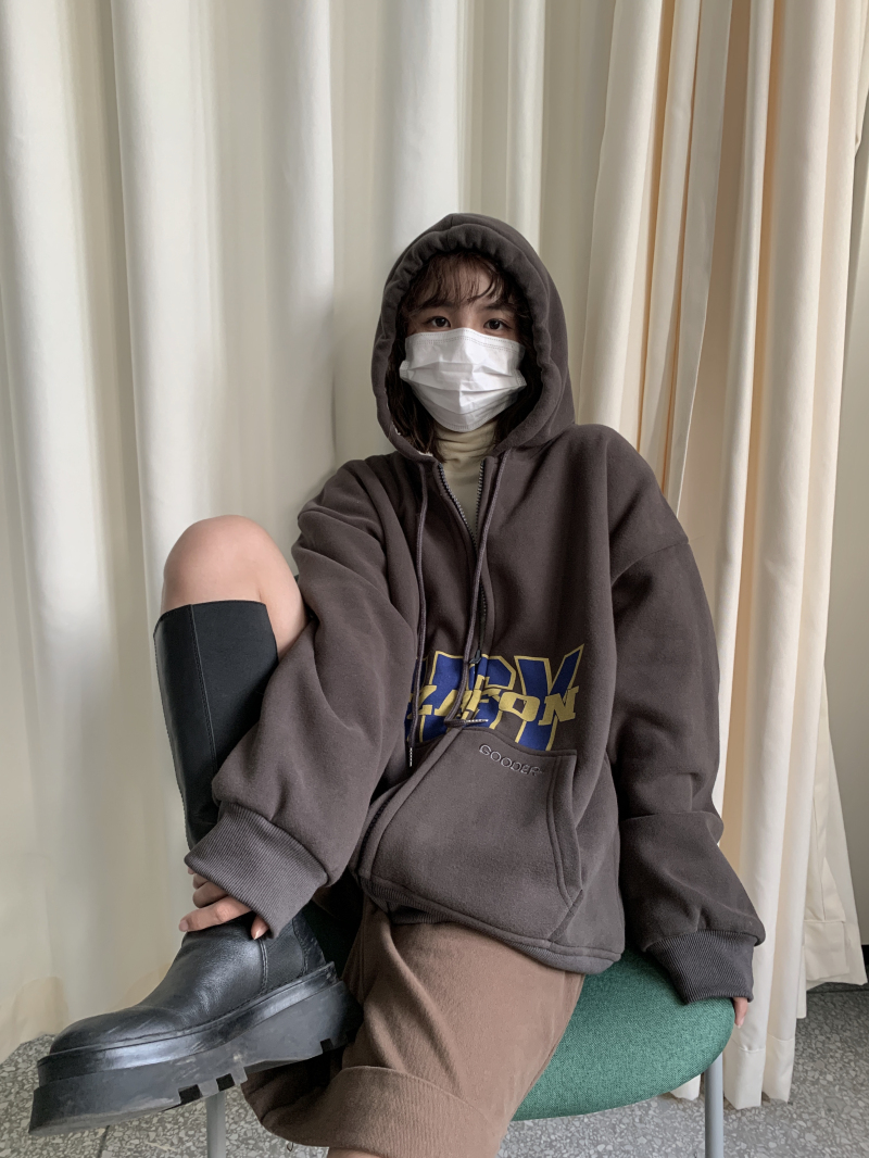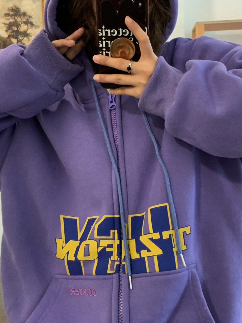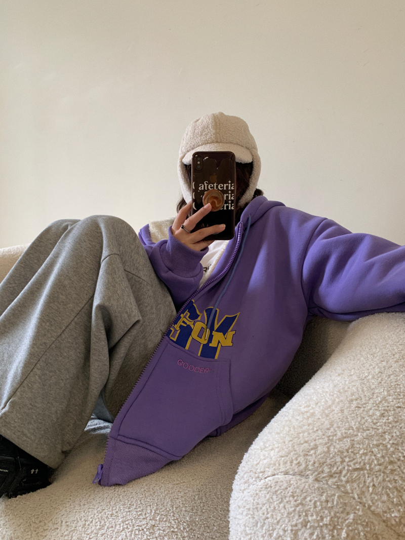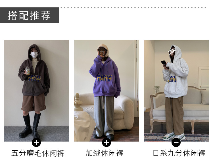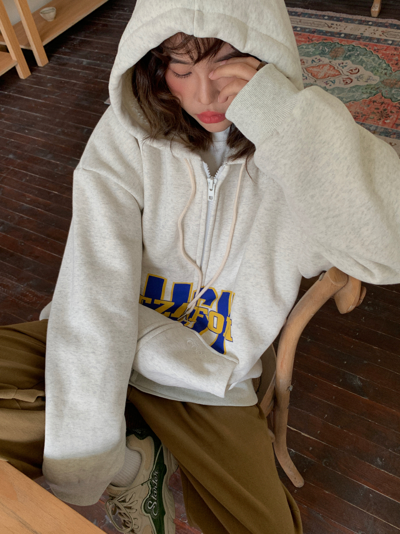 滷滷lulu 衛衣女加絨加厚2023年新款冬寬鬆韓版連帽開衫字母外套