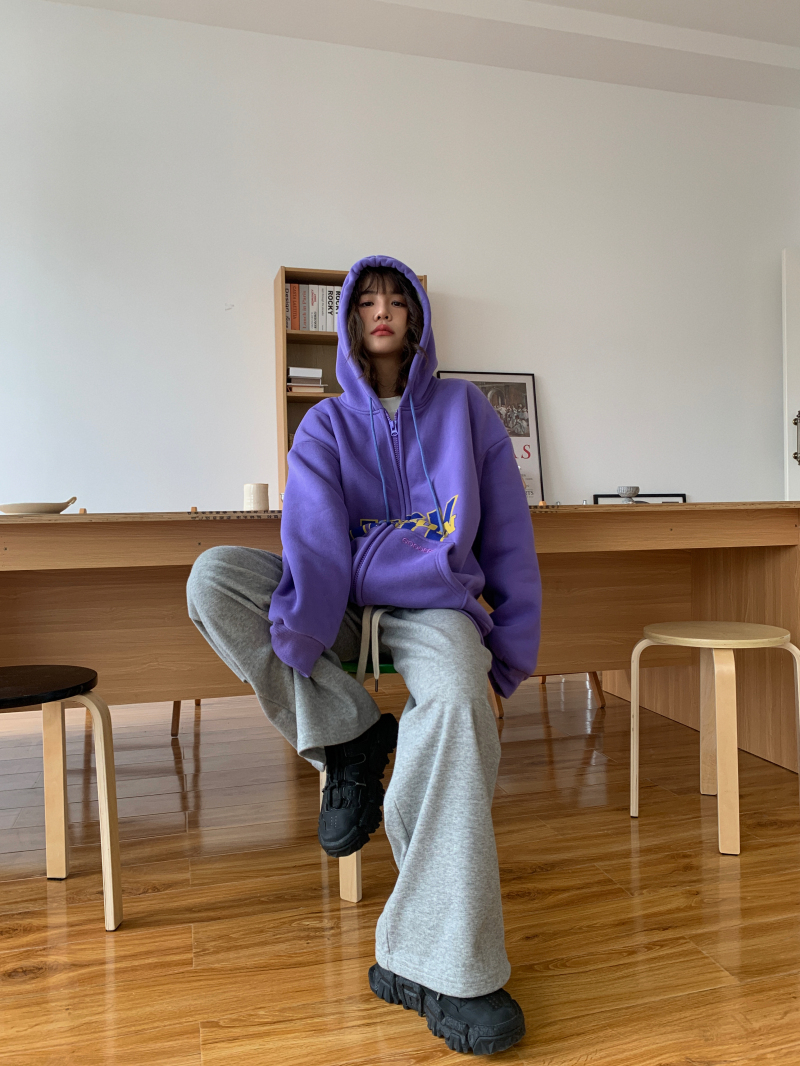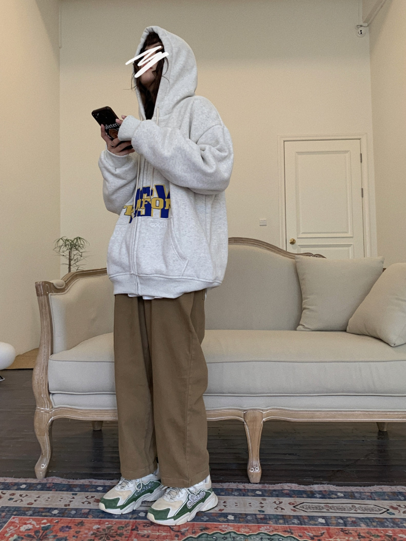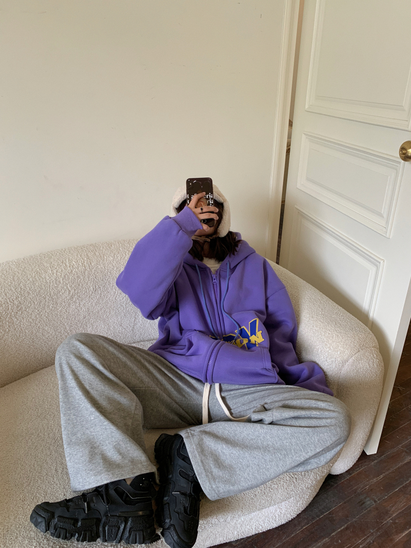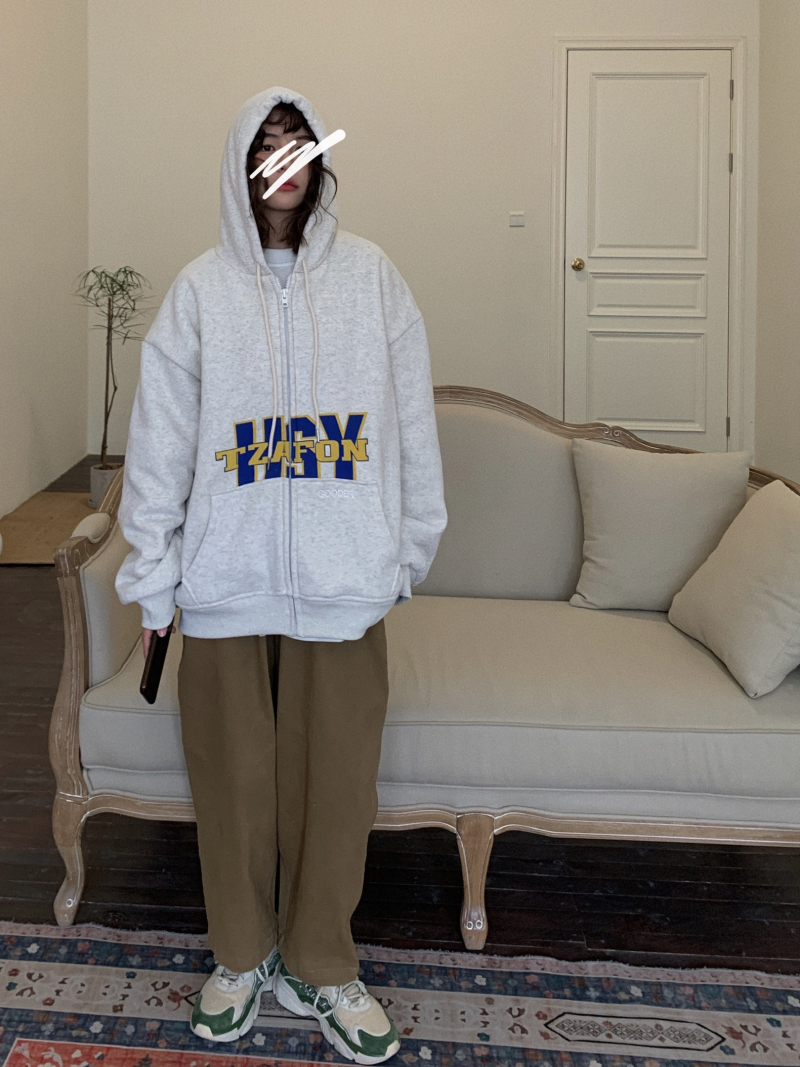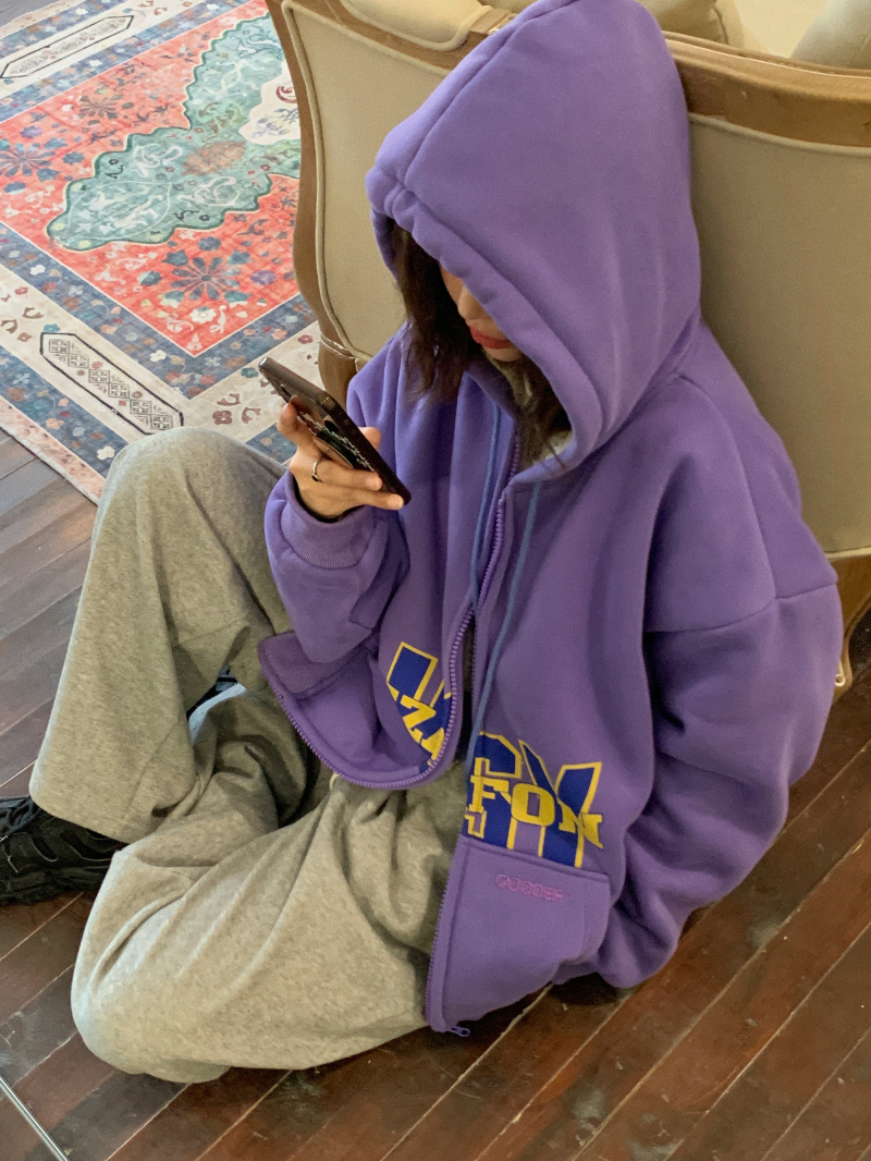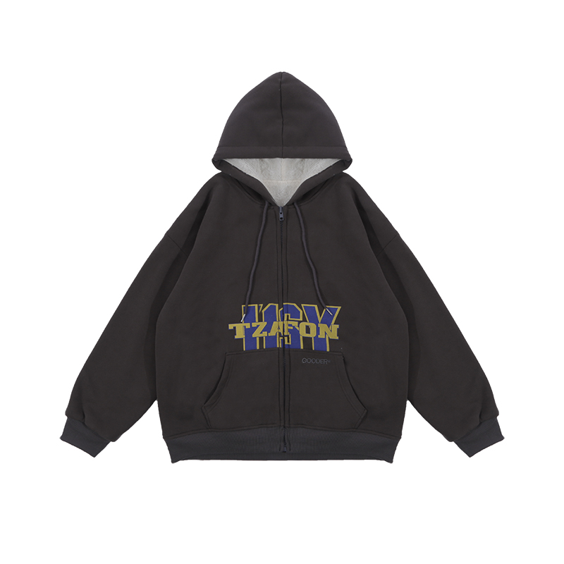 滷滷lulu 衛衣女加絨加厚2023年新款冬寬鬆韓版連帽開衫字母外套