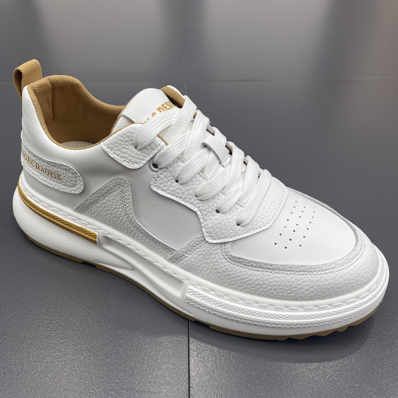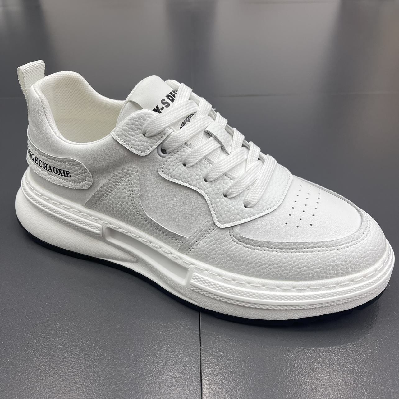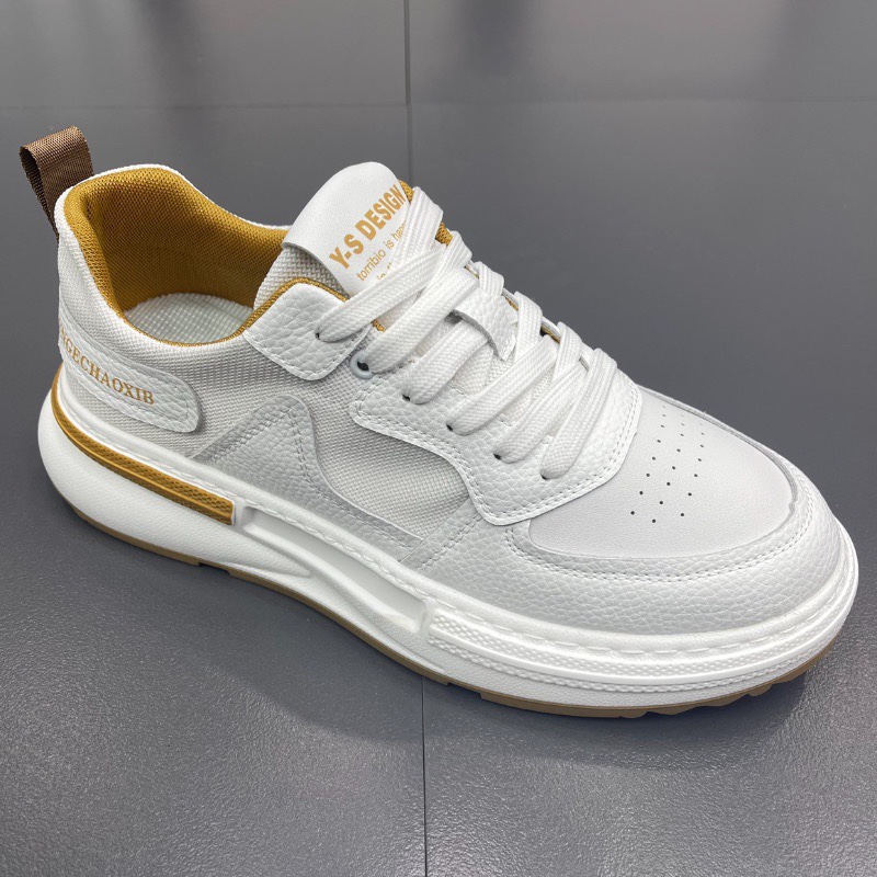 外貿韓版簡約時尚休閒小白鞋男鞋2023夏季低幫百搭真皮透氣運動鞋