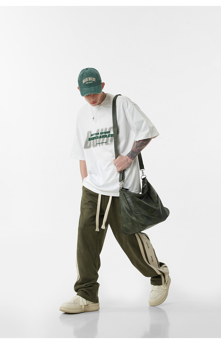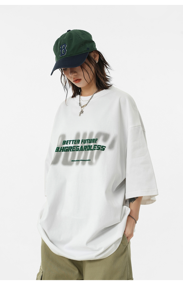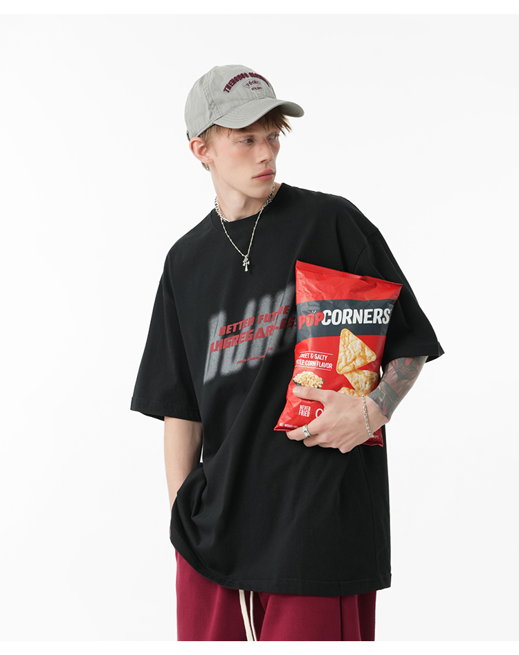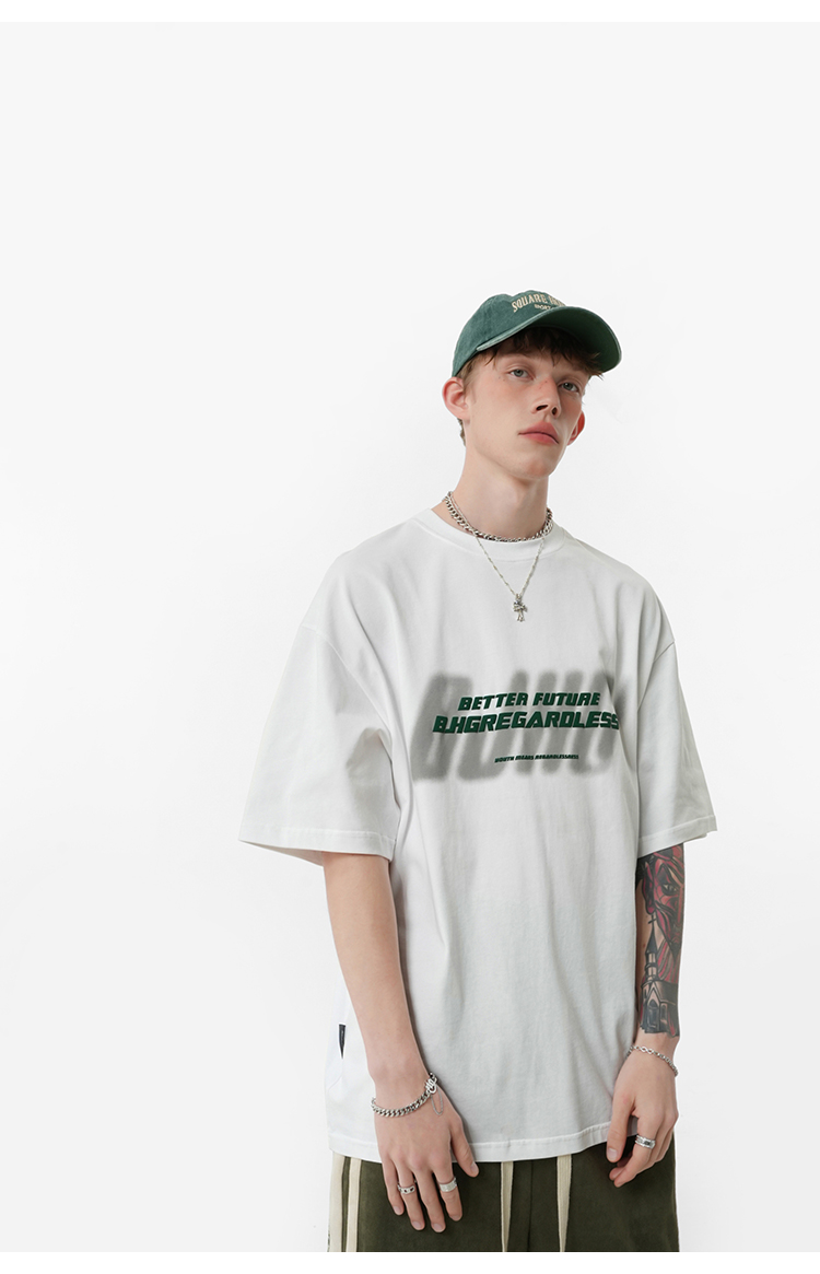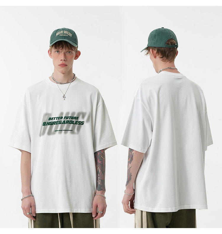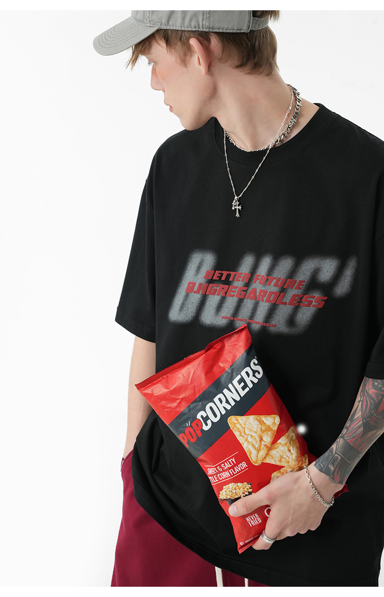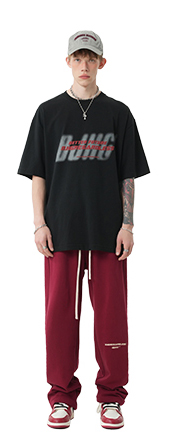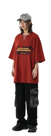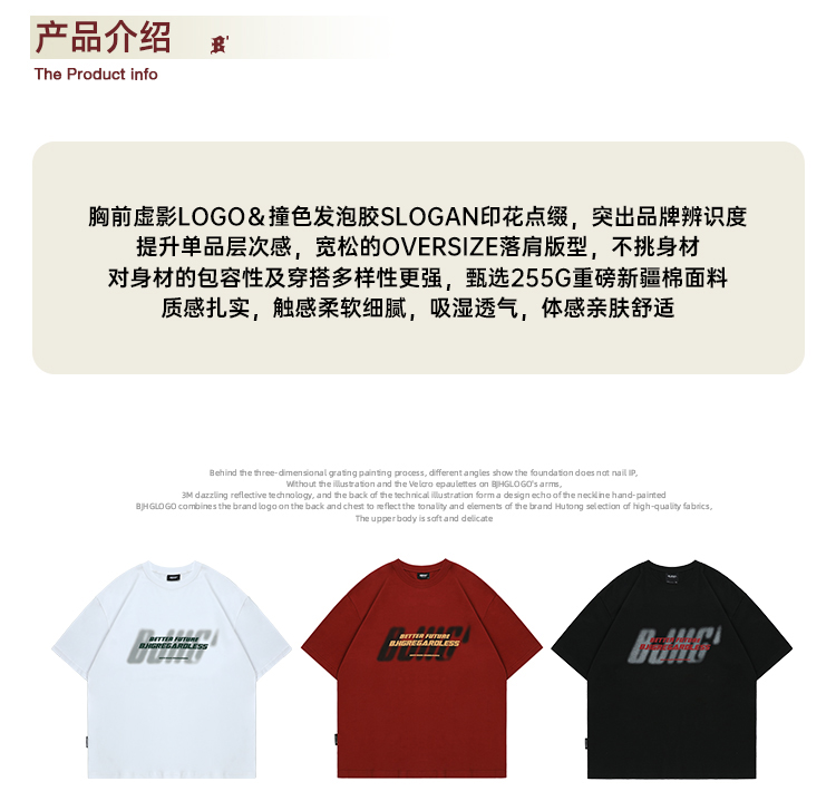 BJHG不計後果 夏美式高街T恤男潮重磅復古酒紅色短袖寬鬆純棉半袖