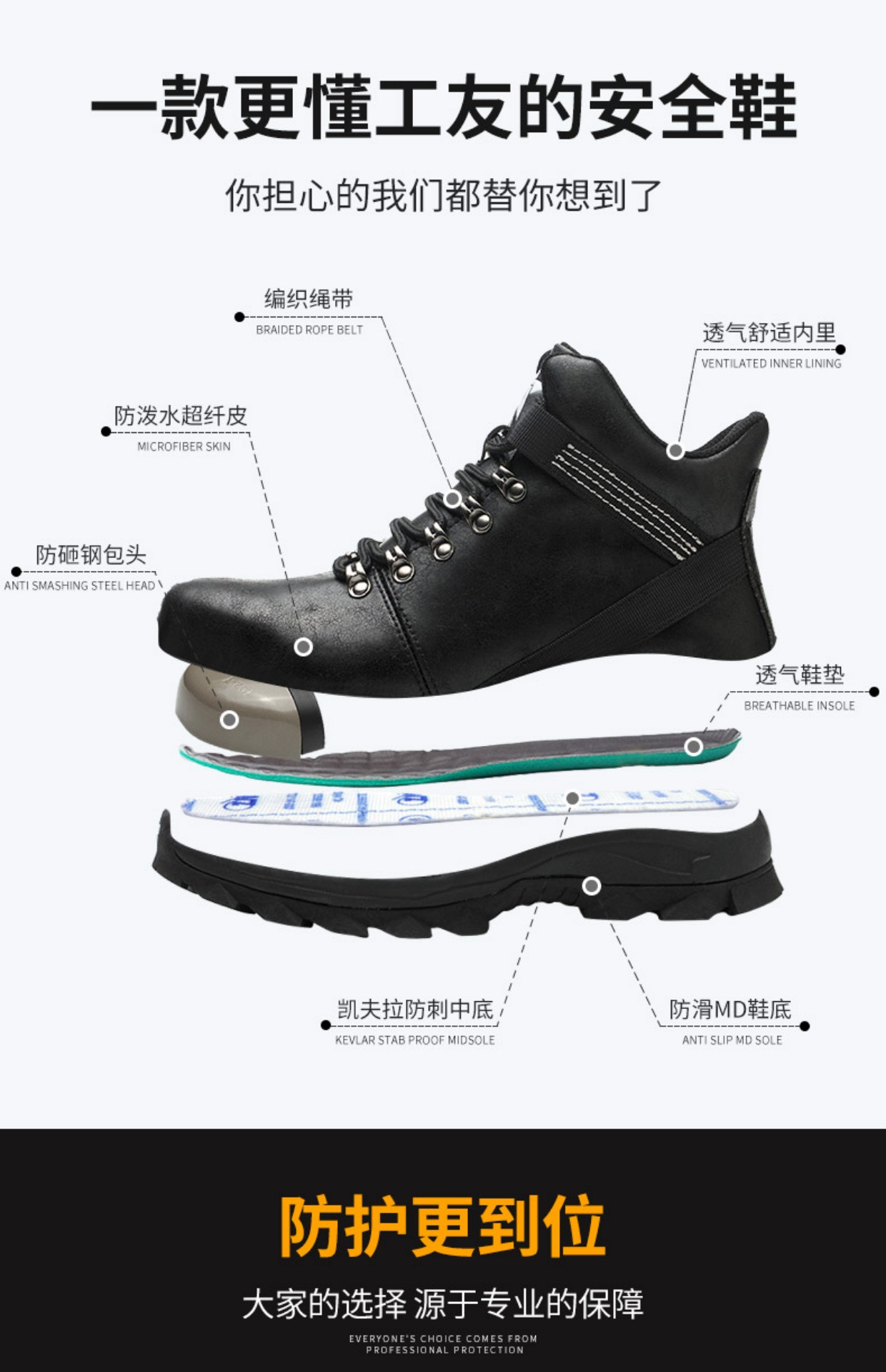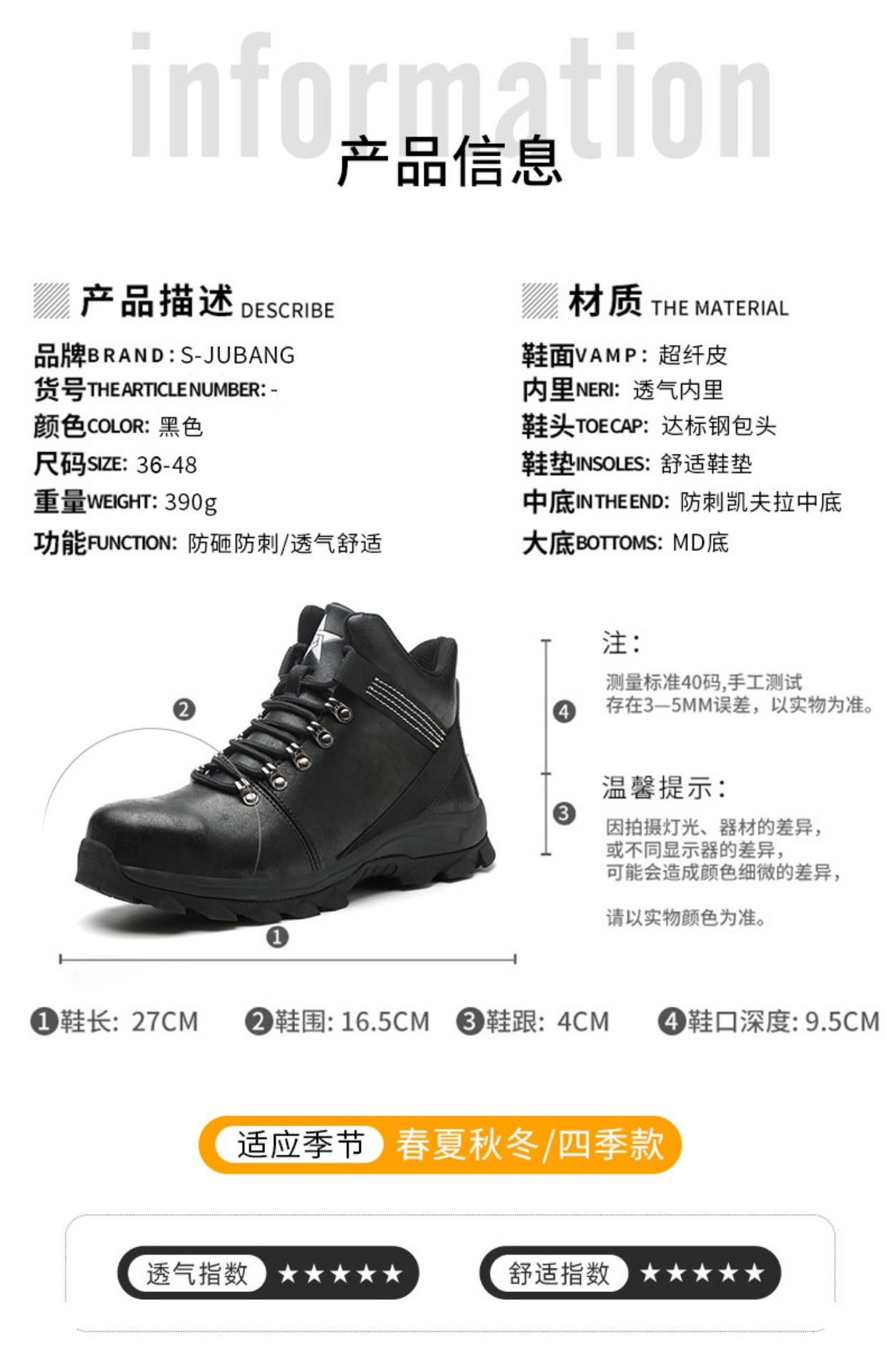 德國進口高級勞保鞋男四季防砸防刺穿鋼頭3537工地耐磨三防馬丁靴
