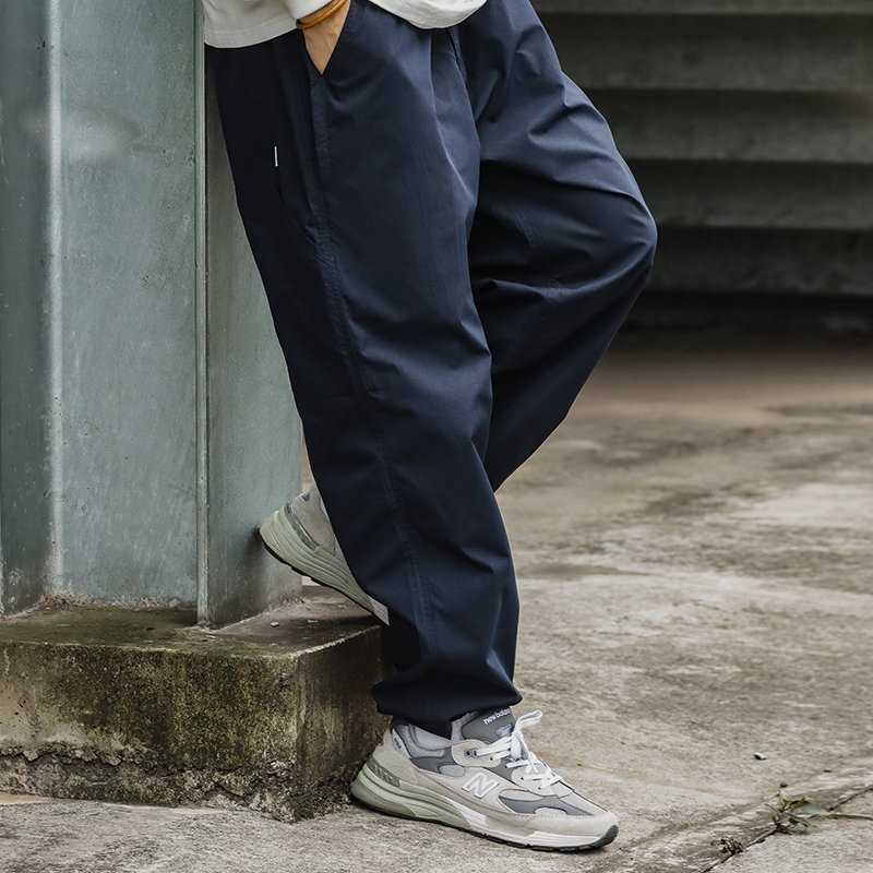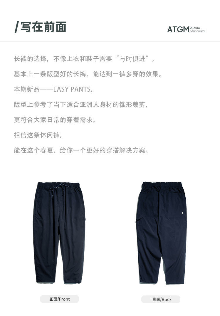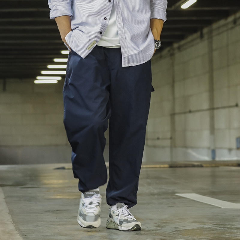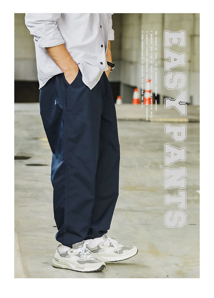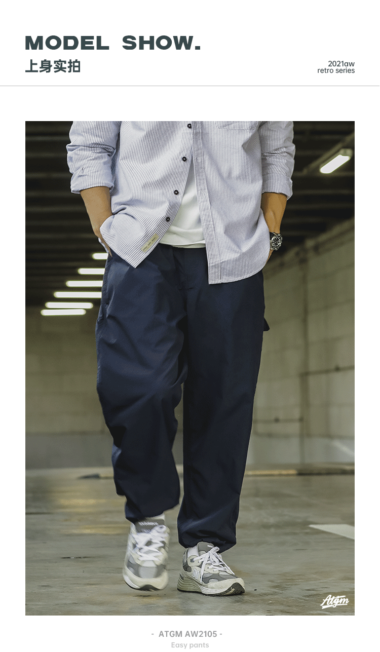 ATGM 日系休閒Cityboy風格純色錐形寬鬆微彈中腰藏青色工裝長褲男