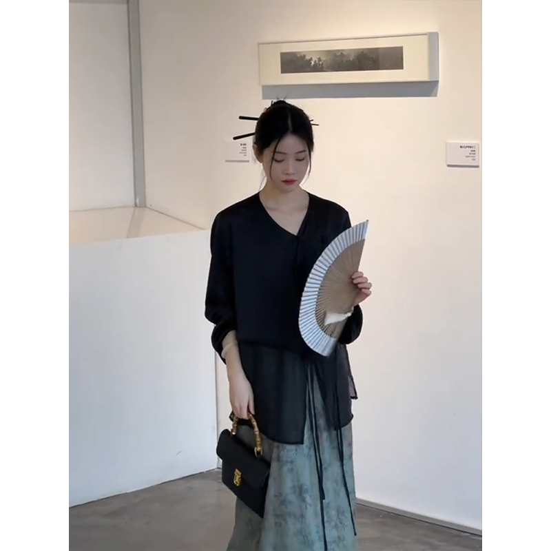 新中式女裝輕國風上衣套裝清冷感禪意改良版漢服古風洋裝子秋季