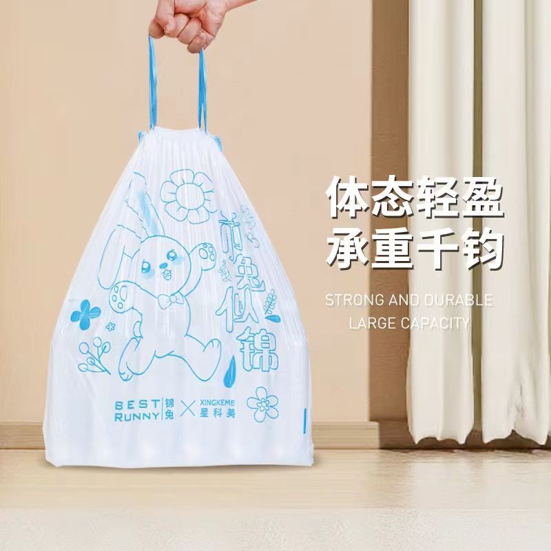 钱兔似锦一次性垃圾袋抽绳式家用厨房加厚办公室卫生间塑料袋批发