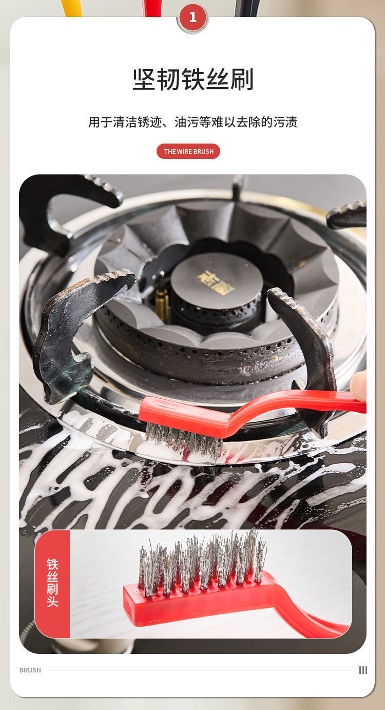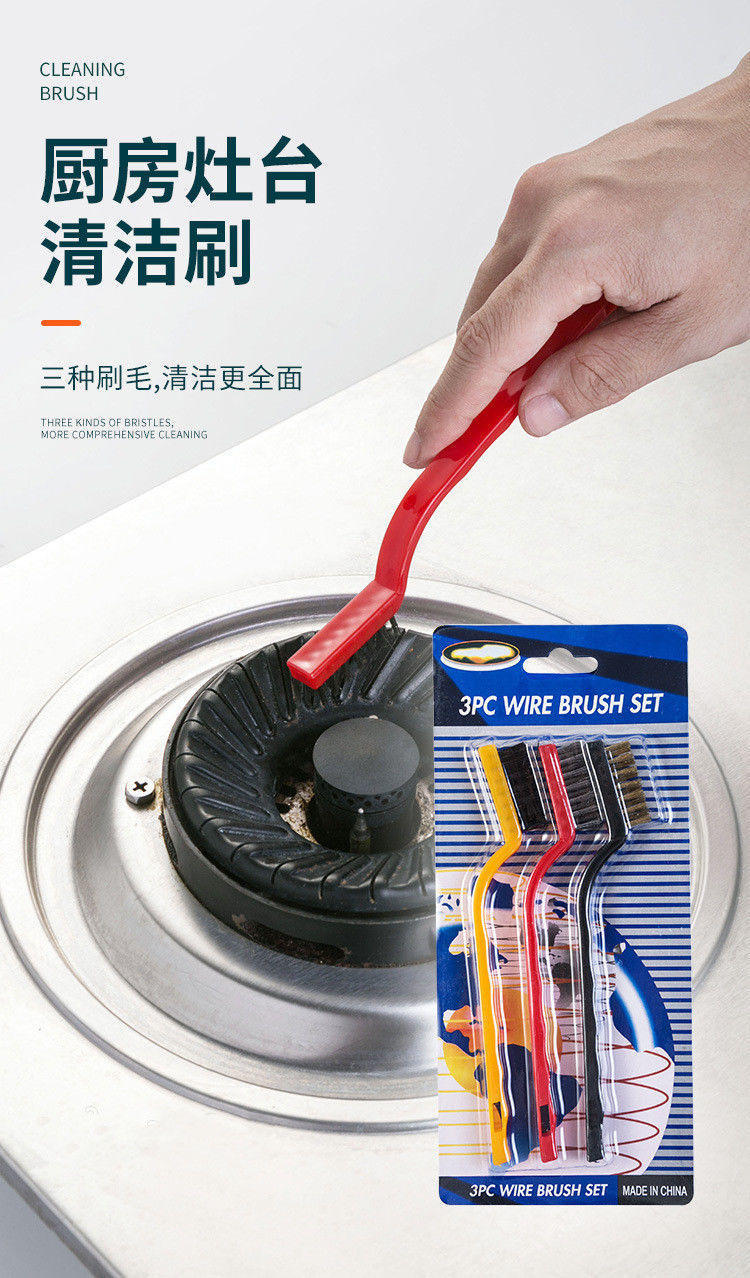 煤气灶清洁刷灶台油烟机清理刷家用厨房死角去污清洁套装钢丝刷子