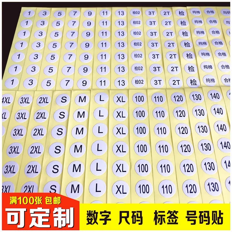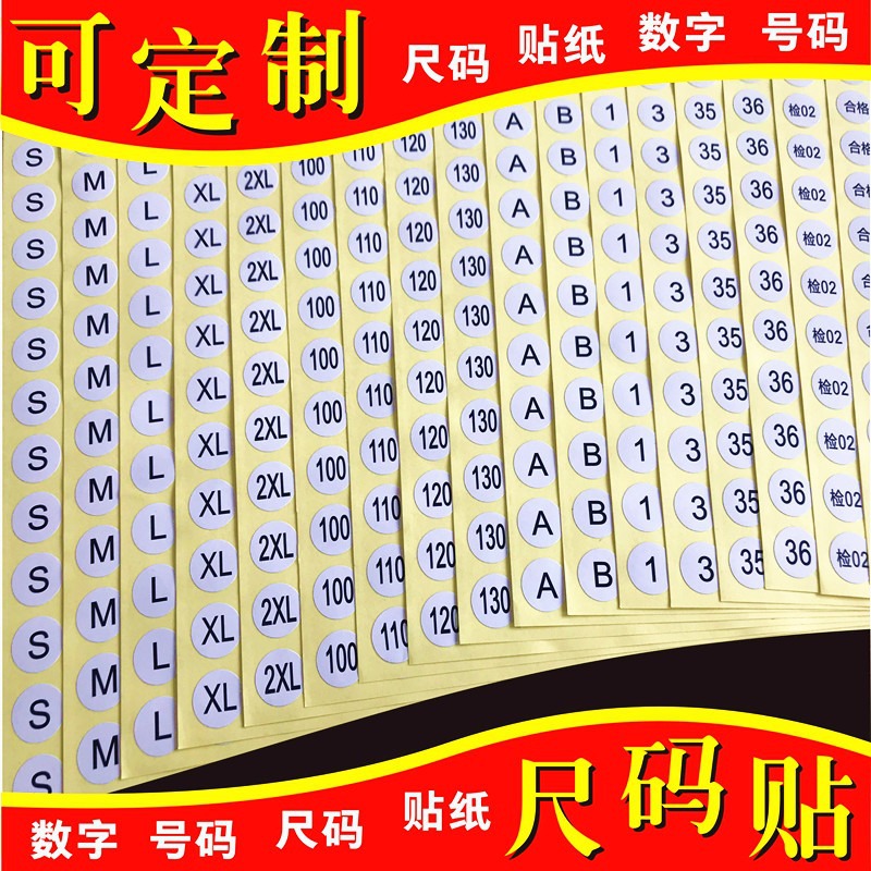 衣服尺码标签贴纸服装码数数字号码不干胶牛仔裤出厂大小码数标贴