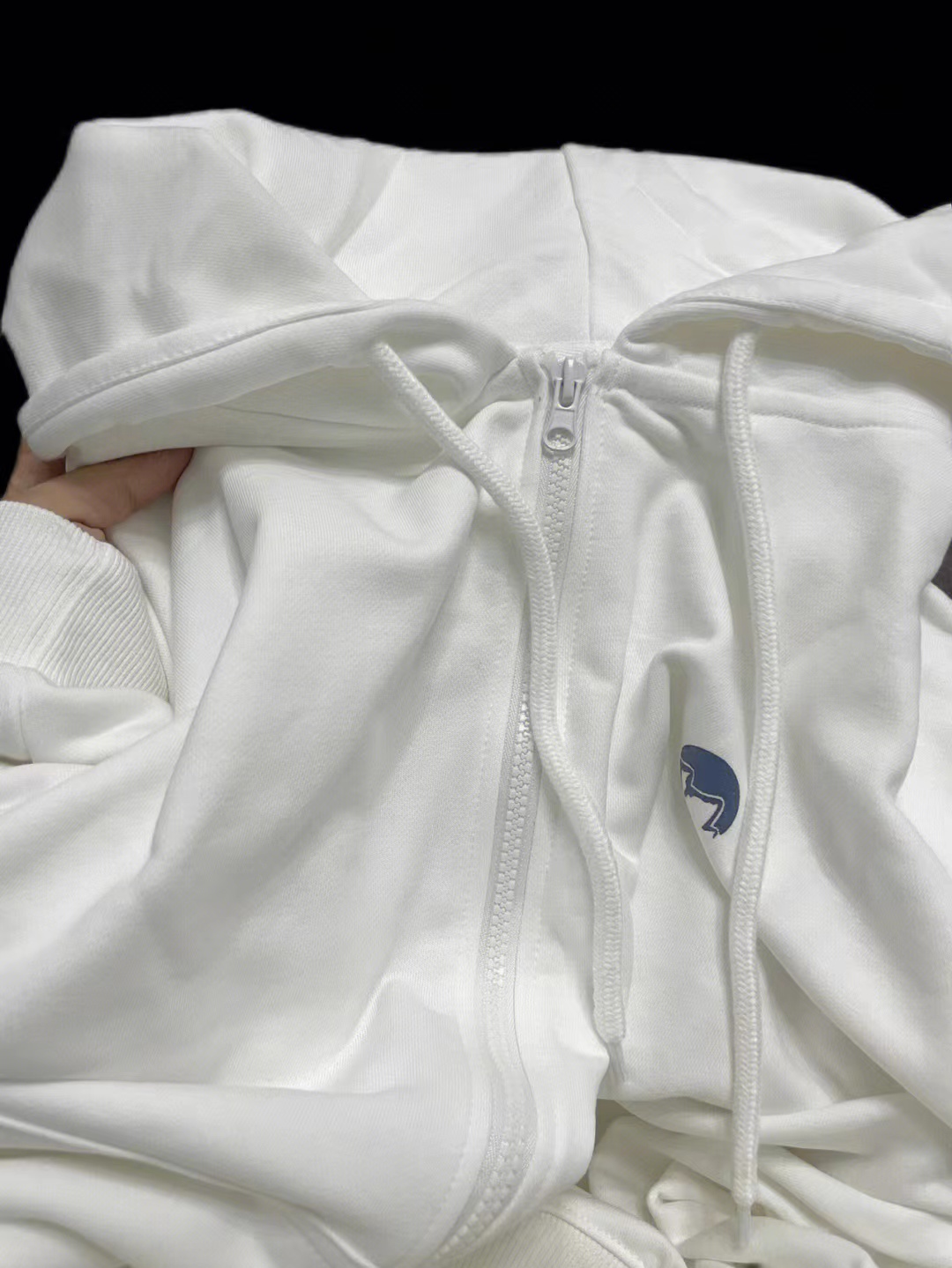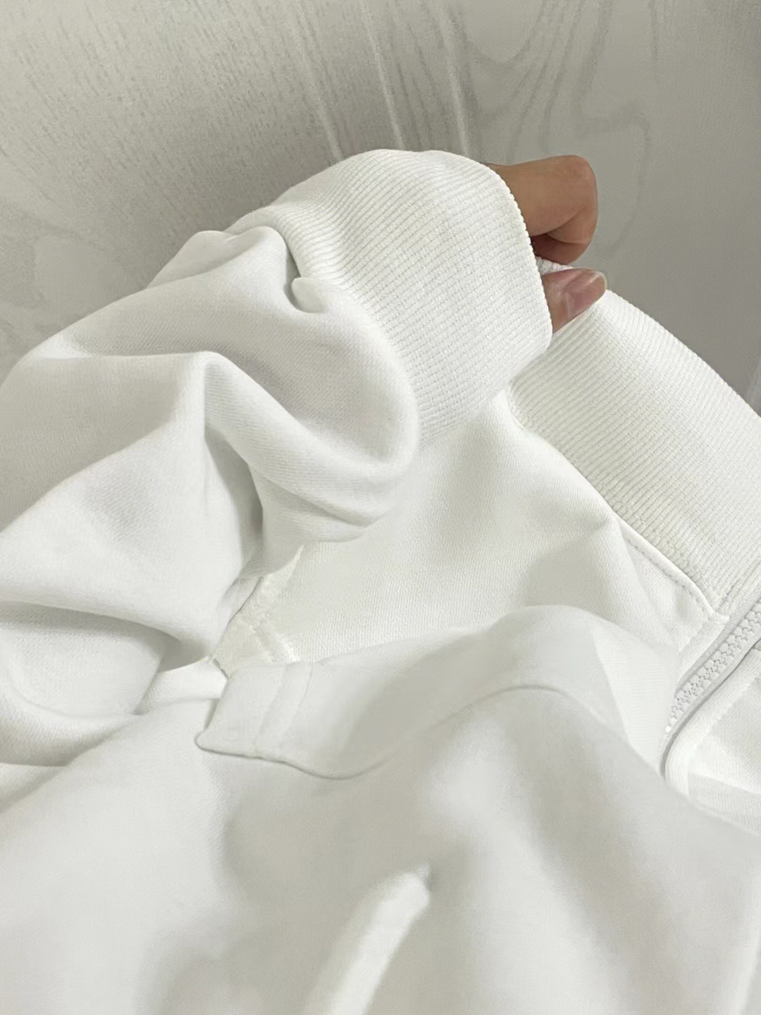 美式白色連帽運動衫外套女春秋寬鬆慵懶風oversize休閒開衫運動帽衫