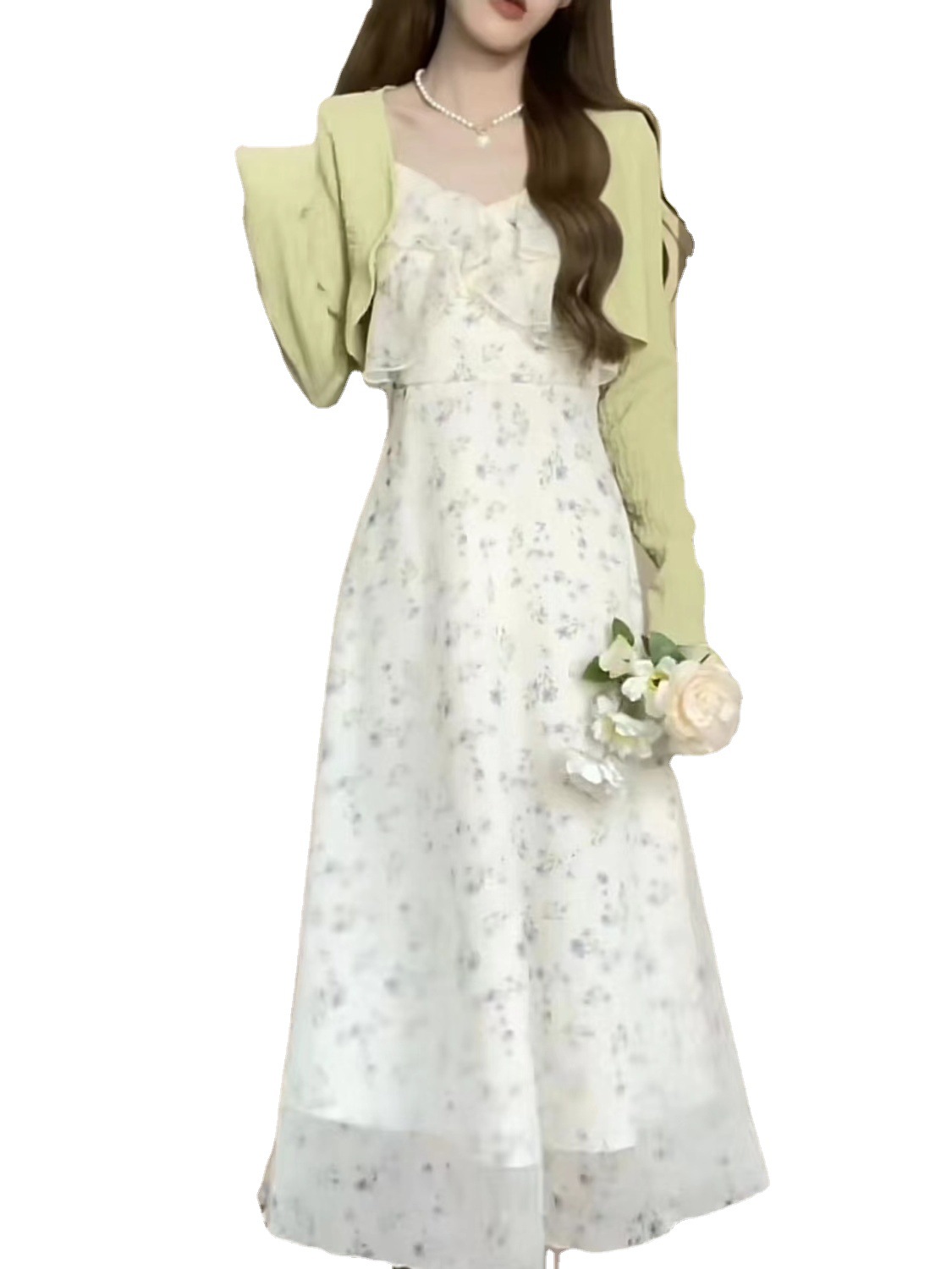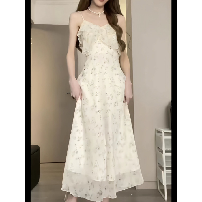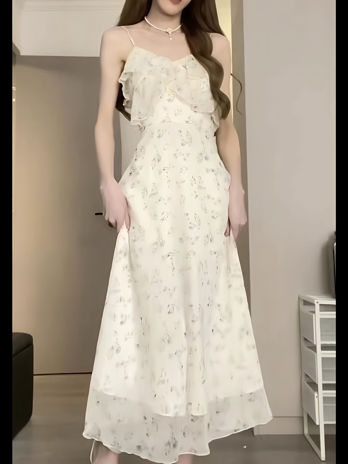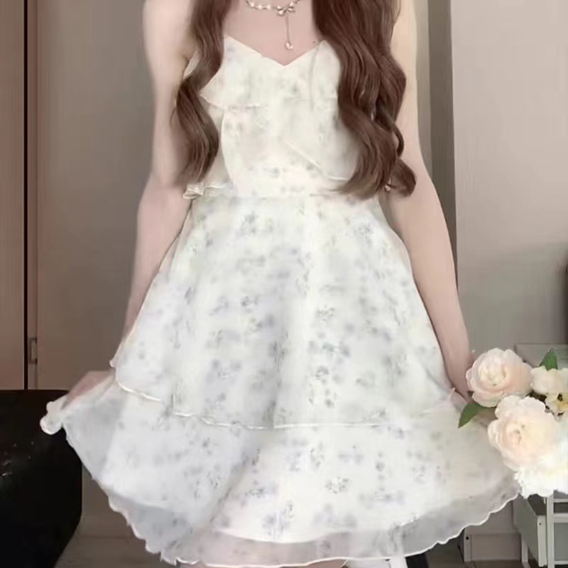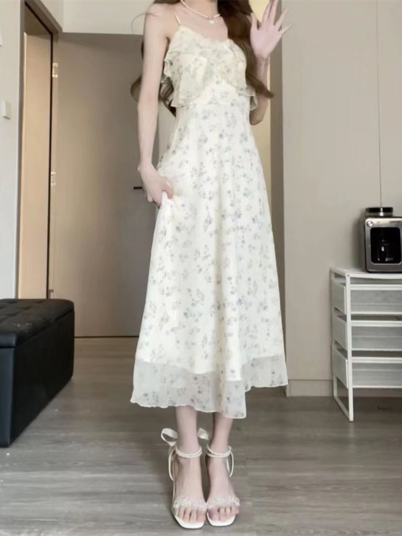 温柔碎花吊带裙法式复古收腰修身新款V领连衣裙今年流行甜美女装
