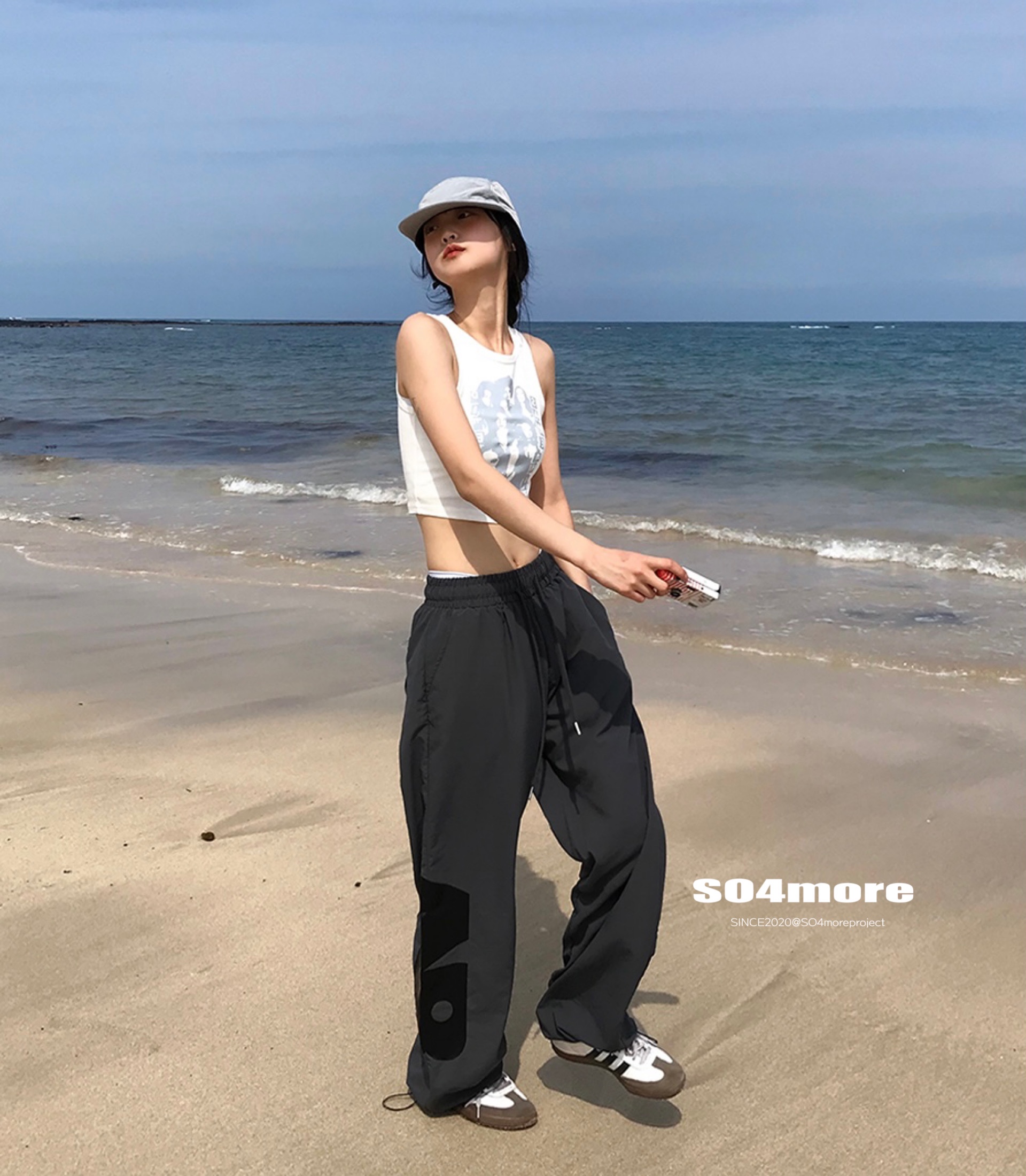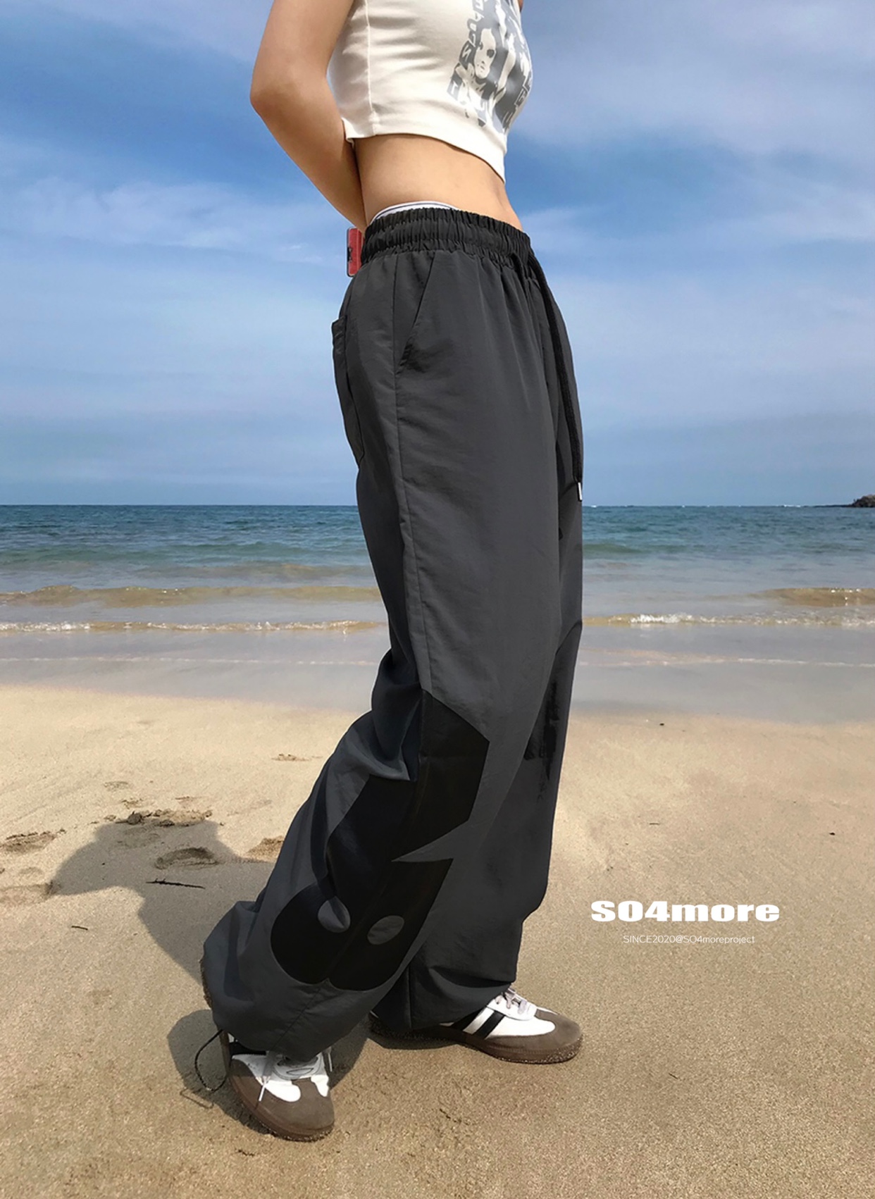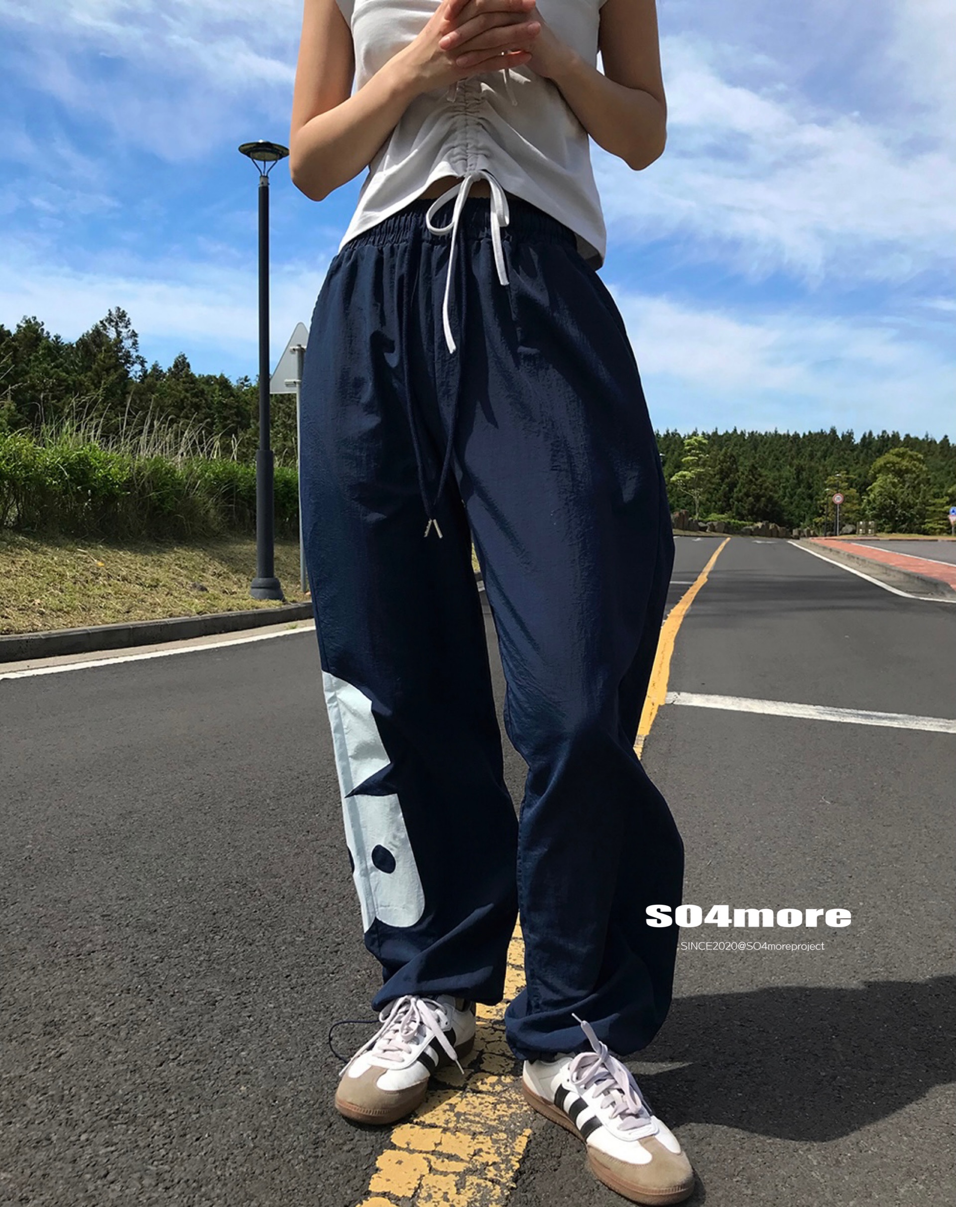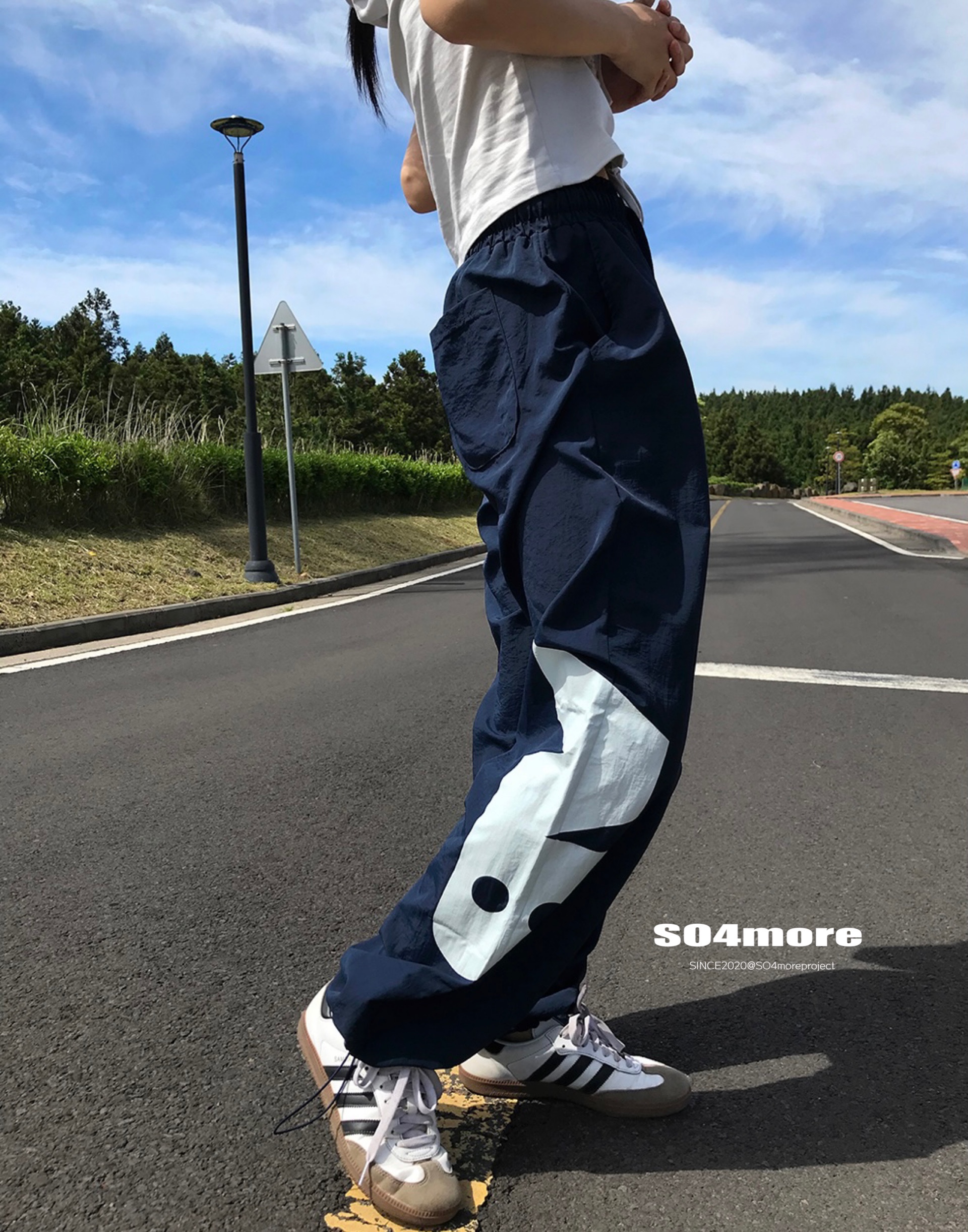 【SO4more】韓國代購 AB字母 復古球衣風 尼龍春夏百搭寬鬆休閒褲