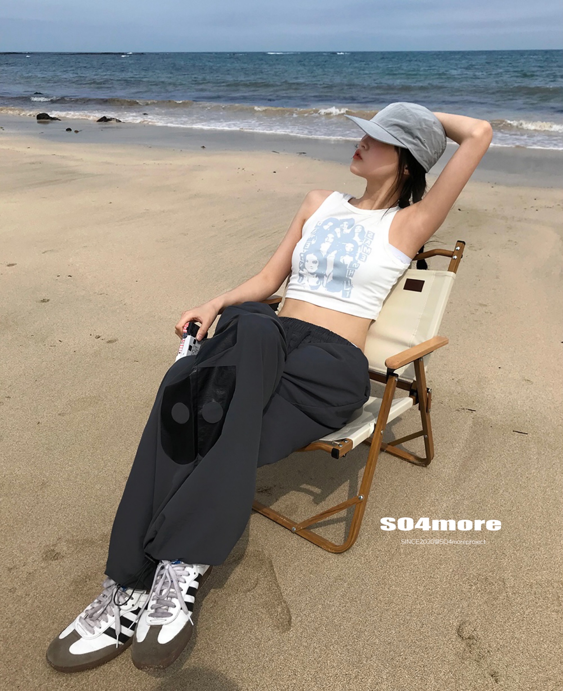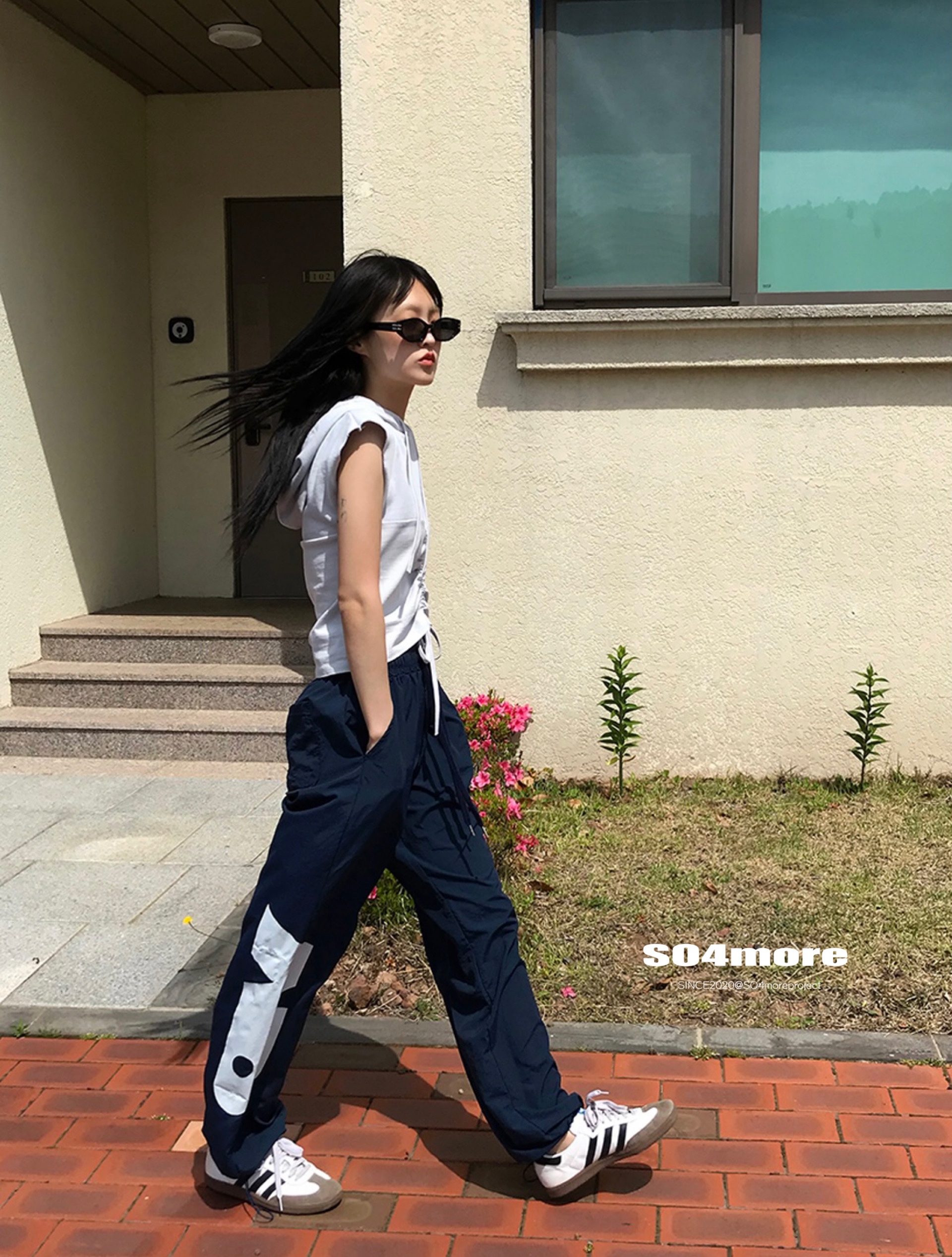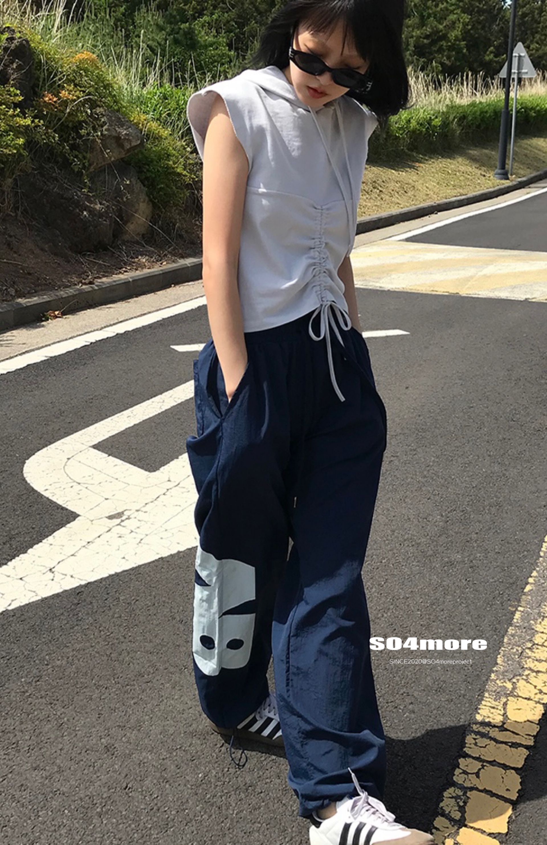 【SO4more】韓國代購 AB字母 復古球衣風 尼龍春夏百搭寬鬆休閒褲