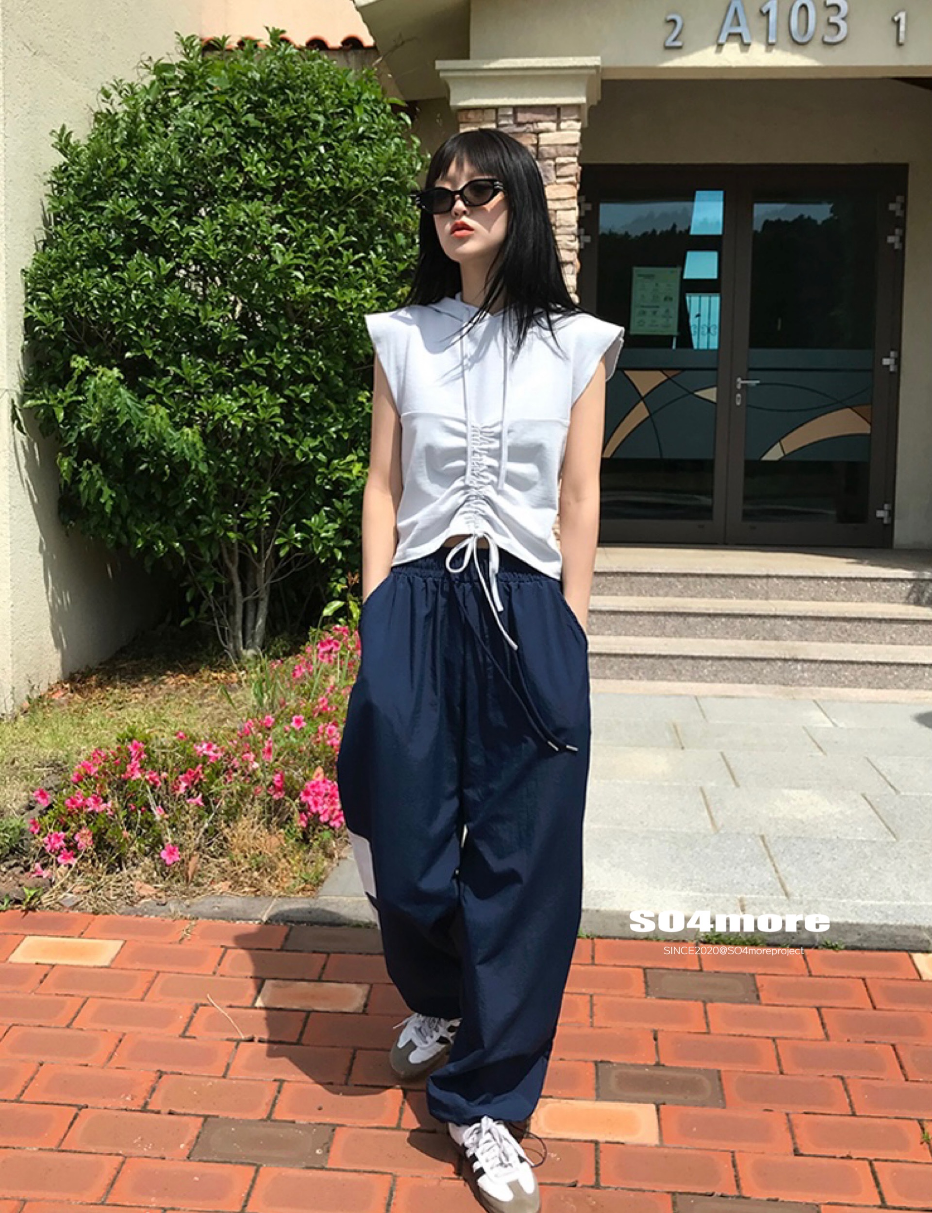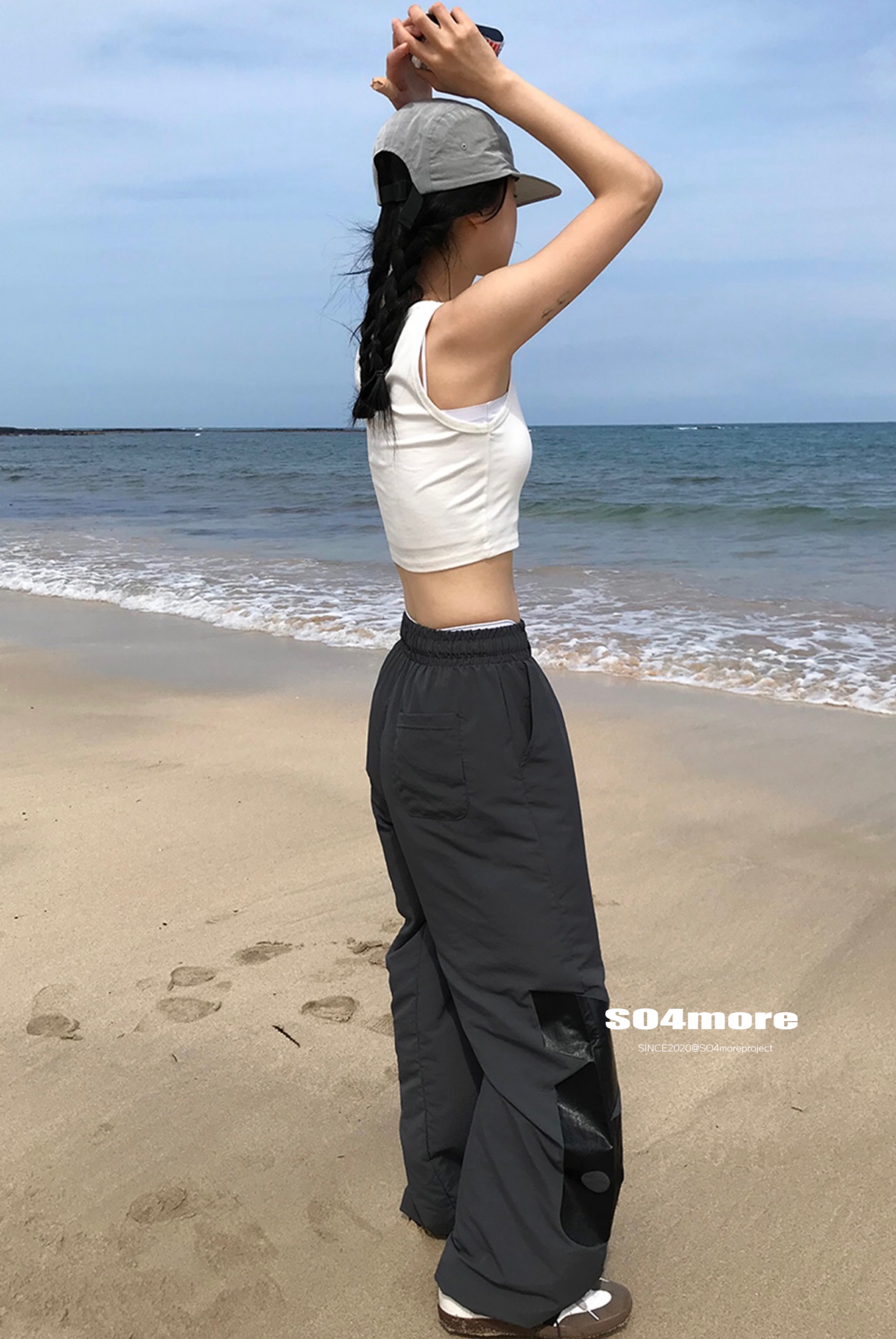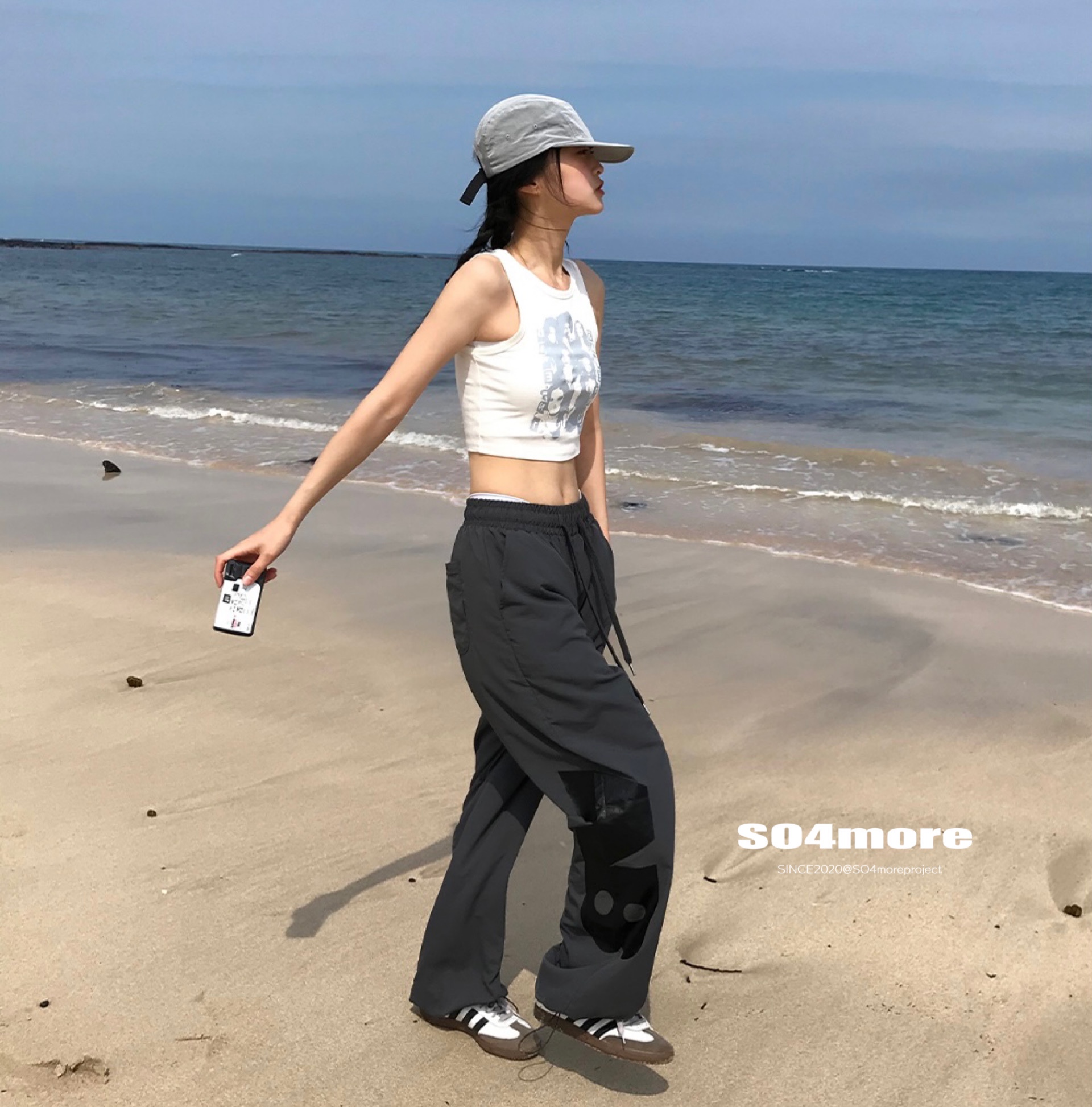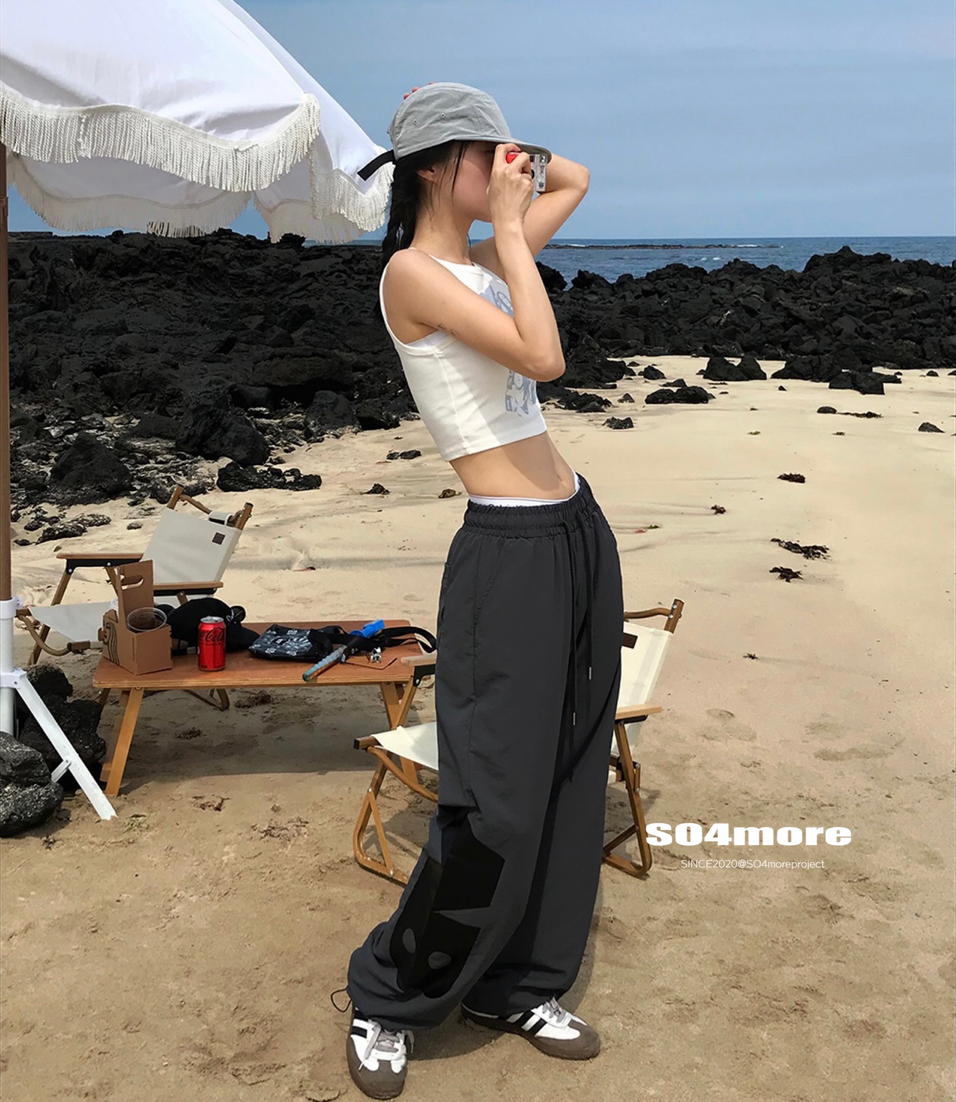 【SO4more】韓國代購 AB字母 復古球衣風 尼龍春夏百搭寬鬆休閒褲