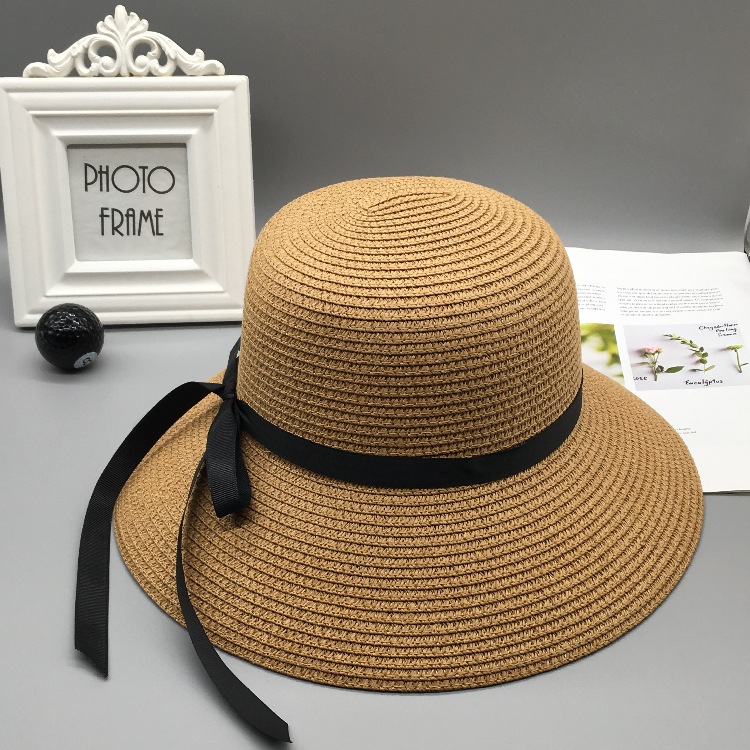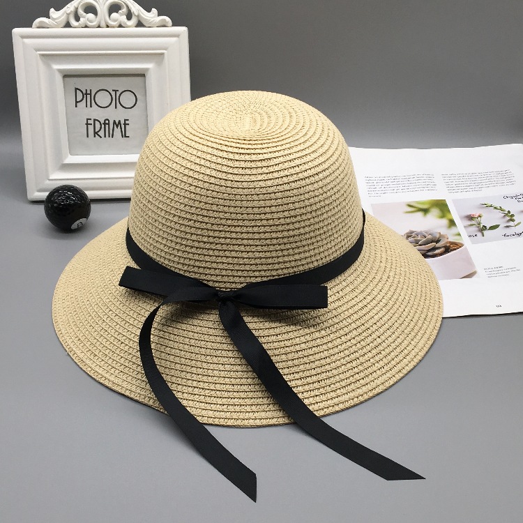 可折叠草帽子女夏天韩版小清新网红百搭沙滩遮阳帽太阳渔夫帽