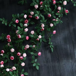 仿真玫瑰花藤假花藤条客厅空调管道缠绕装饰遮挡塑料藤蔓植物摆设