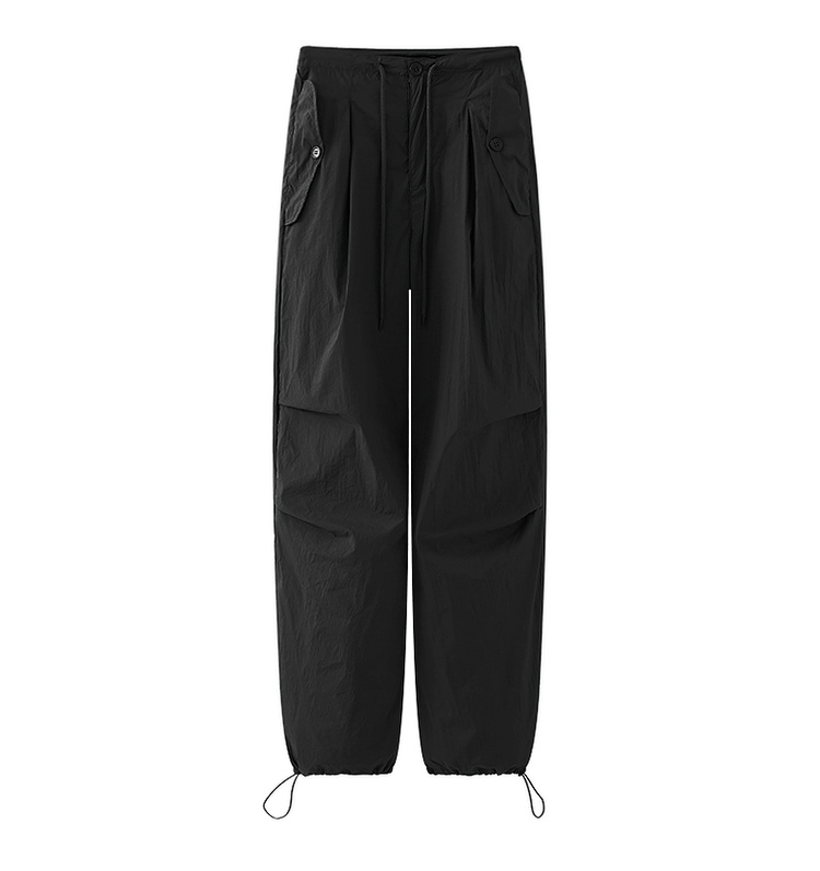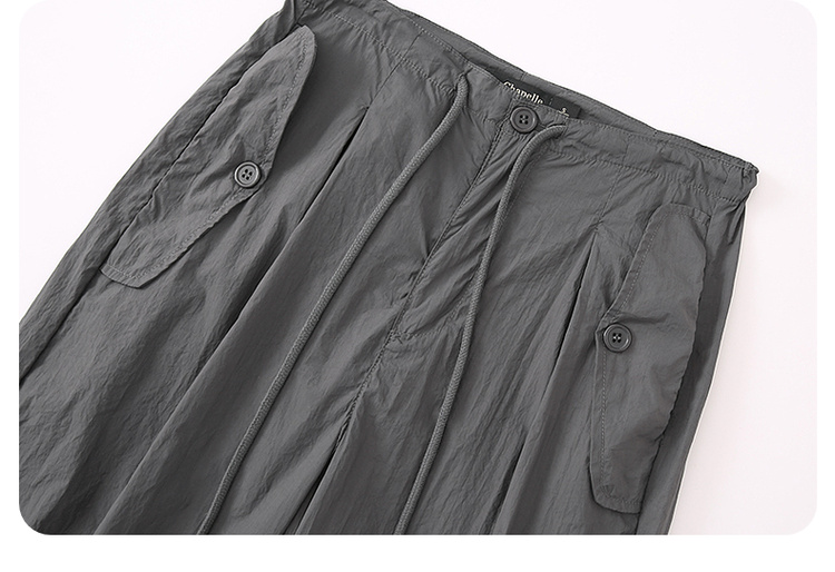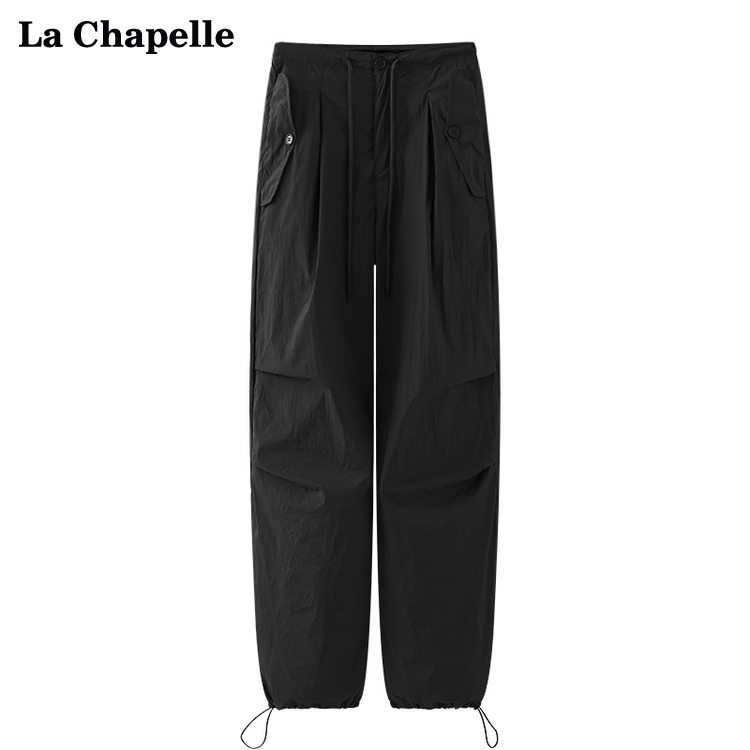 拉夏貝爾/LaChapelle美式工裝褲女夏抽繩寬鬆顯瘦防曬運動休閒褲